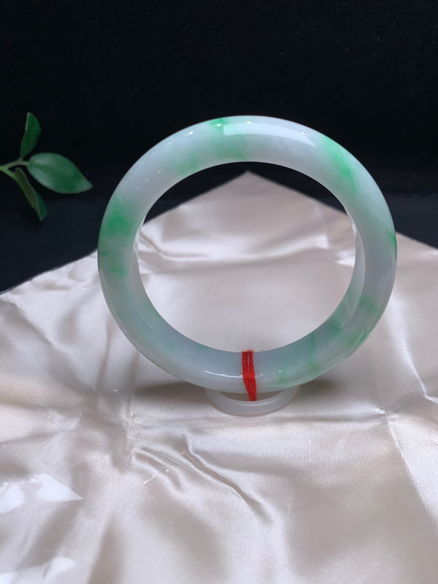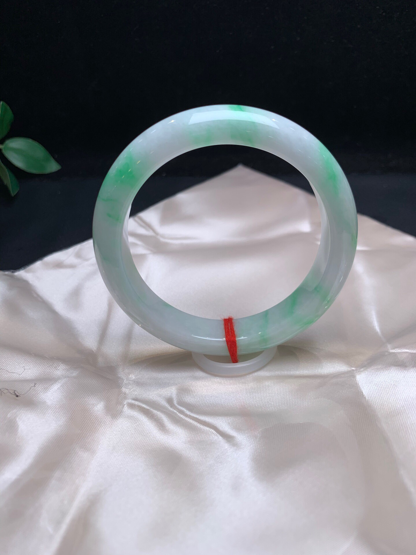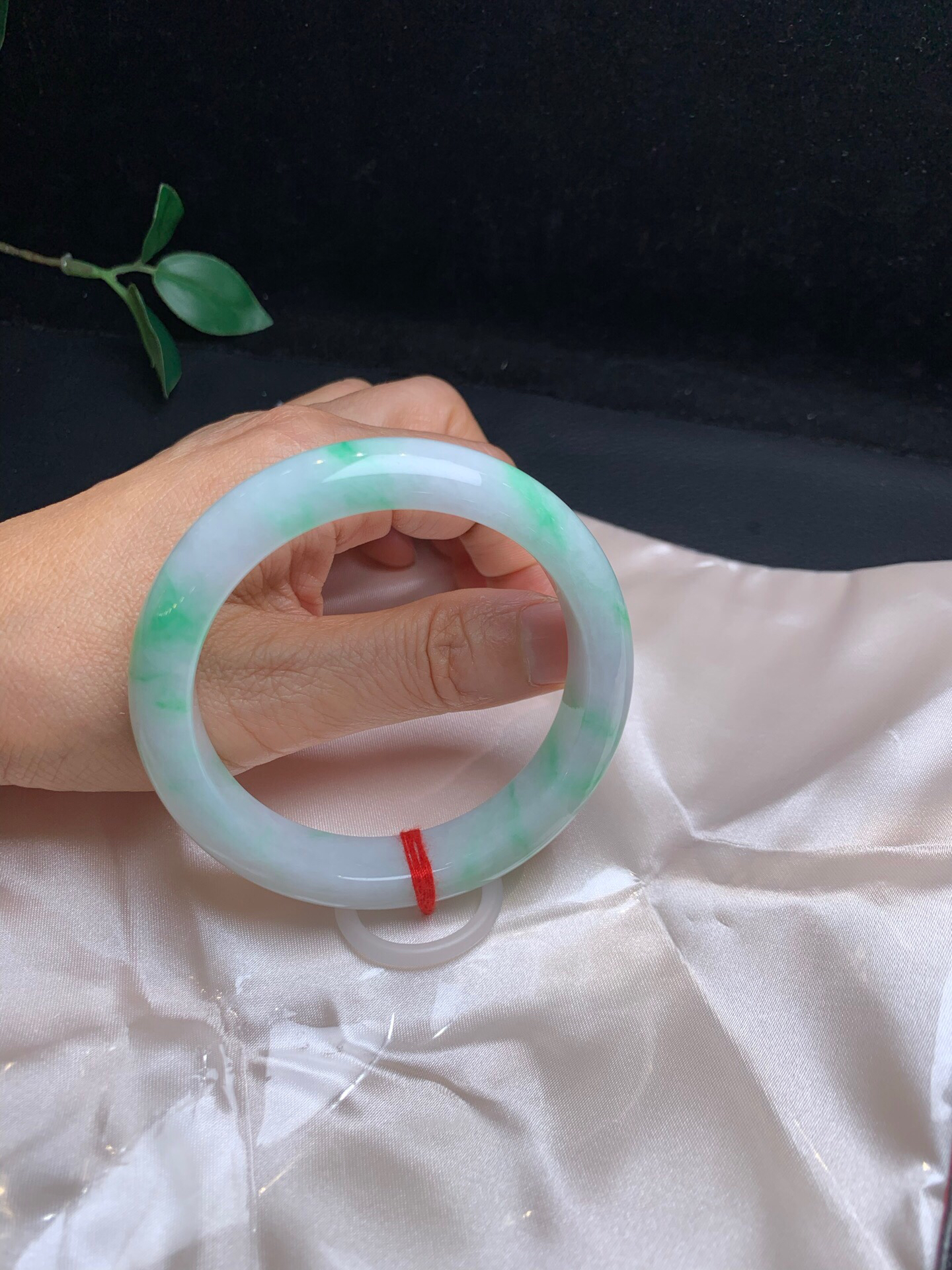 620437,59飘阳绿手镯,13.8-9mm,满圈飘绿, 底妆干净,干净完美, 超值价💰28600 #优石客珠宝#香玉荟萃
