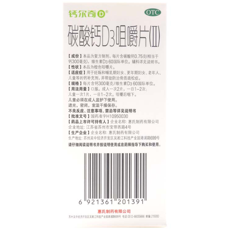 商品名称:钙尔奇D 碳酸钙D3咀嚼片(II)