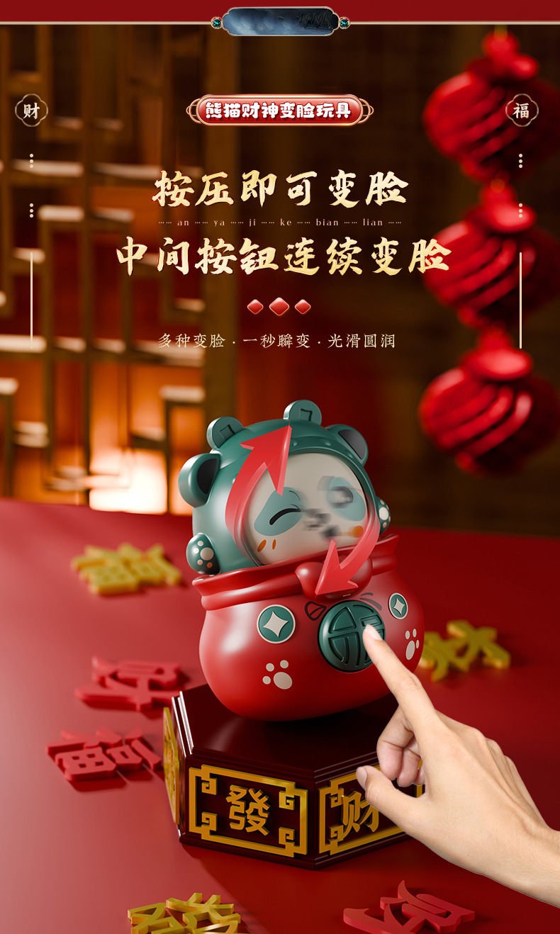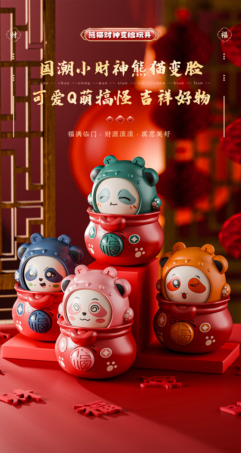 【国潮小财神❗川剧熊猫变脸娃娃】原创国风造型多种变脸,一秒瞬变,光滑圆润,可当挂链,创意京剧脸谱玩偶抖音摆地摊玩具礼品小公仔QQ
