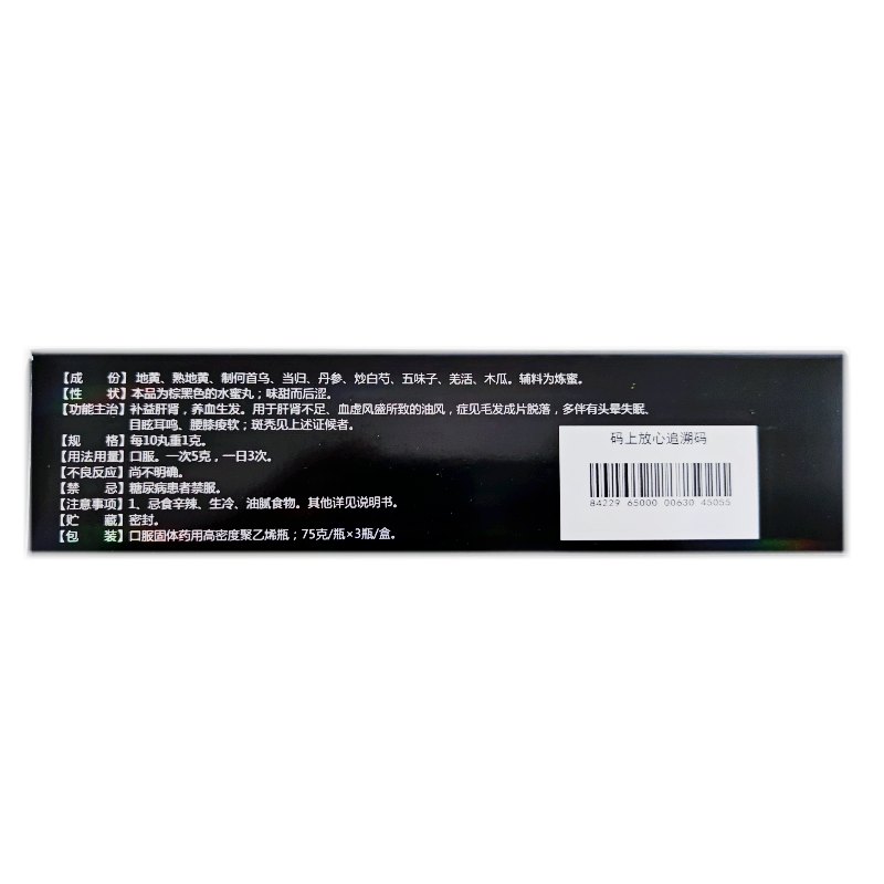 地黄、熟地黄、制何首鸟、当归、丹参、炒白芍、五味子、羌活、木瓜。辅料为炼蜜。