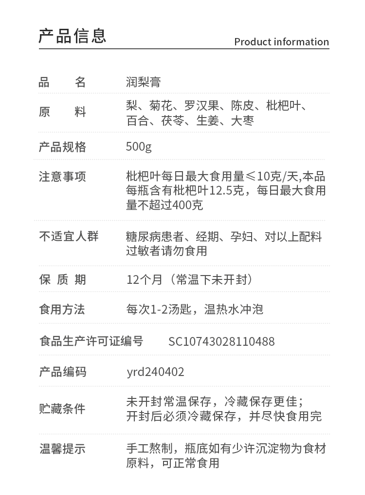 【昀蓉时光·润梨膏】(500g/瓶)不加一滴水·不加一粒糖·入口鲜·润·清(包装升级·新老包装随机发货)