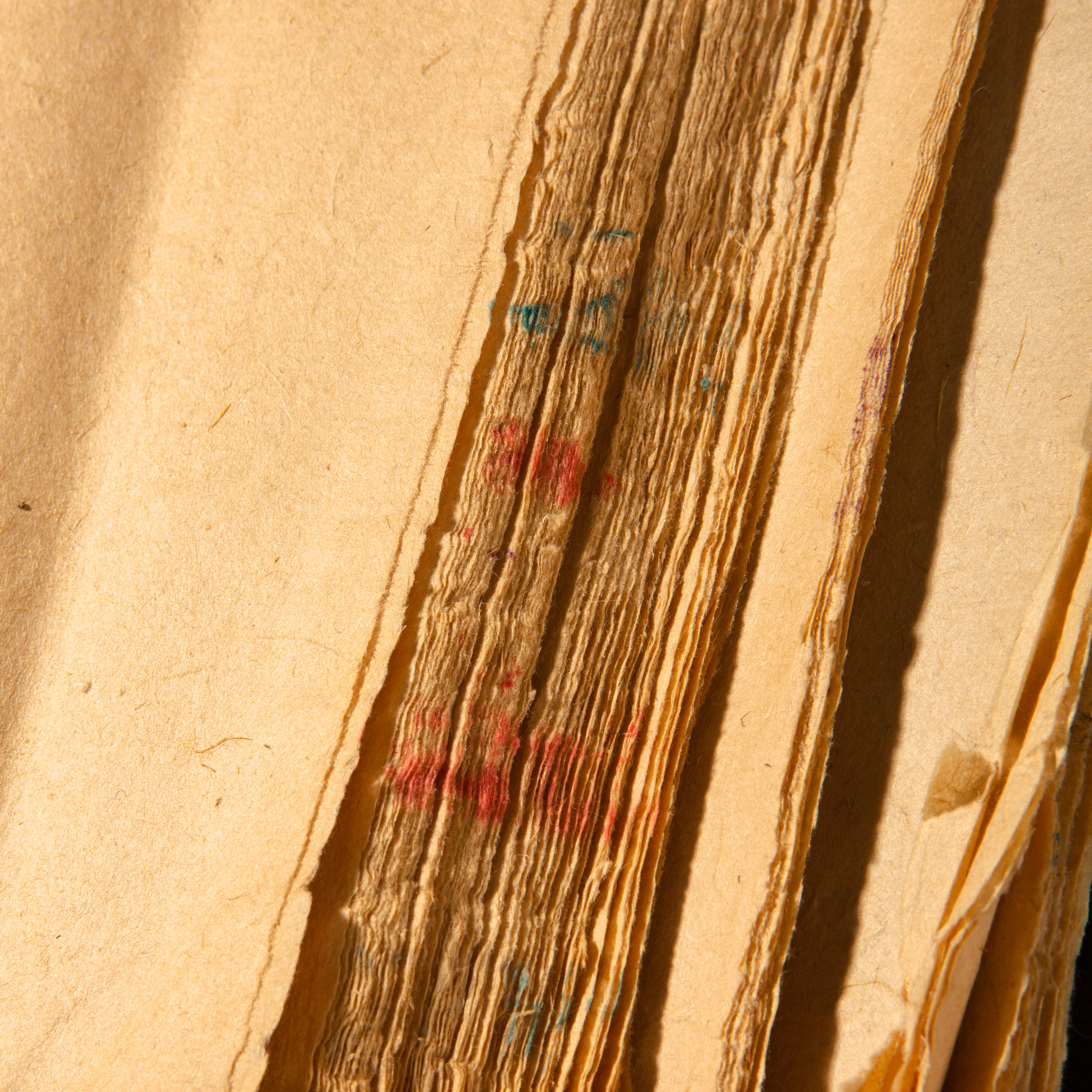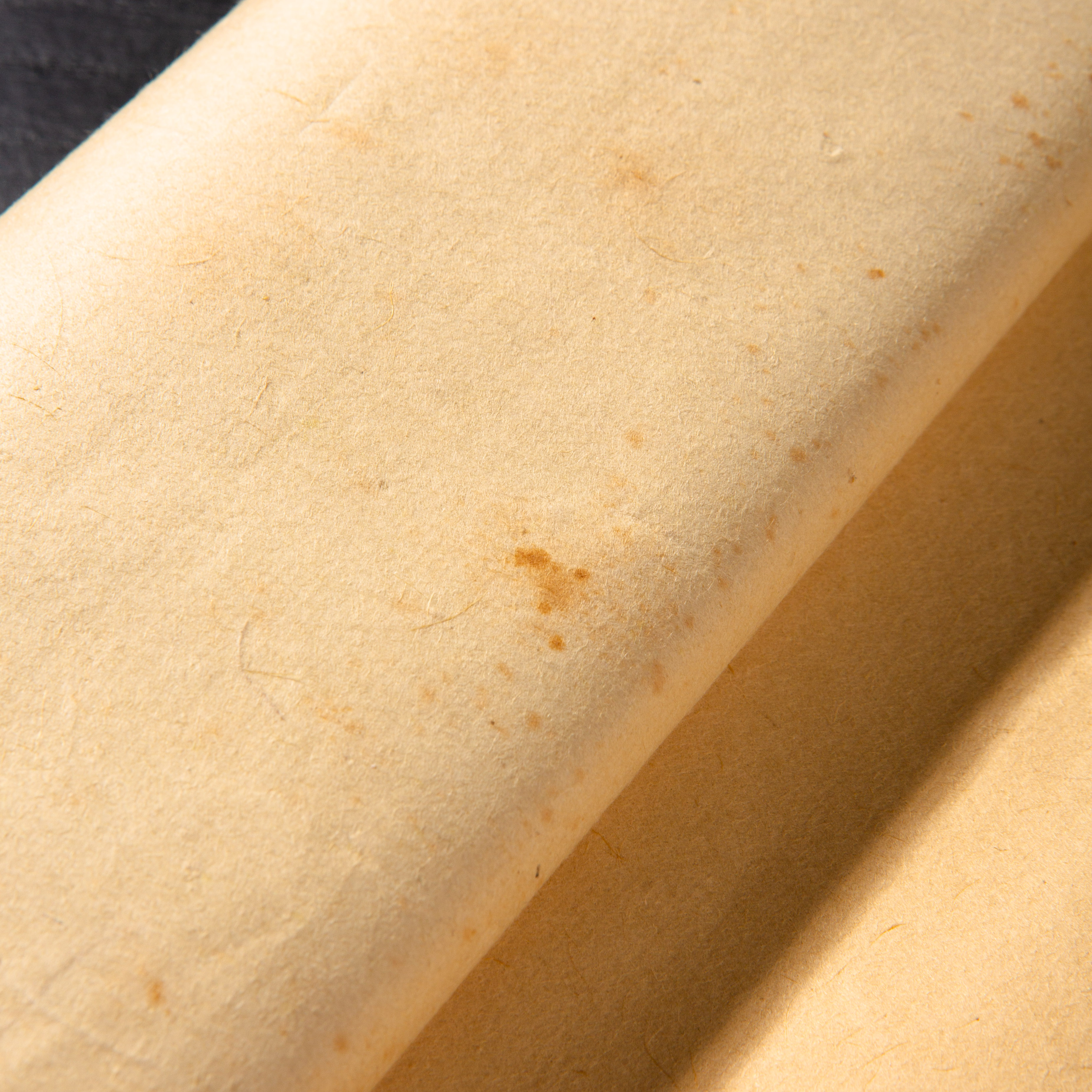 50-60年代合作社生产老竹纸,两卷共160张,此批纸均为古法手工所制,纸质柔软,颜色古朴,帘纹清晰,老纸火气已完全尽失,宜书宜画。
