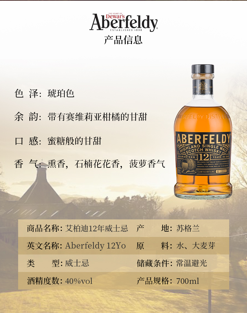 【行货】苏格兰艾伯迪12年高地单一麦芽威士忌