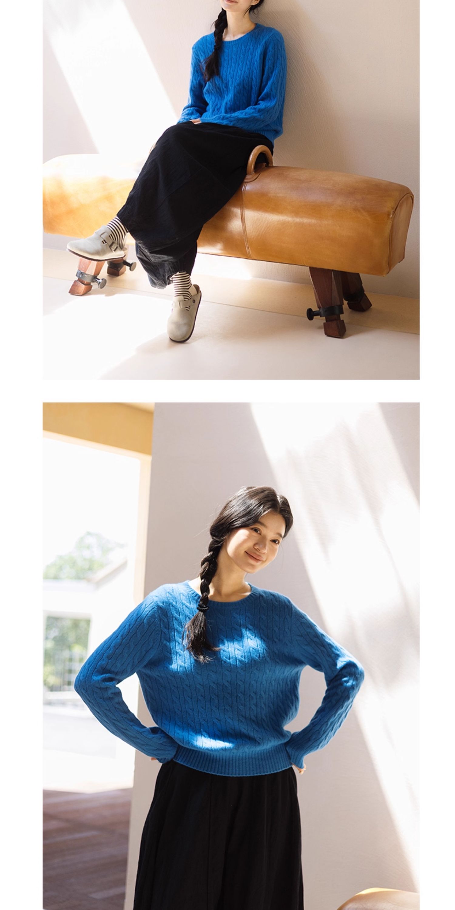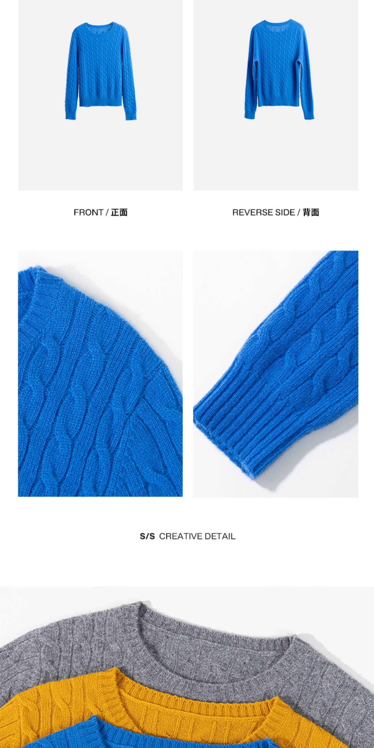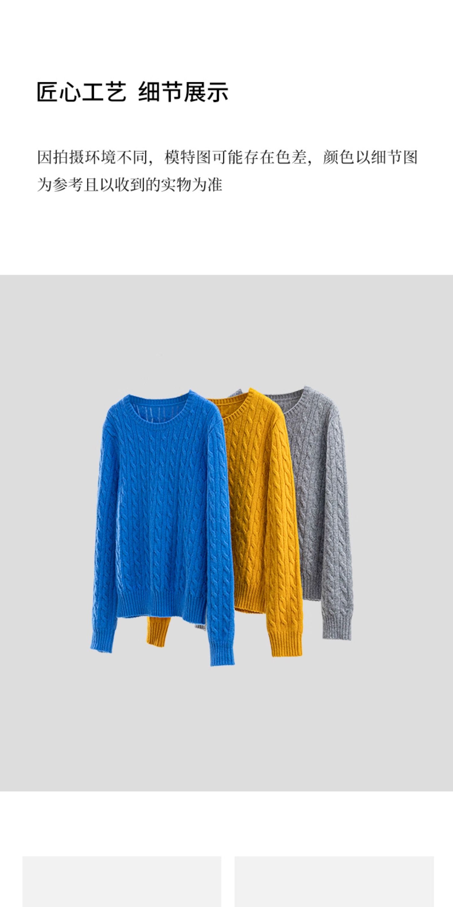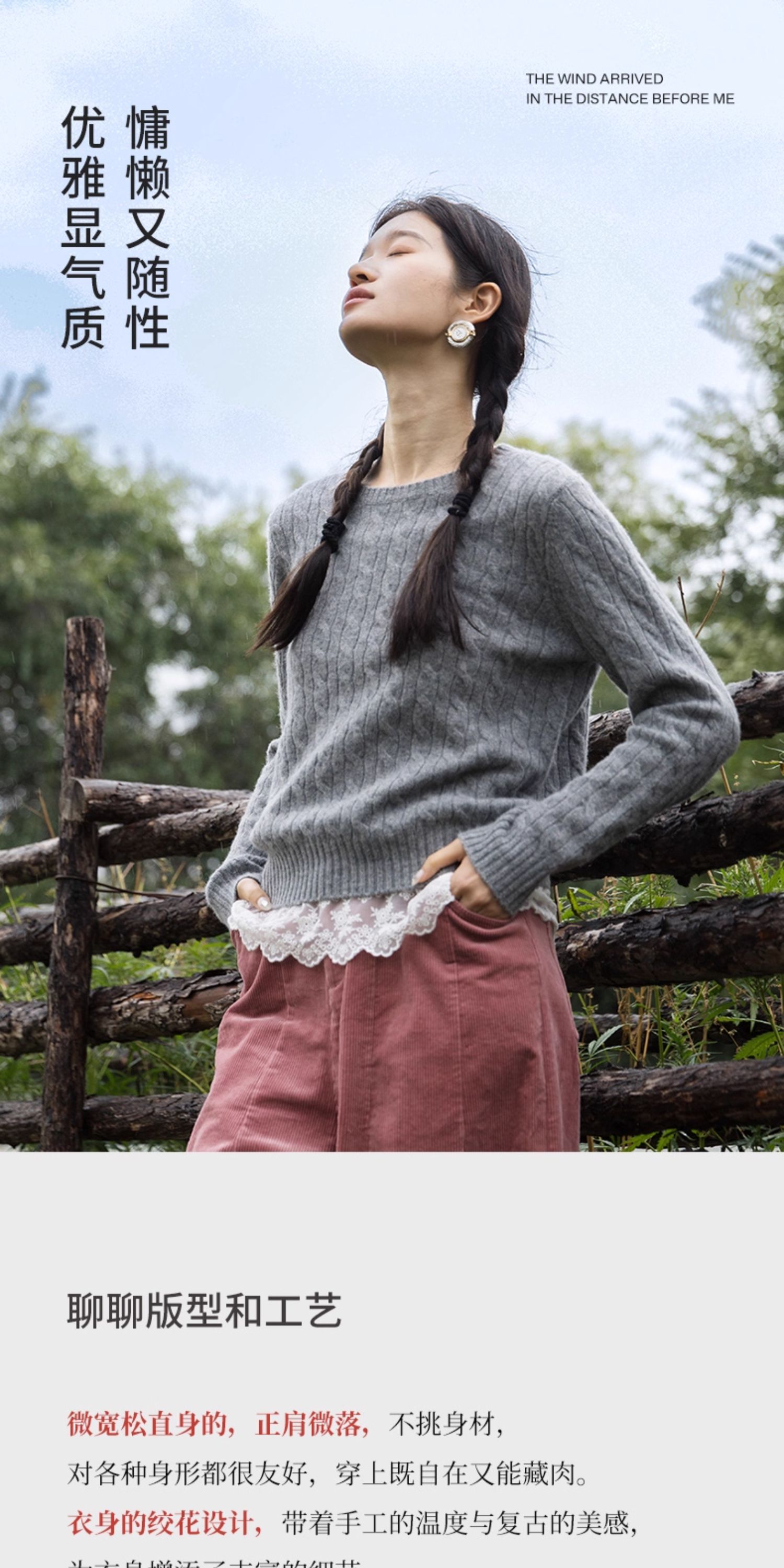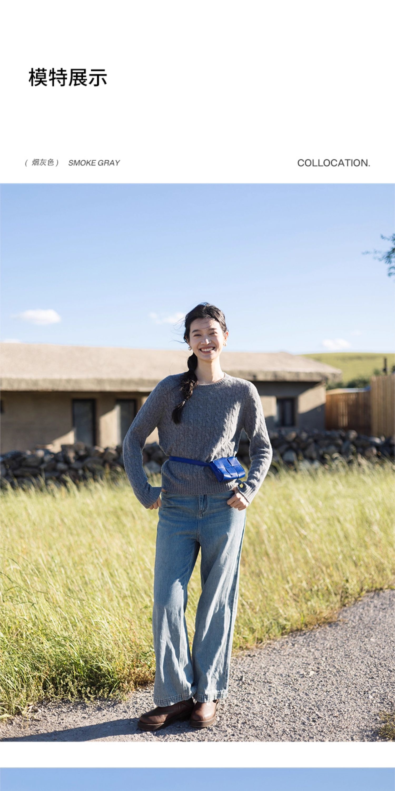 特绽放658朵/多色羊毛绞花圆领套头毛针织衫文艺百搭毛衣秋冬新款