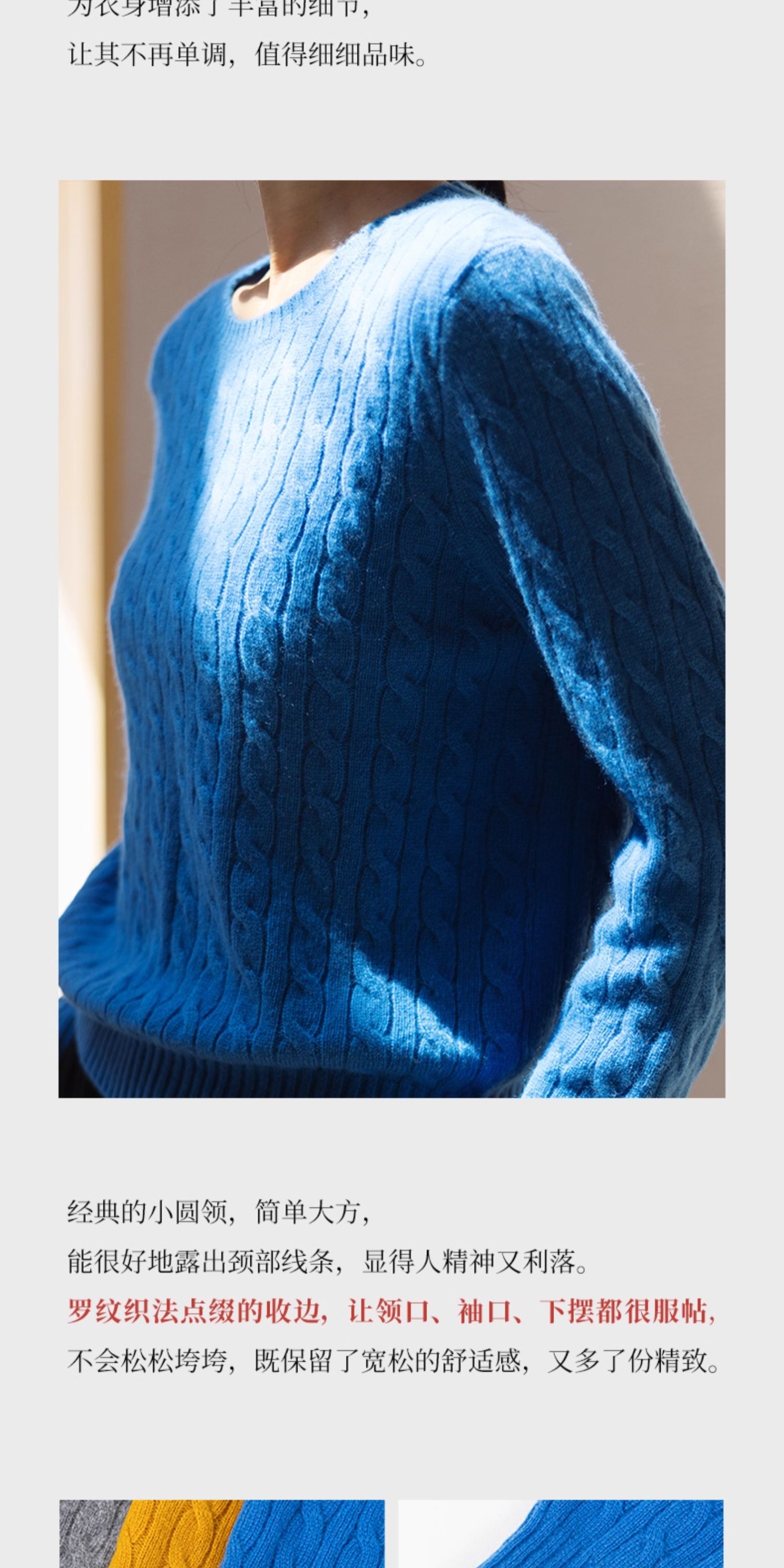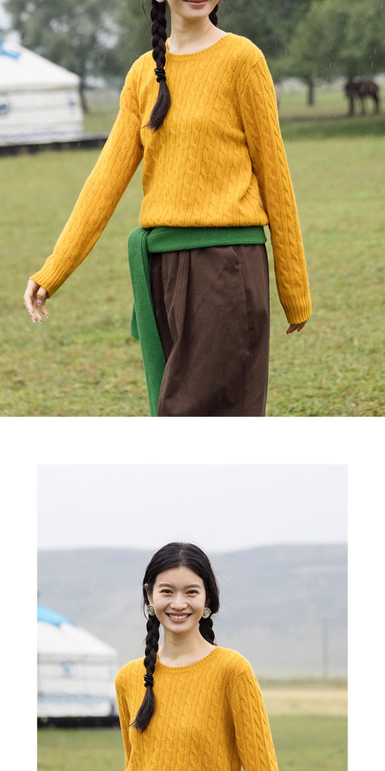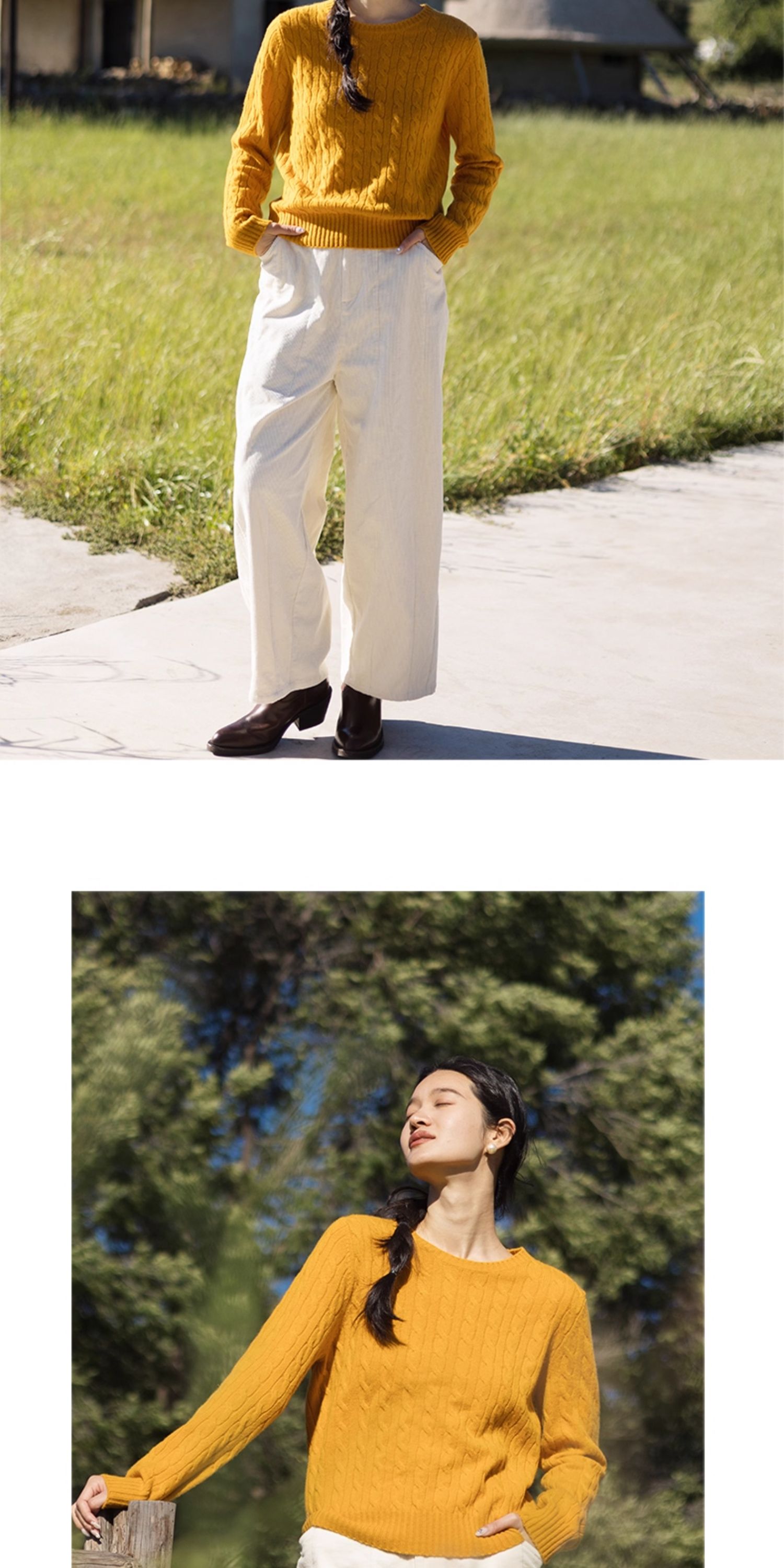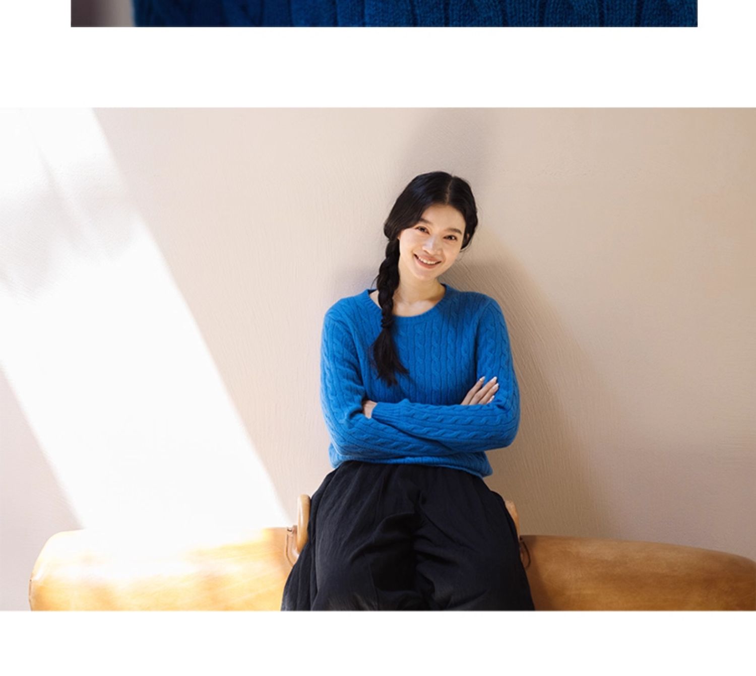 特绽放658朵/多色羊毛绞花圆领套头毛针织衫文艺百搭毛衣秋冬新款