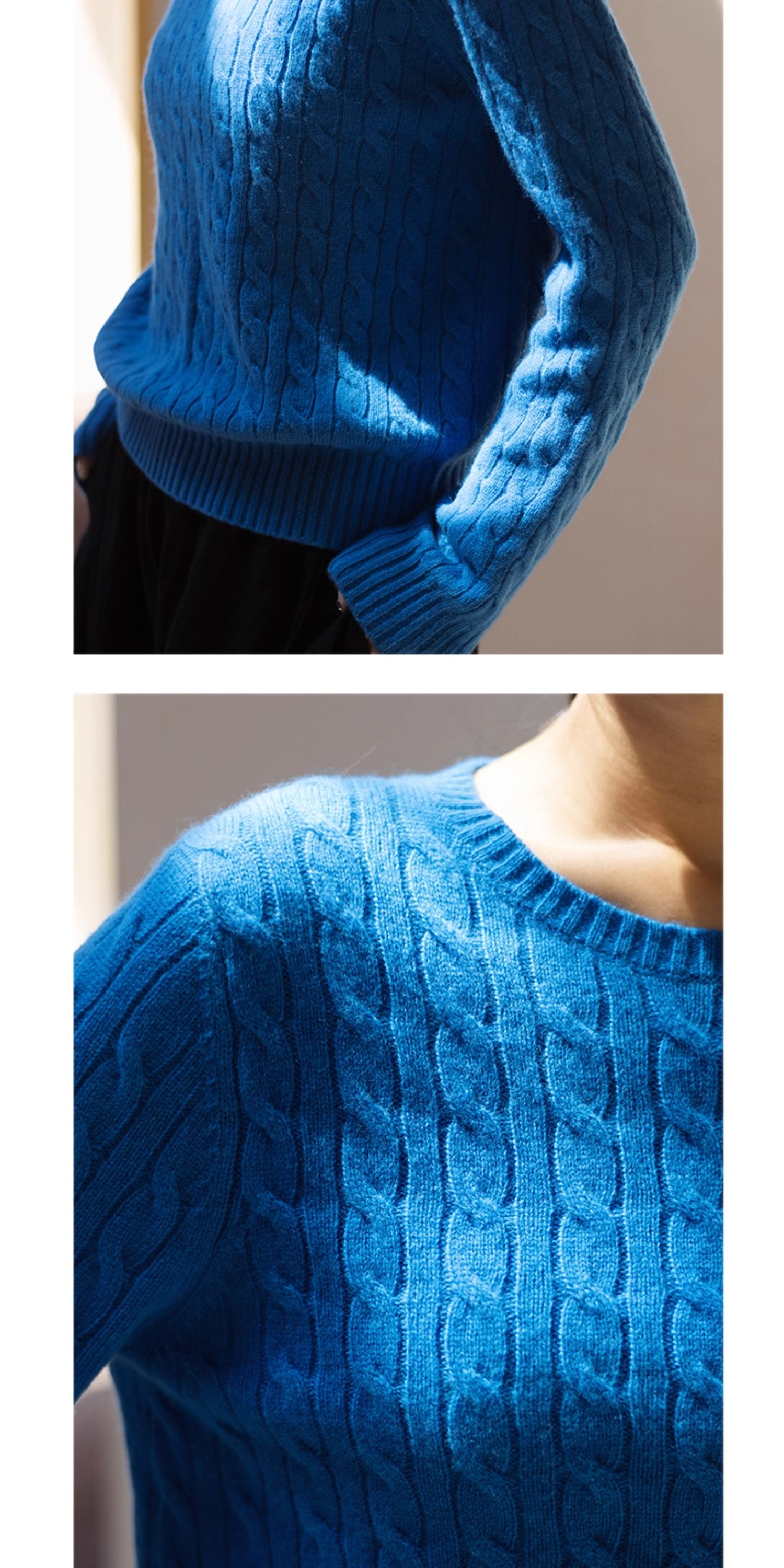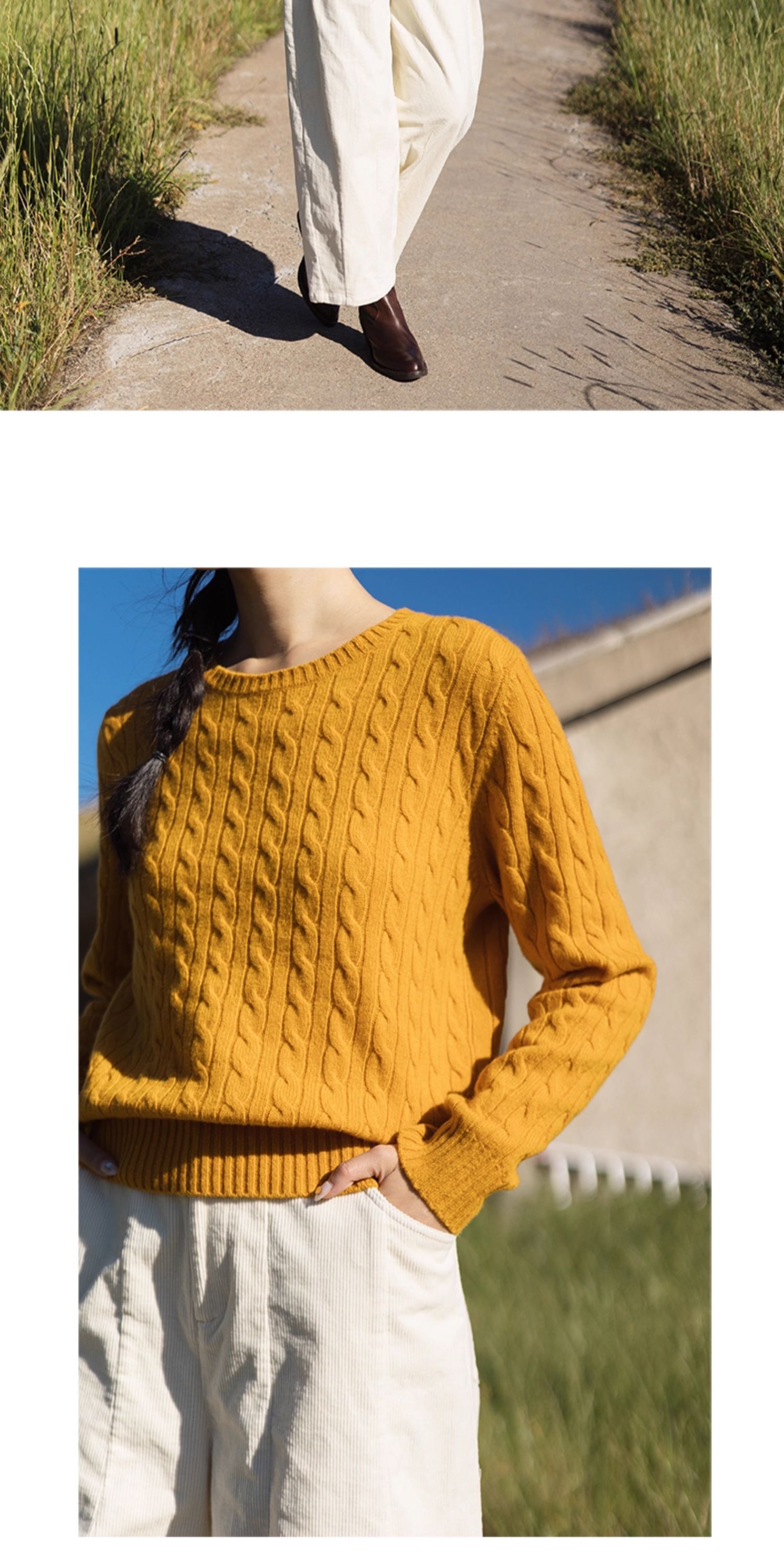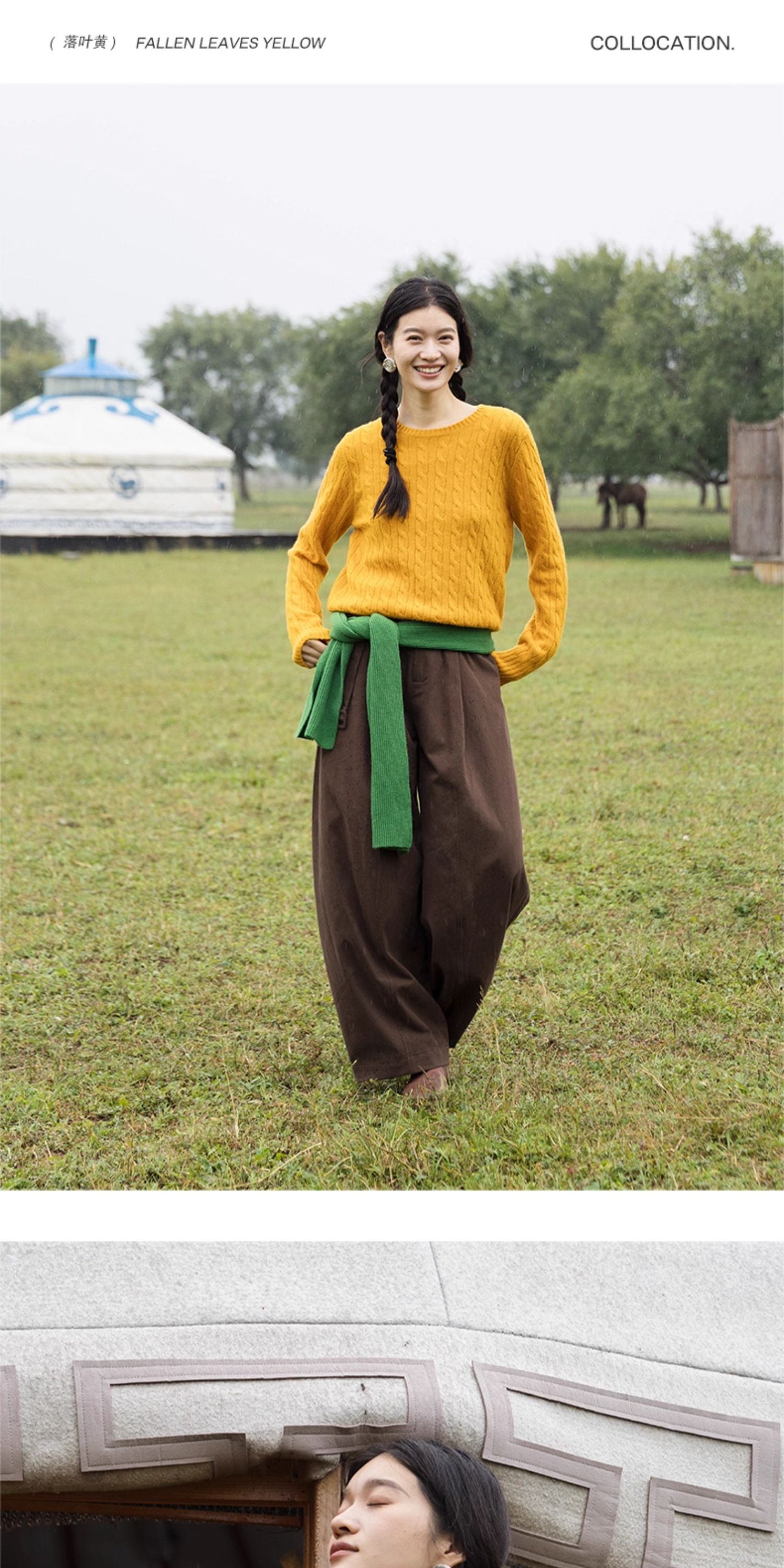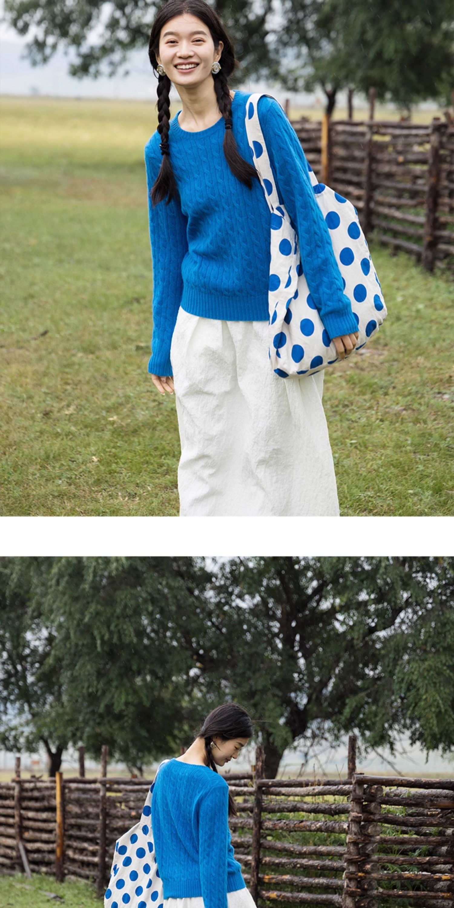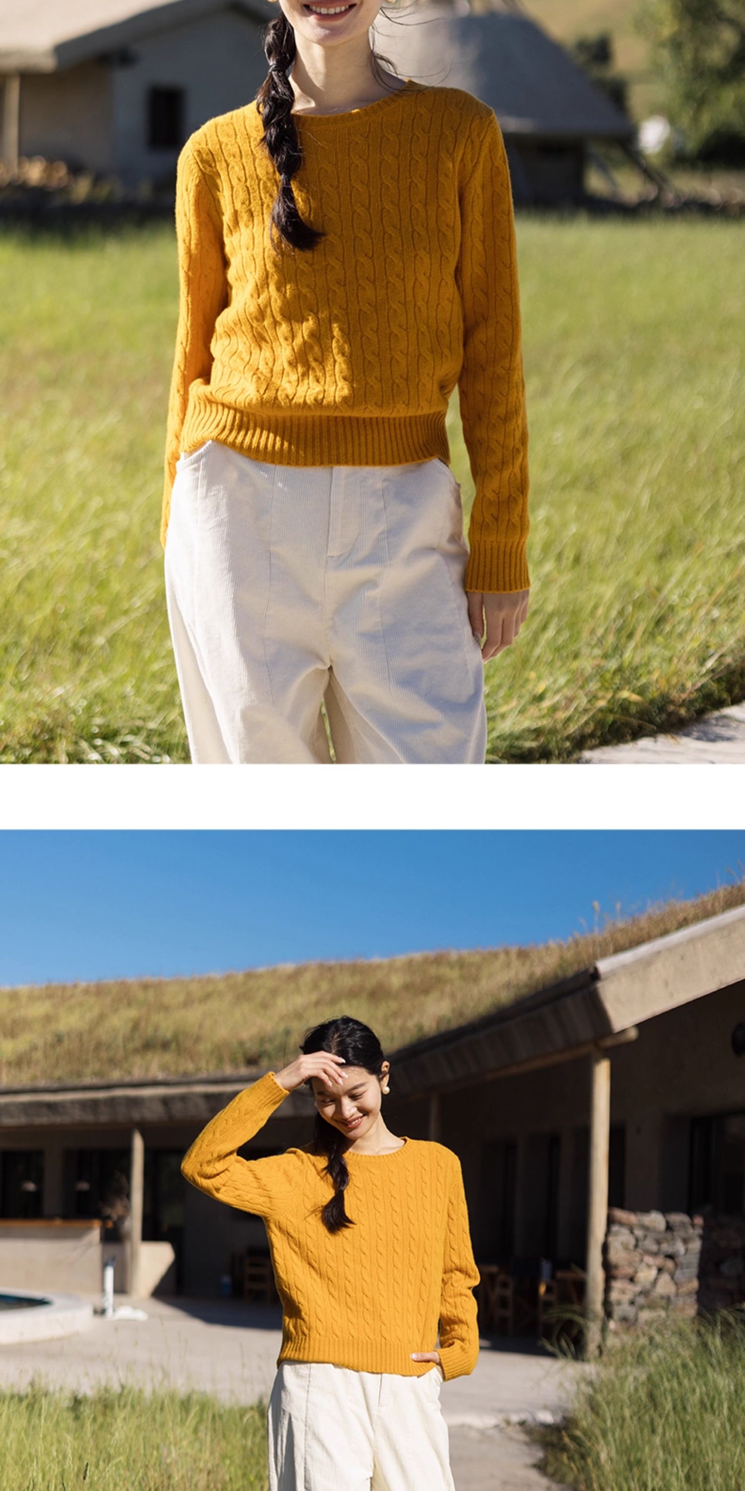 特绽放658朵/多色羊毛绞花圆领套头毛针织衫文艺百搭毛衣秋冬新款