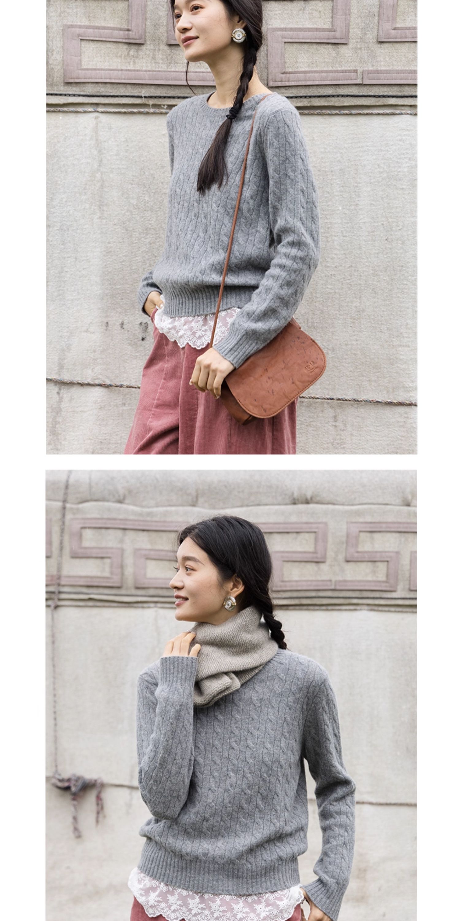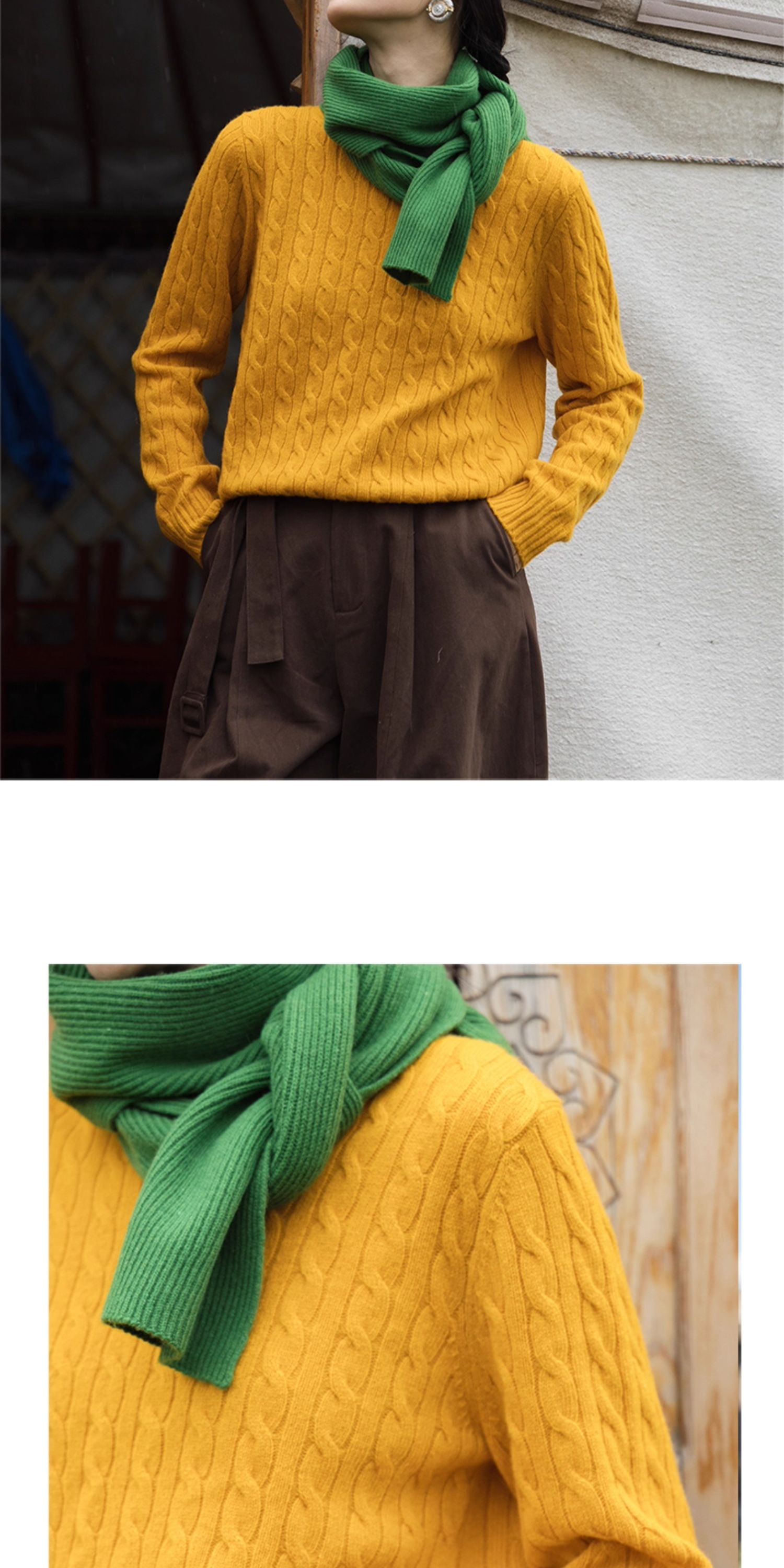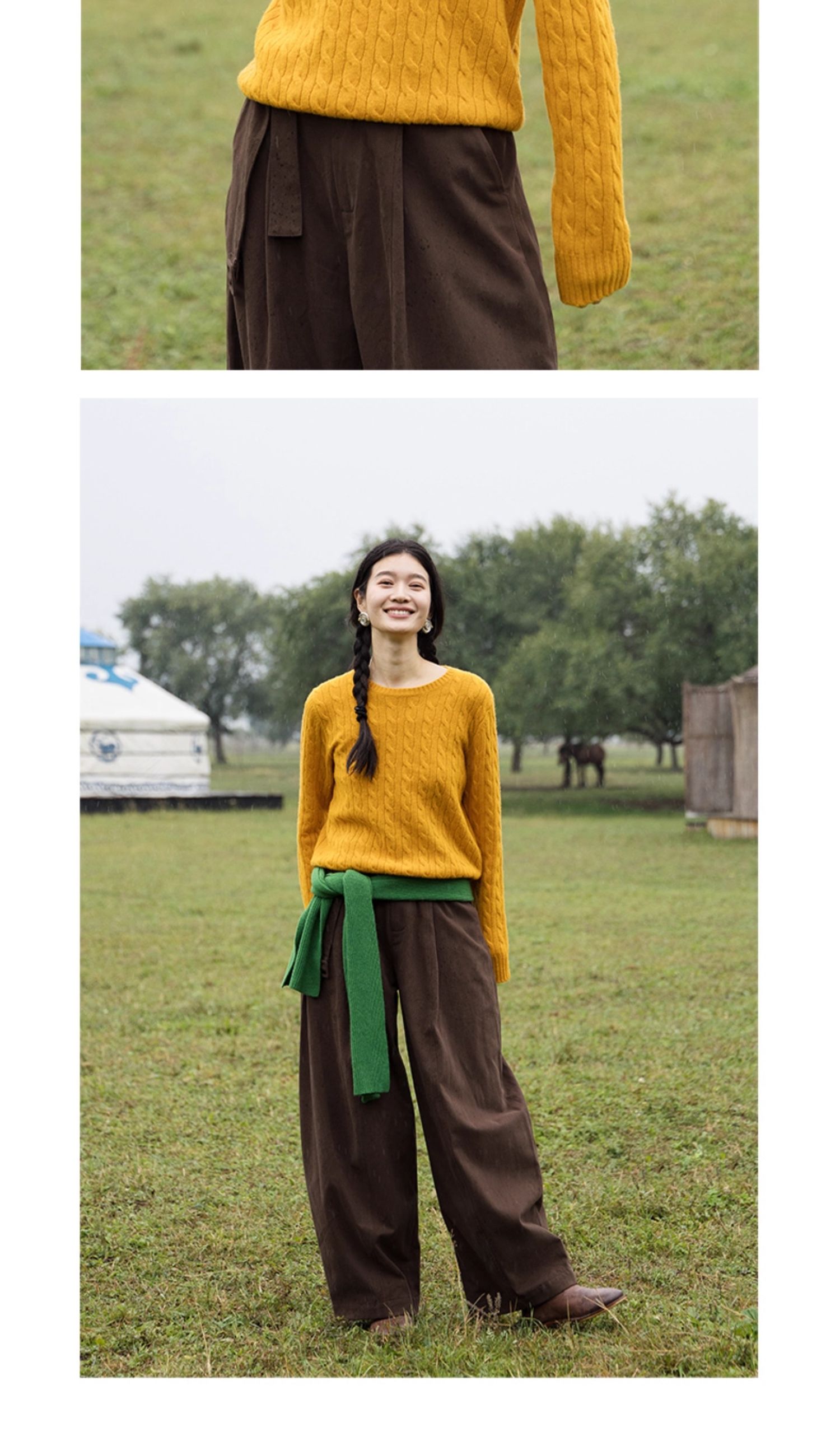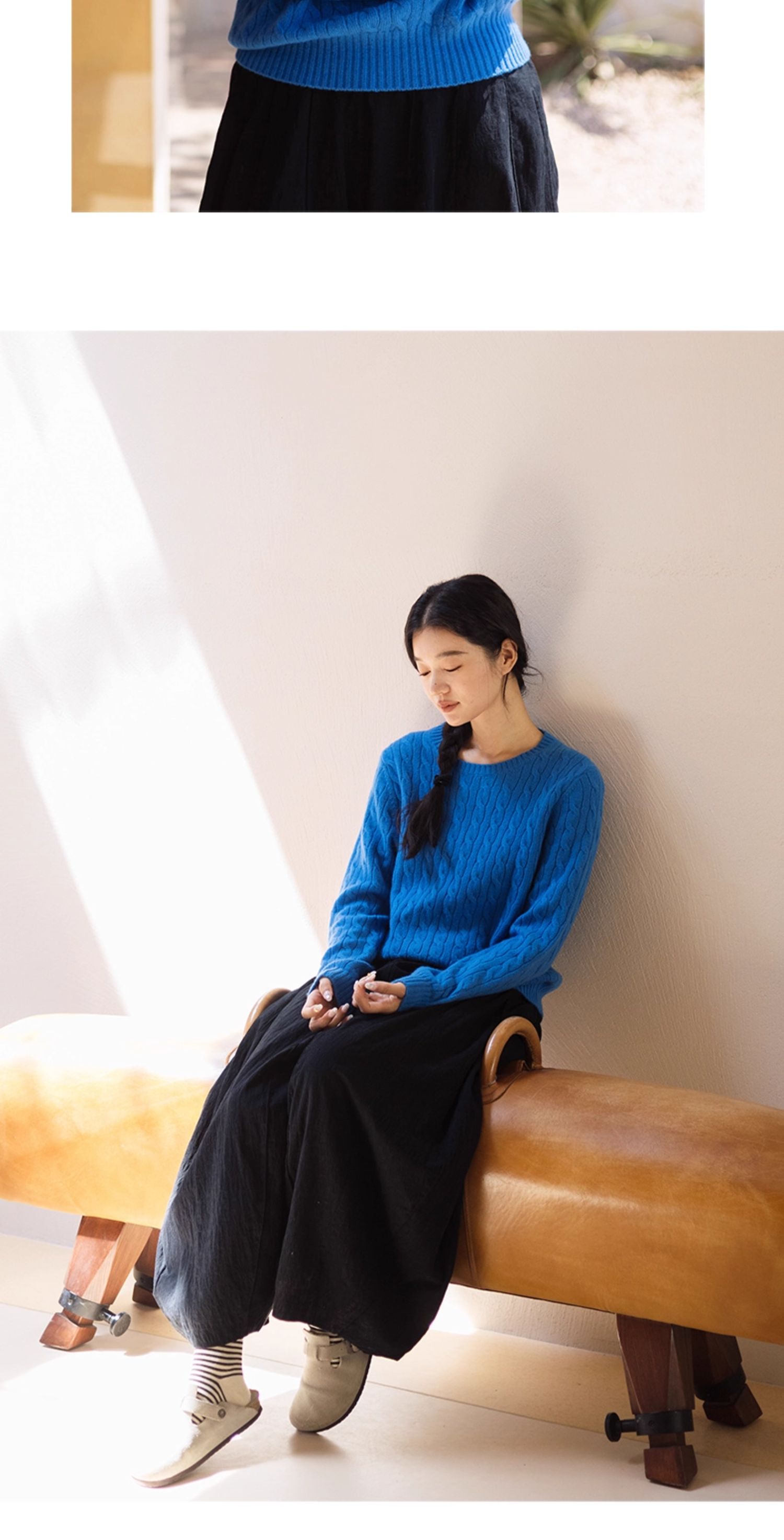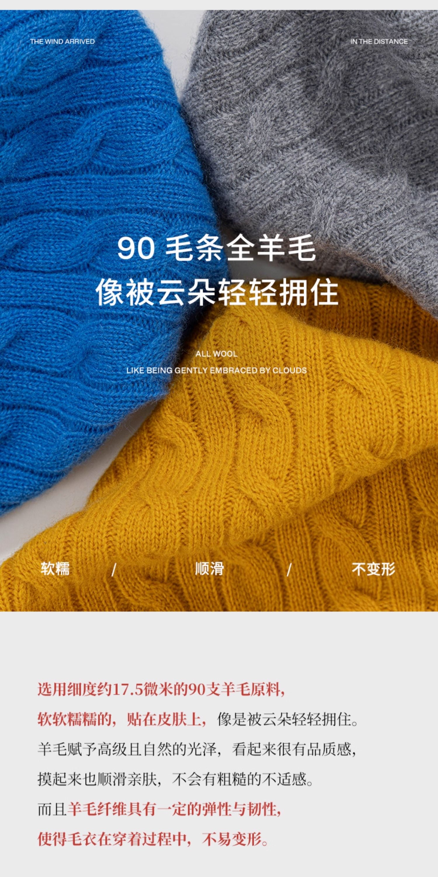 特绽放658朵/多色羊毛绞花圆领套头毛针织衫文艺百搭毛衣秋冬新款