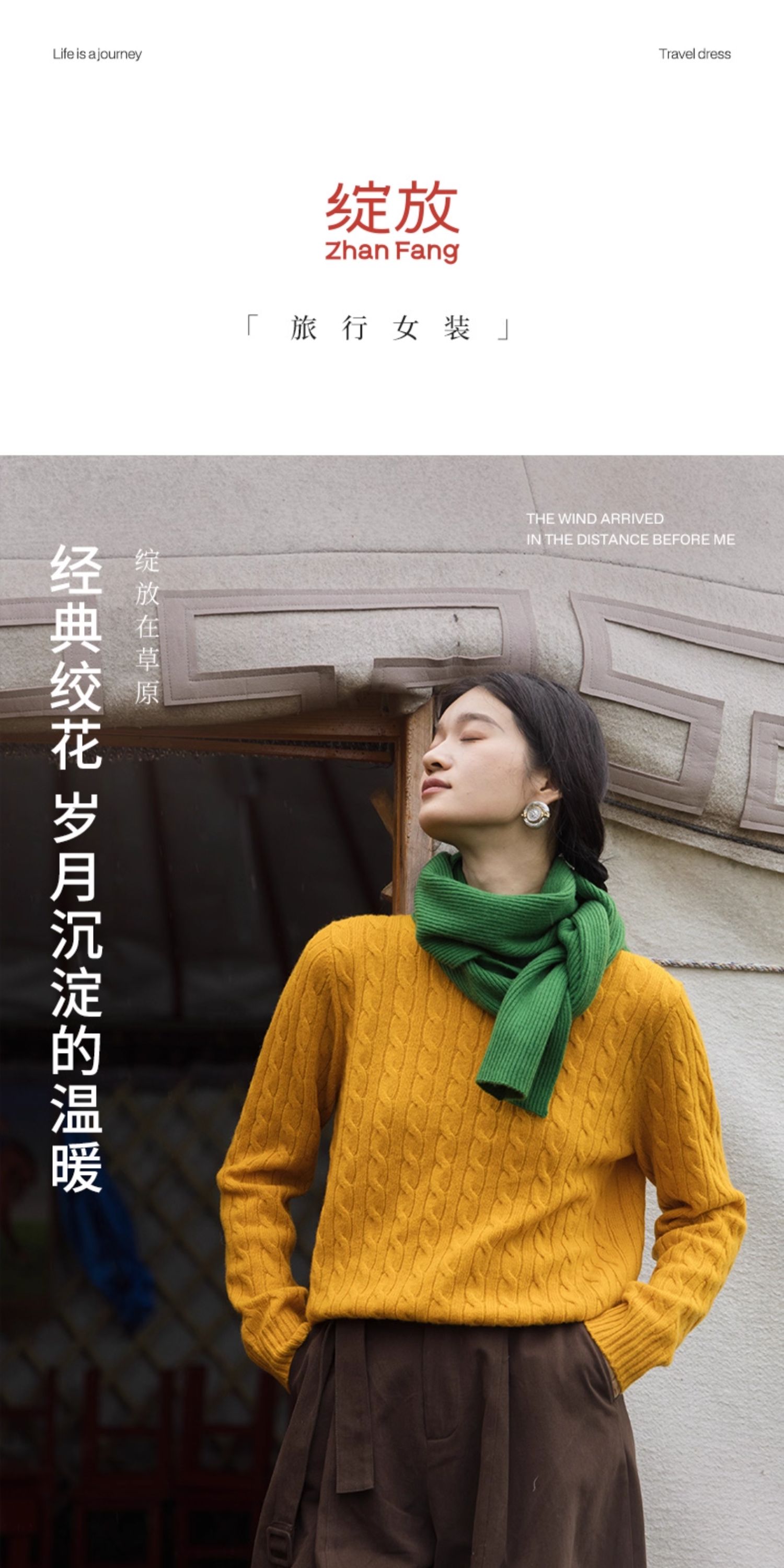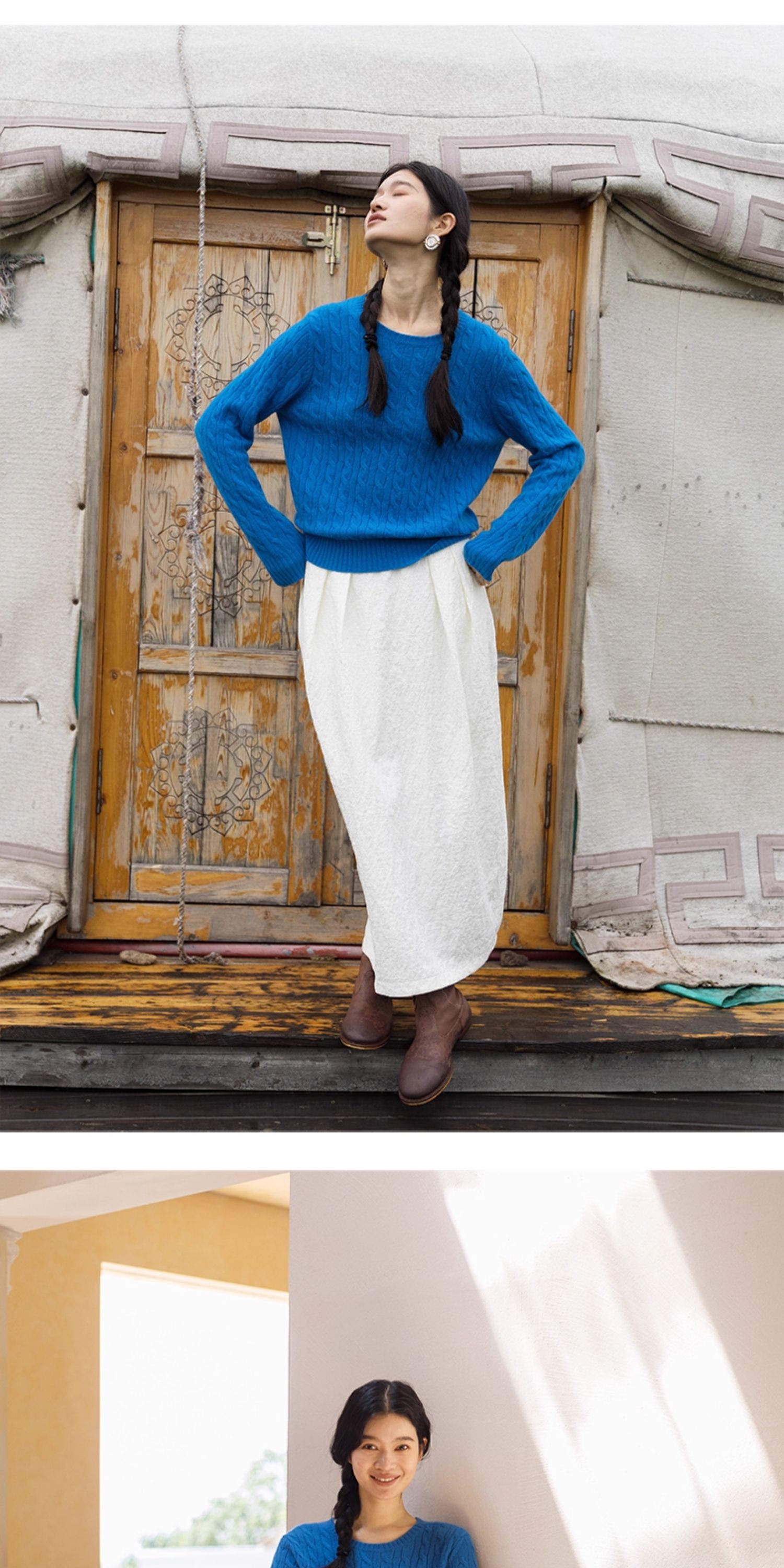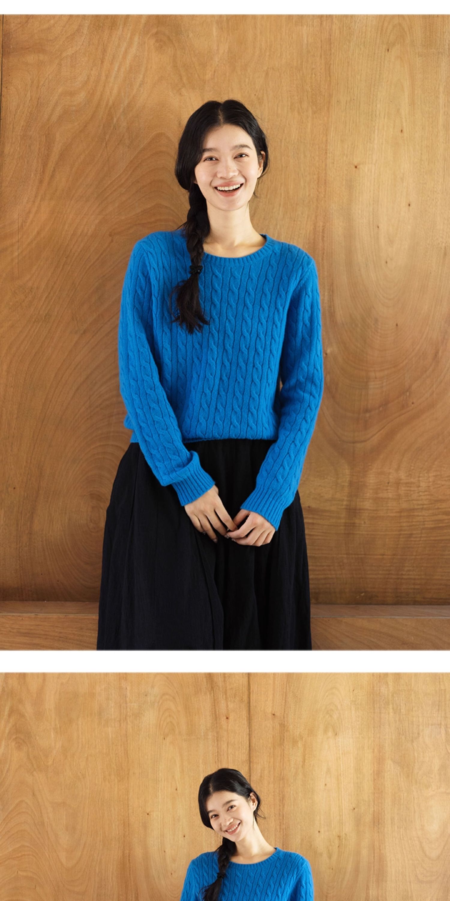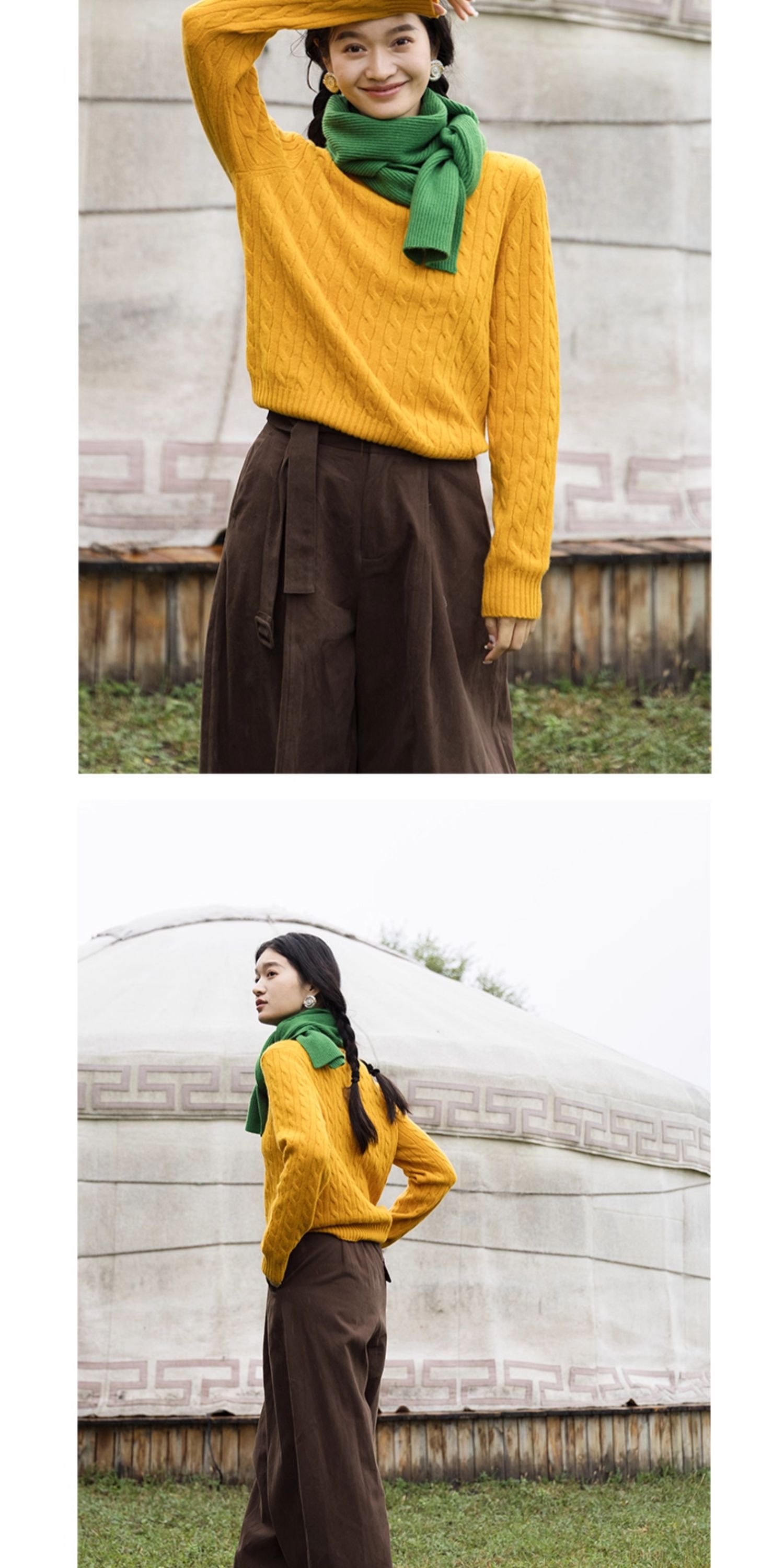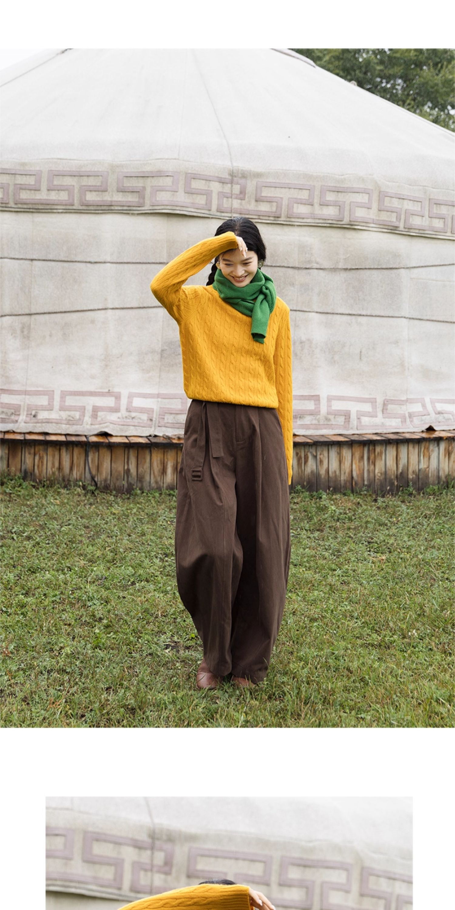 特绽放658朵/多色羊毛绞花圆领套头毛针织衫文艺百搭毛衣秋冬新款