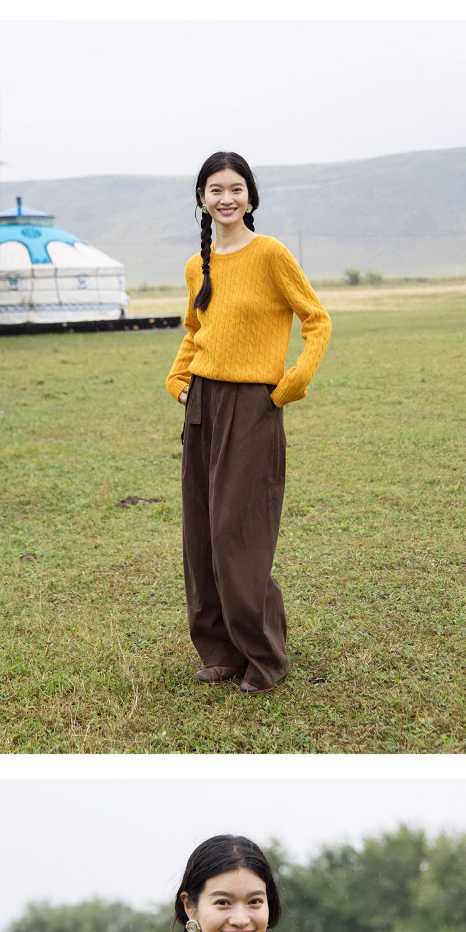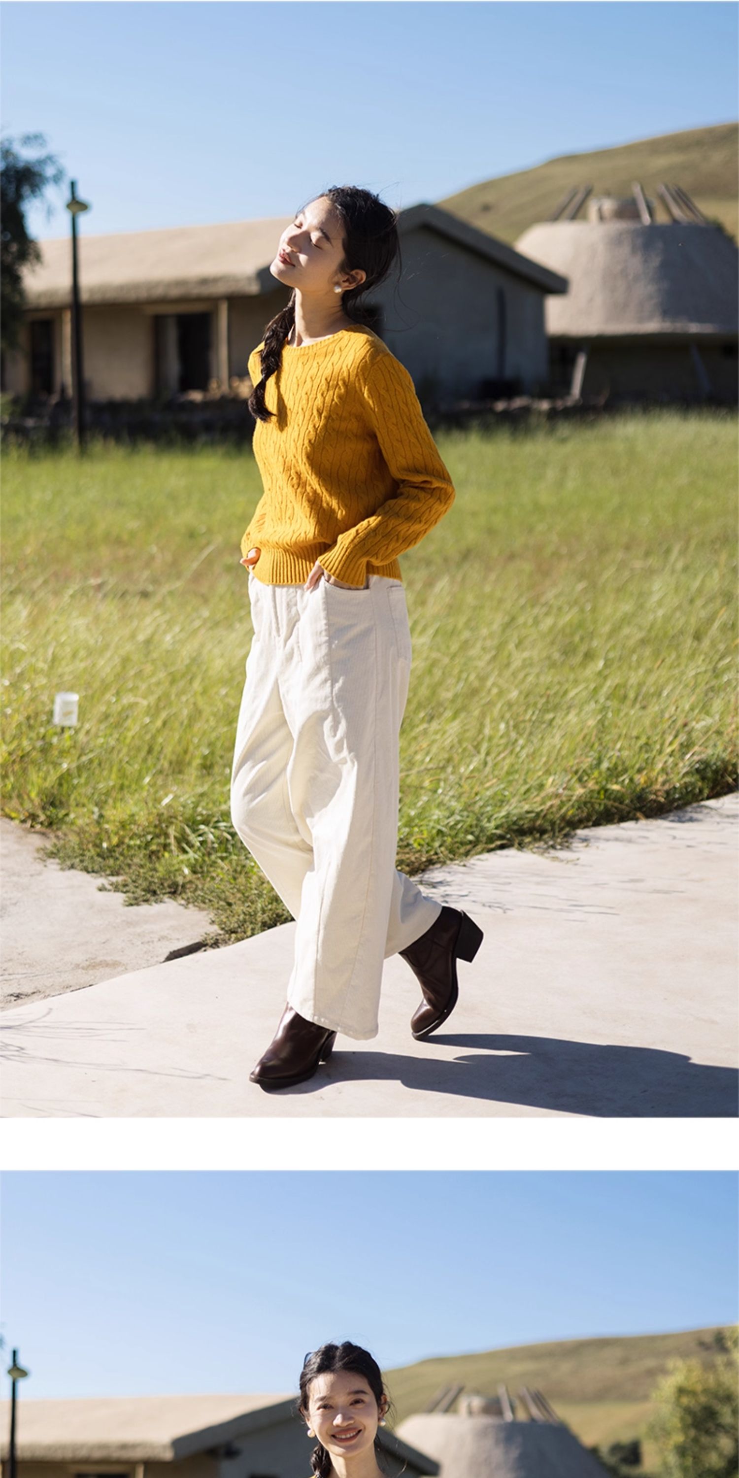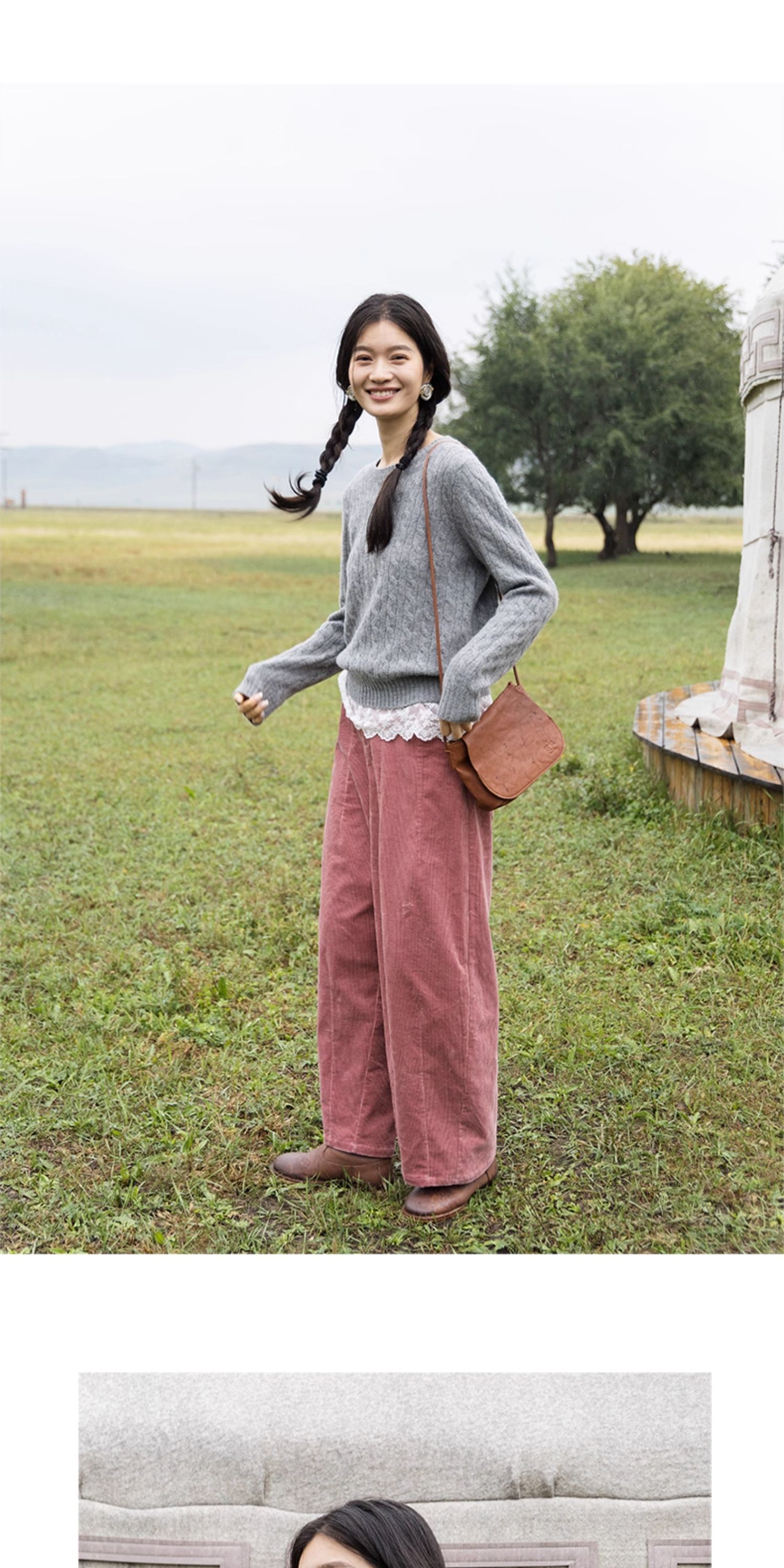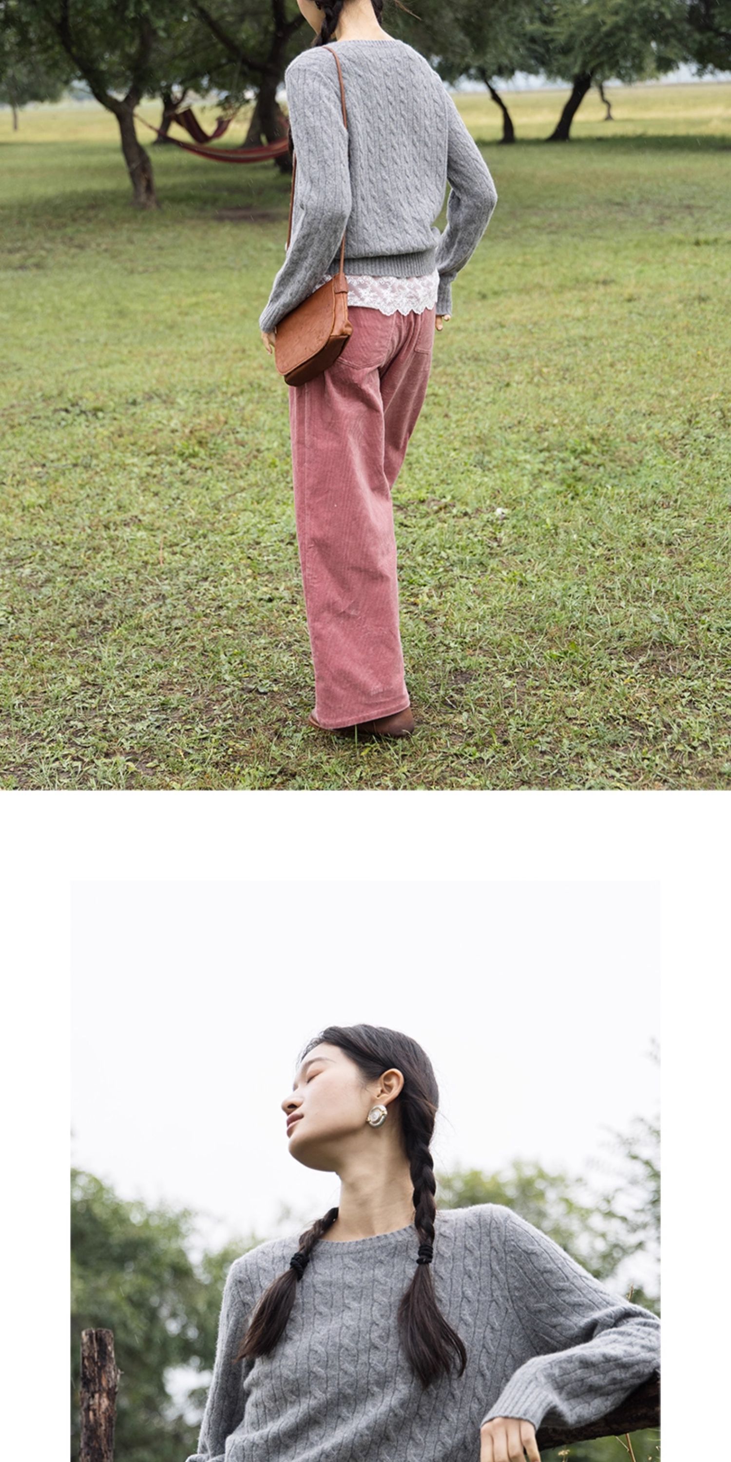 特绽放658朵/多色羊毛绞花圆领套头毛针织衫文艺百搭毛衣秋冬新款