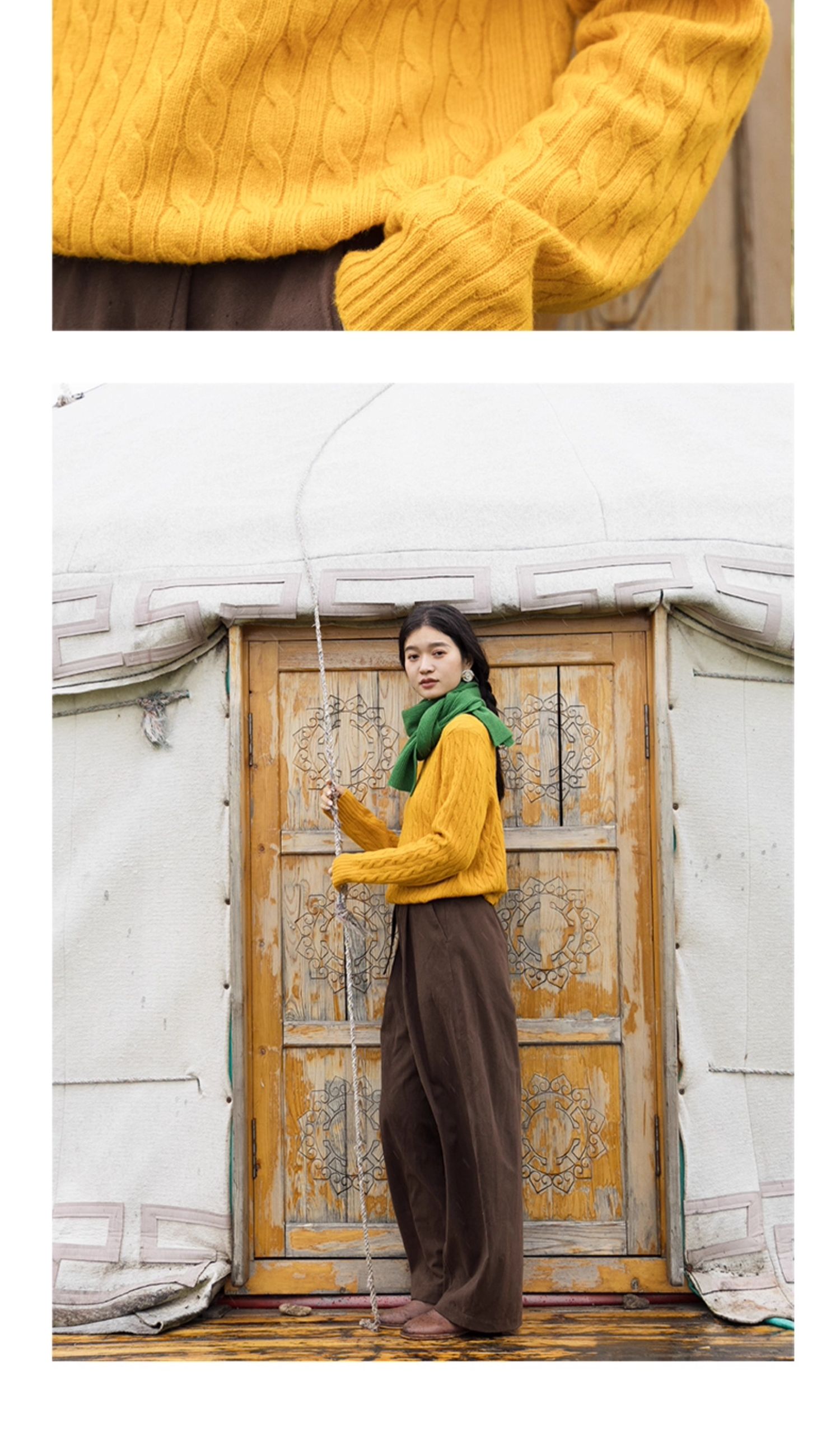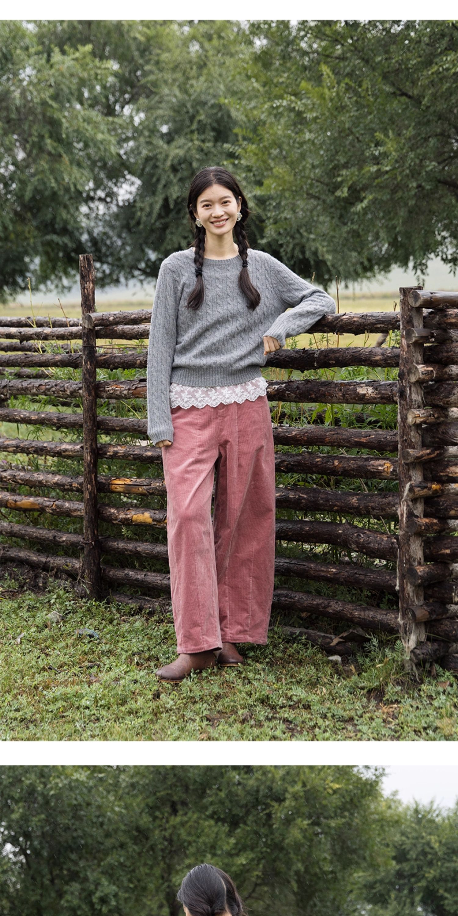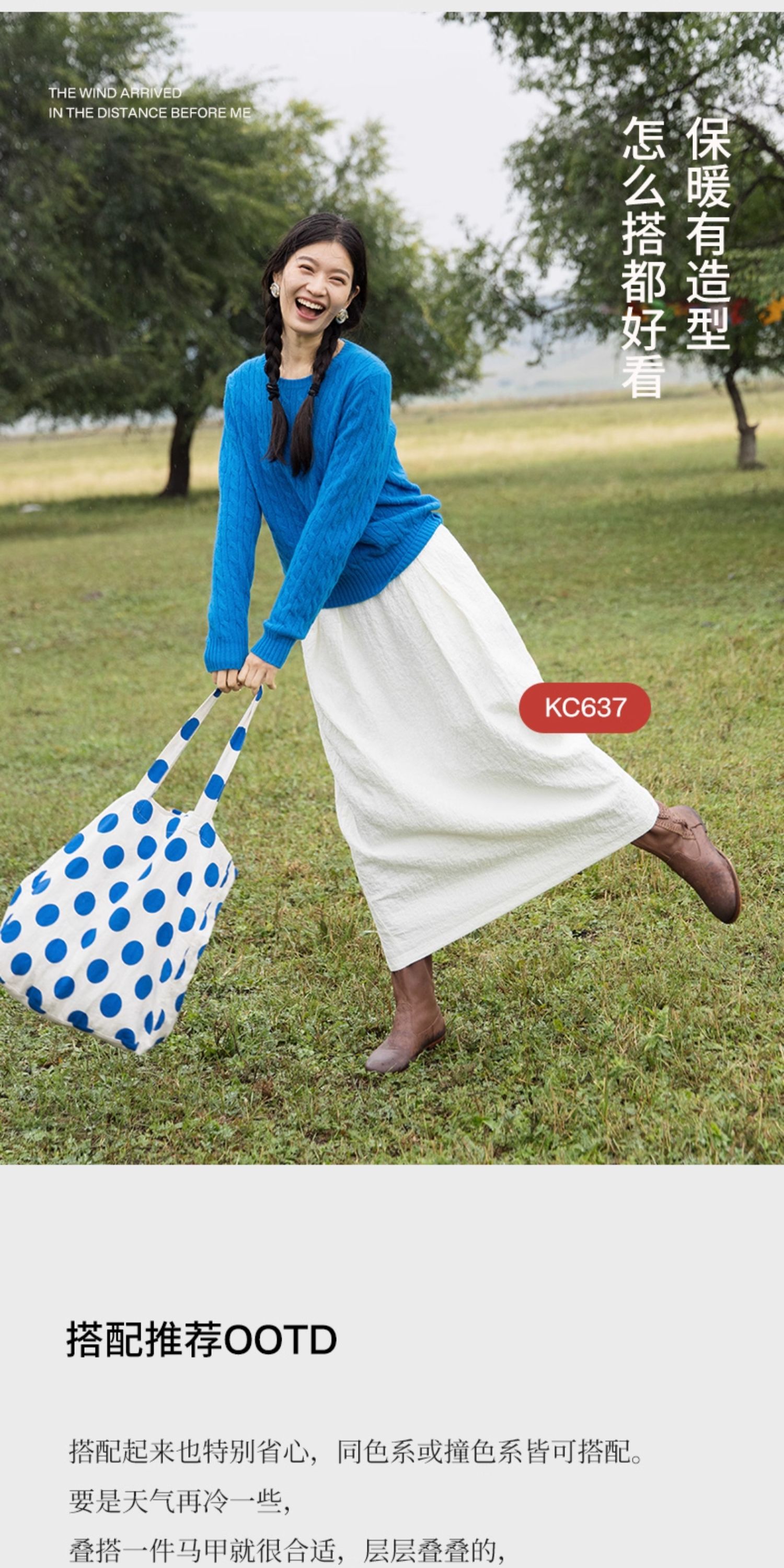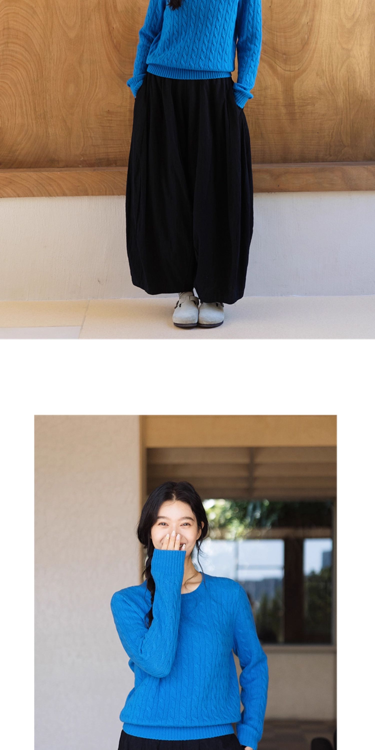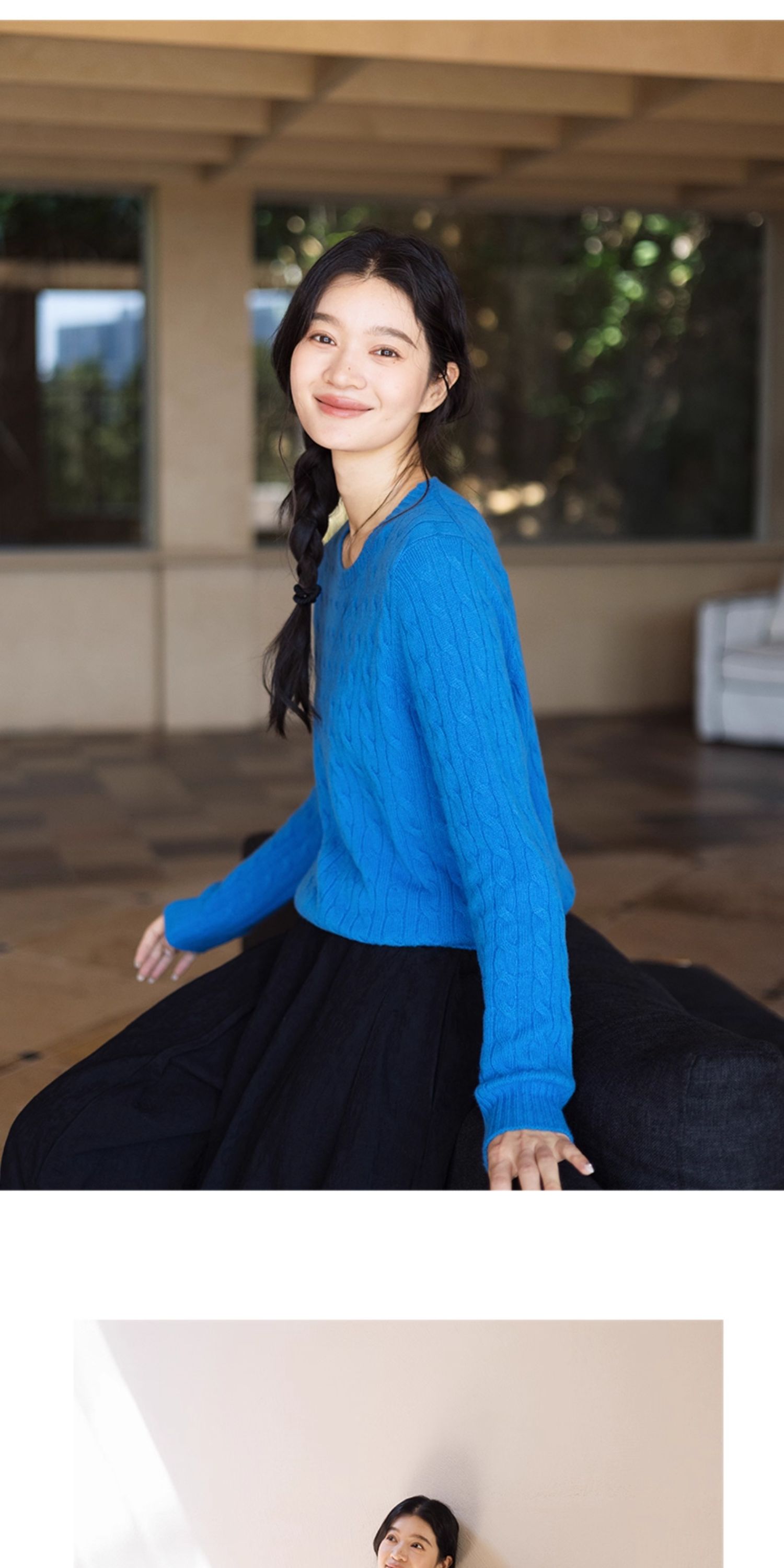 特绽放658朵/多色羊毛绞花圆领套头毛针织衫文艺百搭毛衣秋冬新款