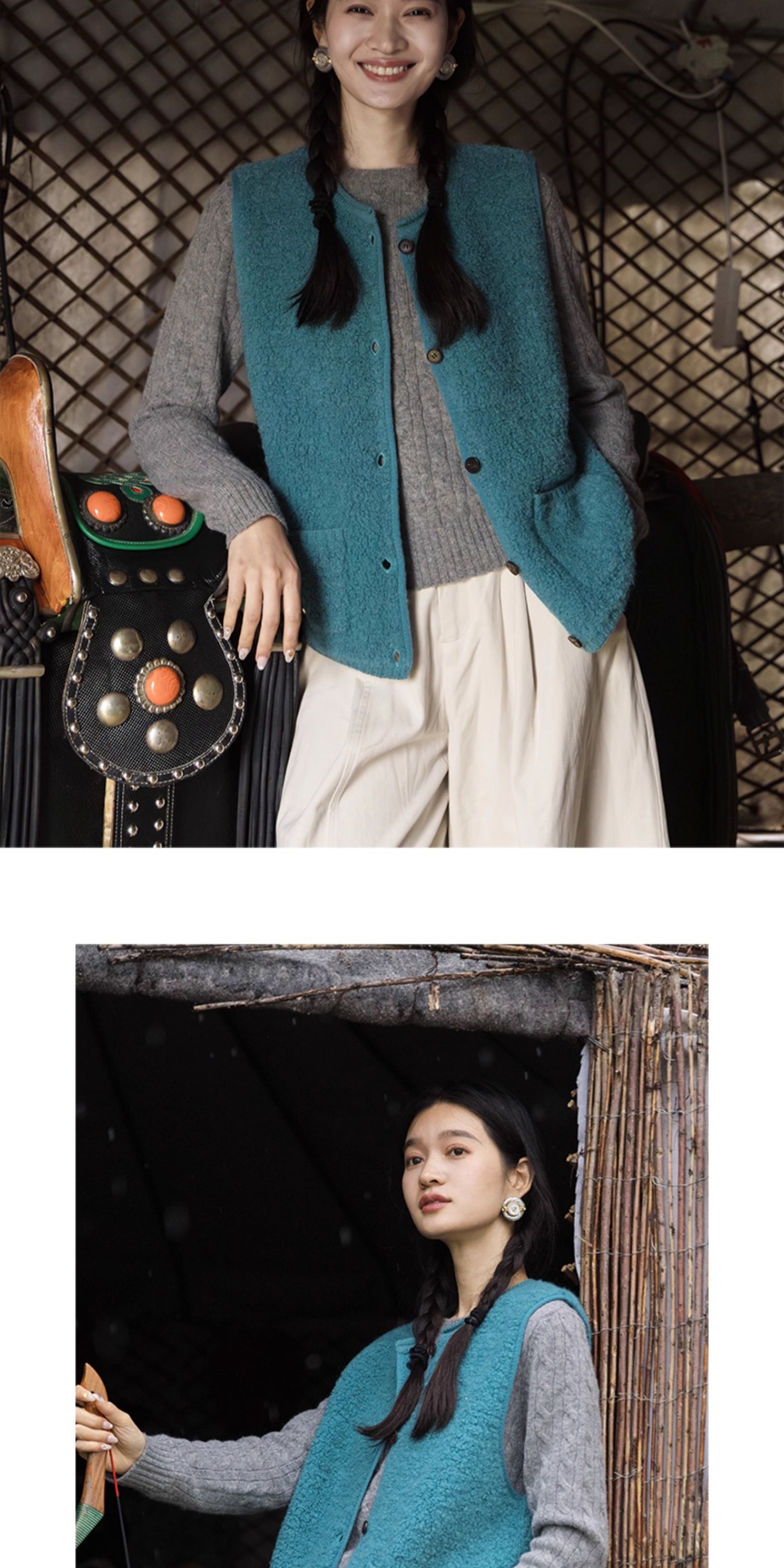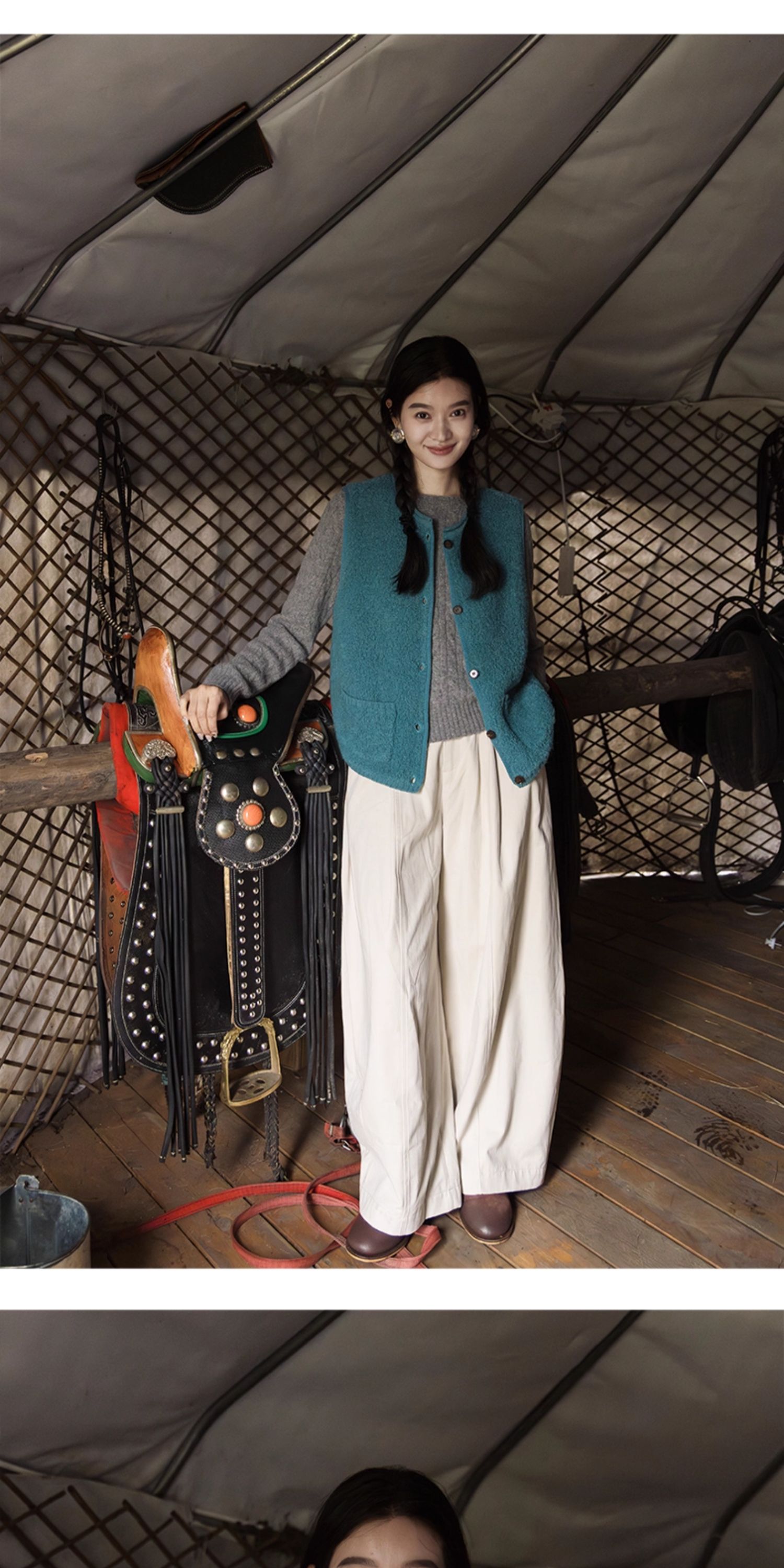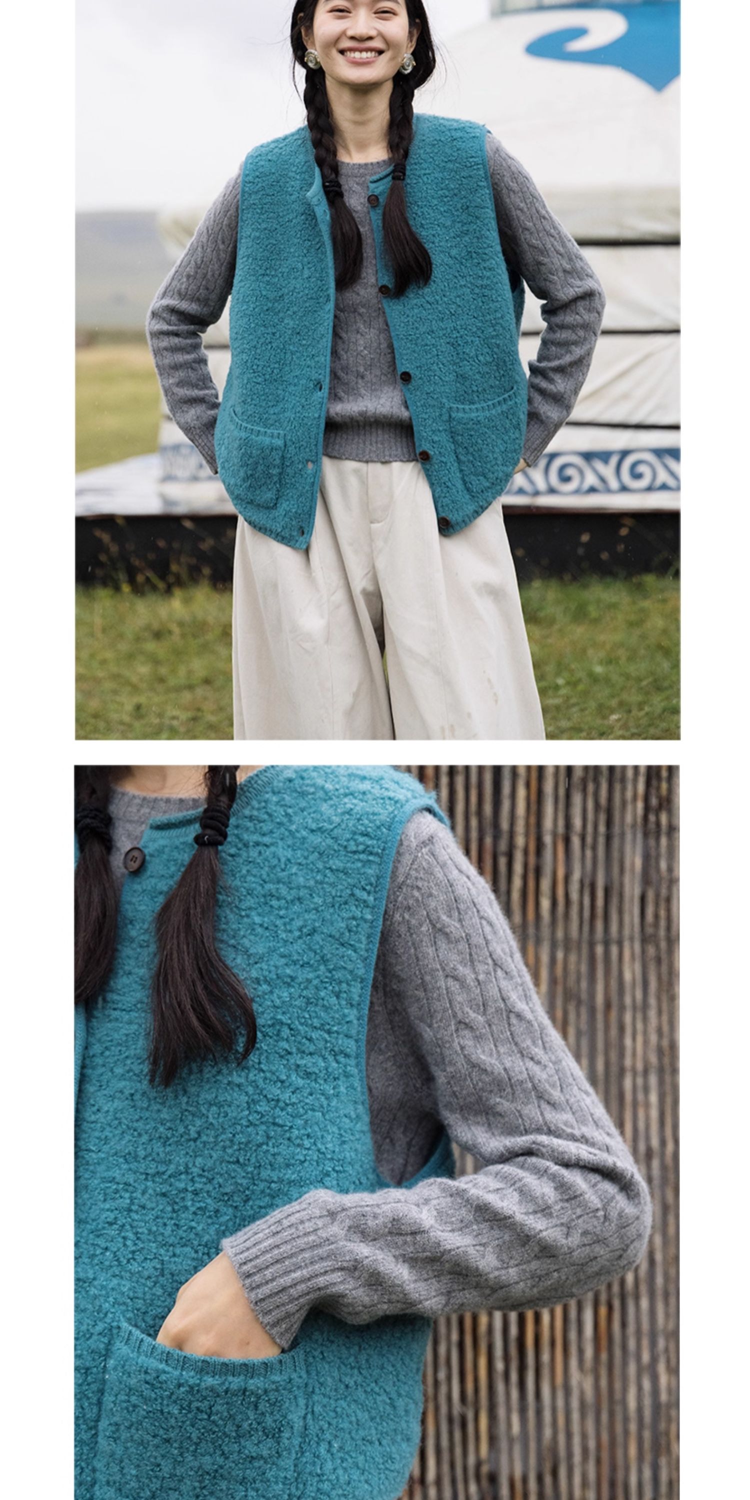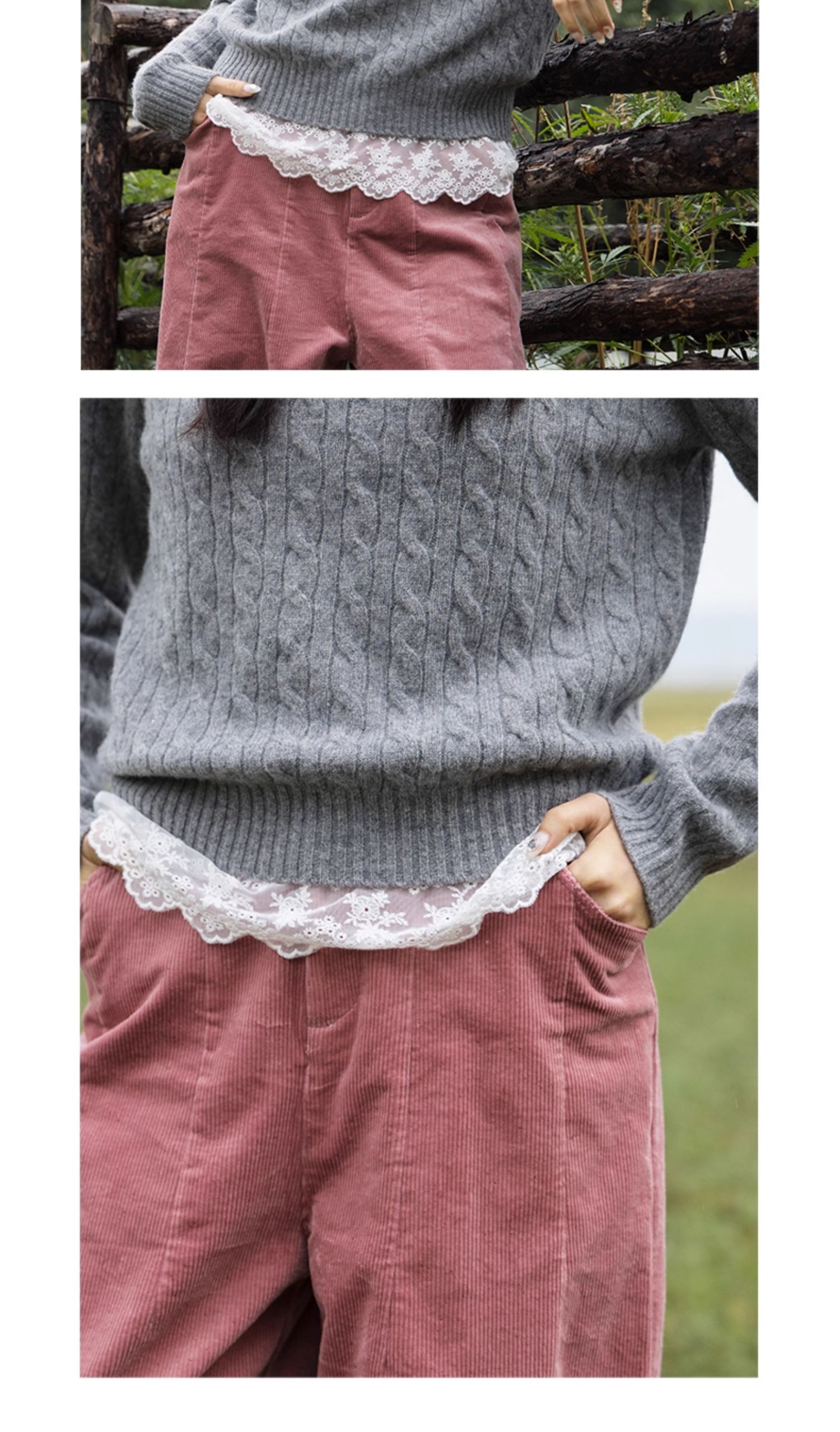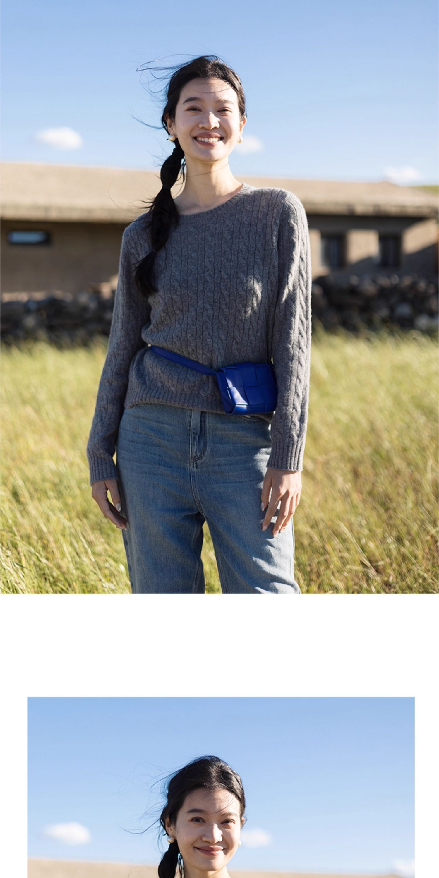 特绽放658朵/多色羊毛绞花圆领套头毛针织衫文艺百搭毛衣秋冬新款