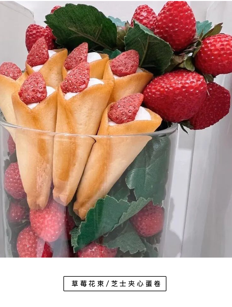 就是你眼前的——草莓花束/芝士夹心蛋卷。