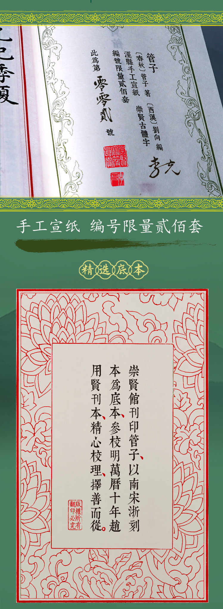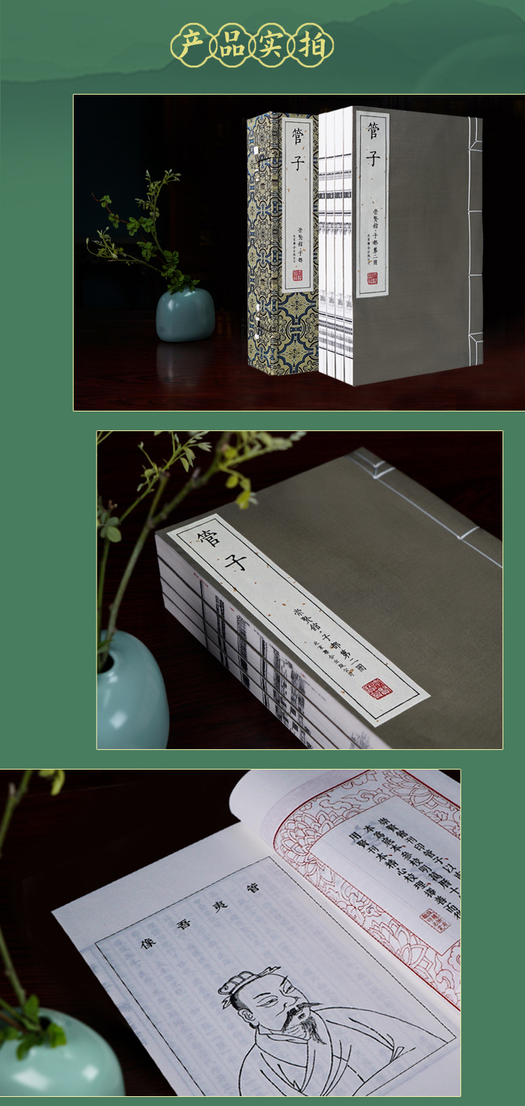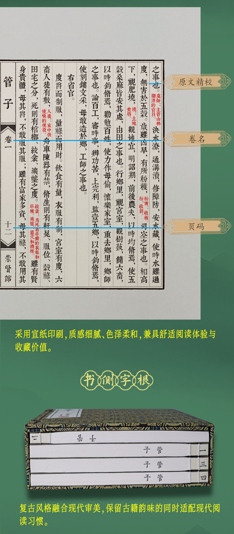 【崇贤宝笈】宣纸—管子(一函四册)手工宣纸线装繁体竖排