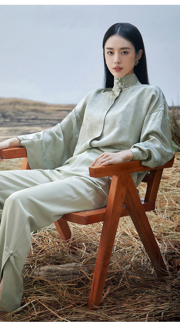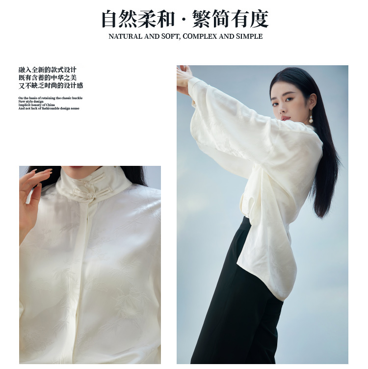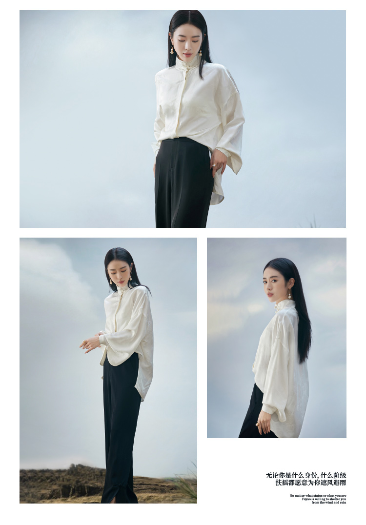 扶摇新中式2023秋立领改良国风唐装白色复古上衣女衬衫