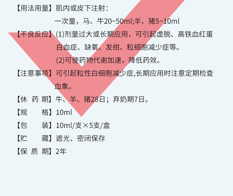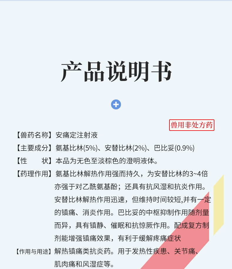 安痛定注射液5支 解热镇痛 治疗肌肉痛关节痛和神经痛 马牛羊猪用