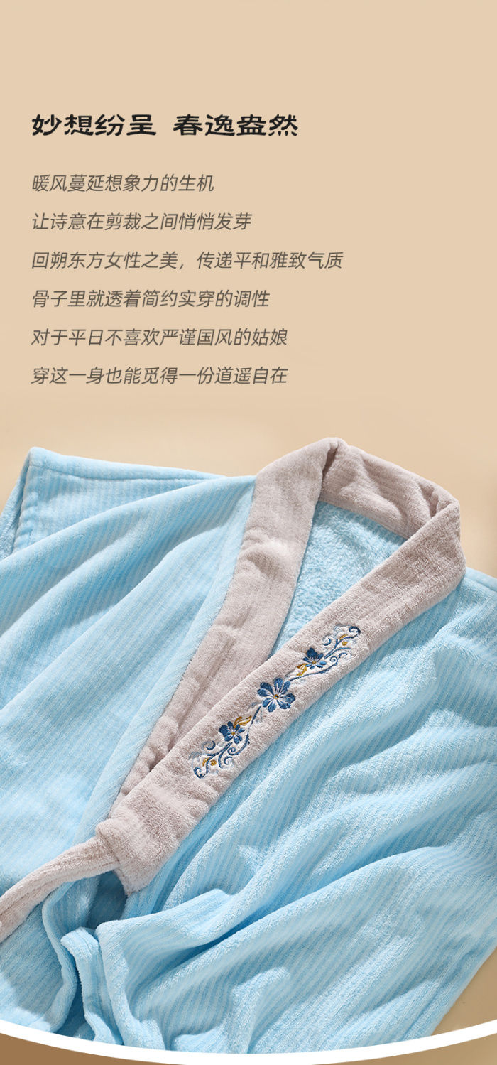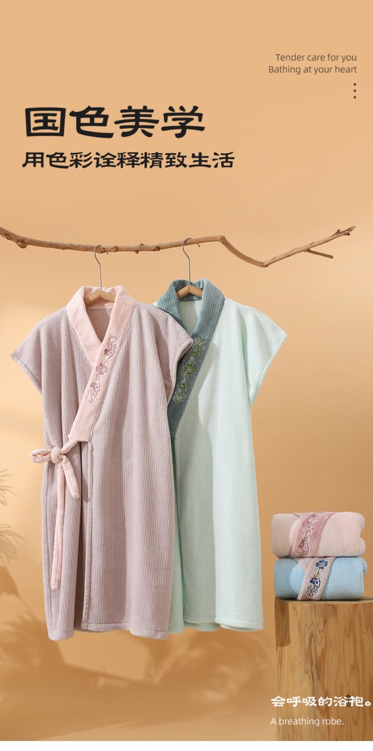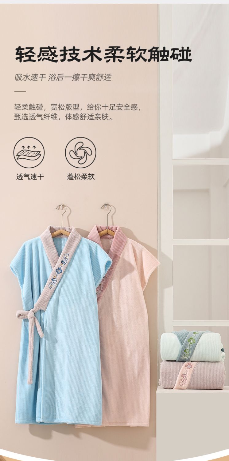 玉颜新品中式浴袍女长款睡袍复古洗澡吸水速干浴袍成人夏薄款睡衣