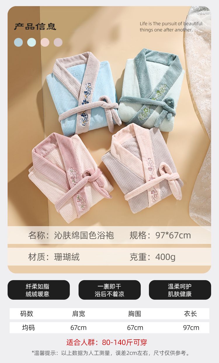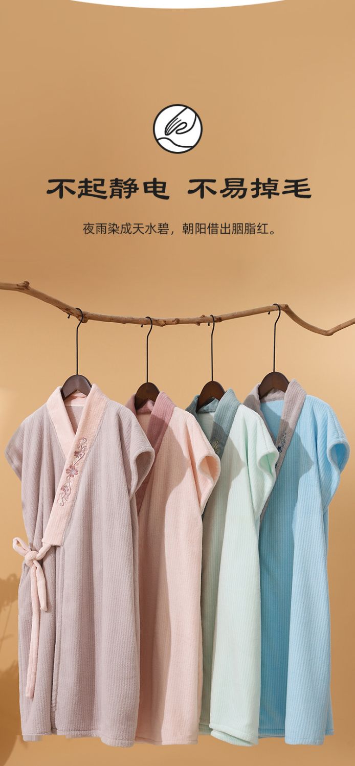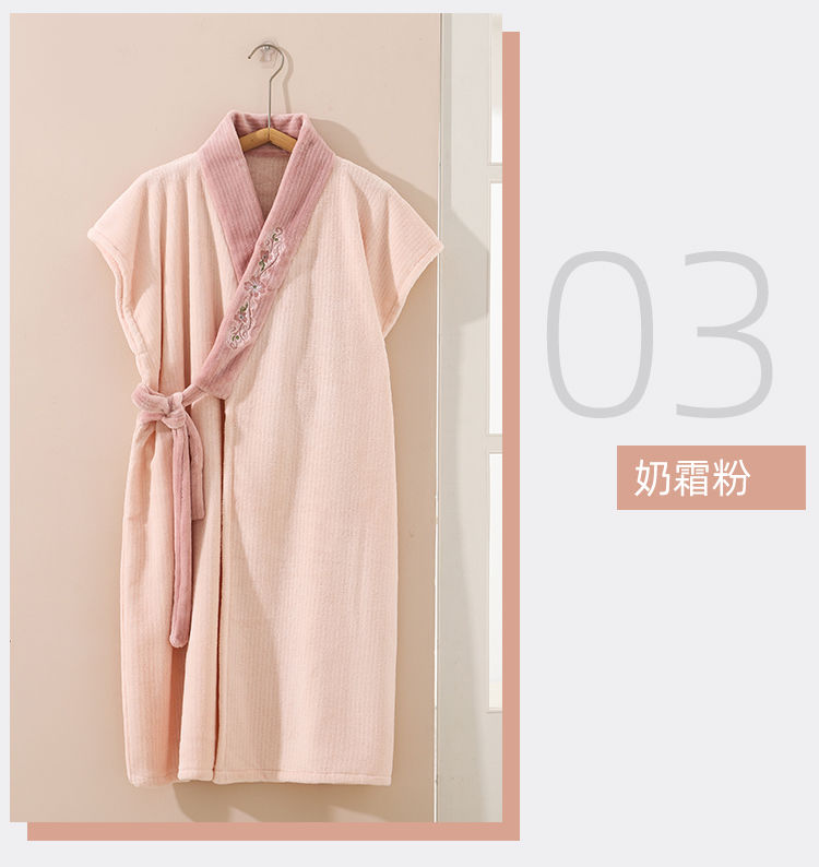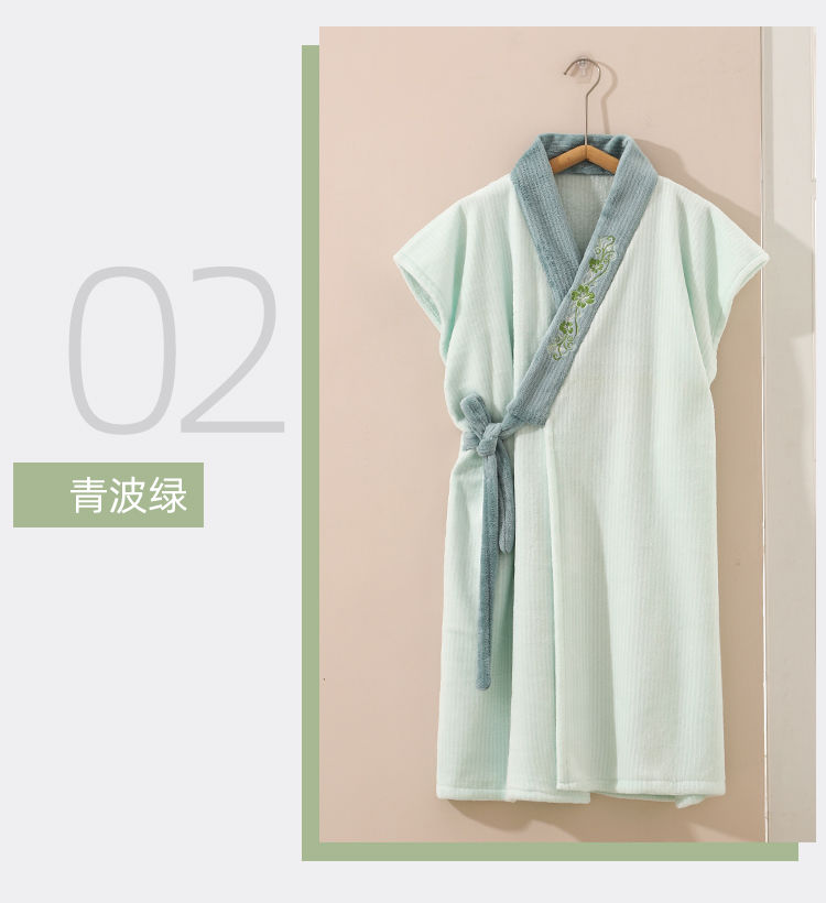 玉颜新品中式浴袍女长款睡袍复古洗澡吸水速干浴袍成人夏薄款睡衣