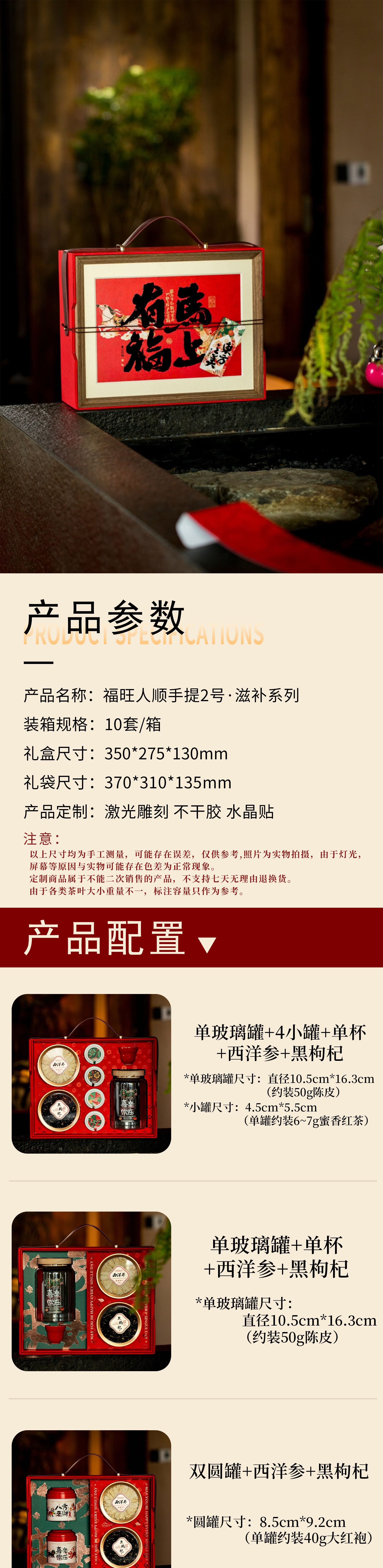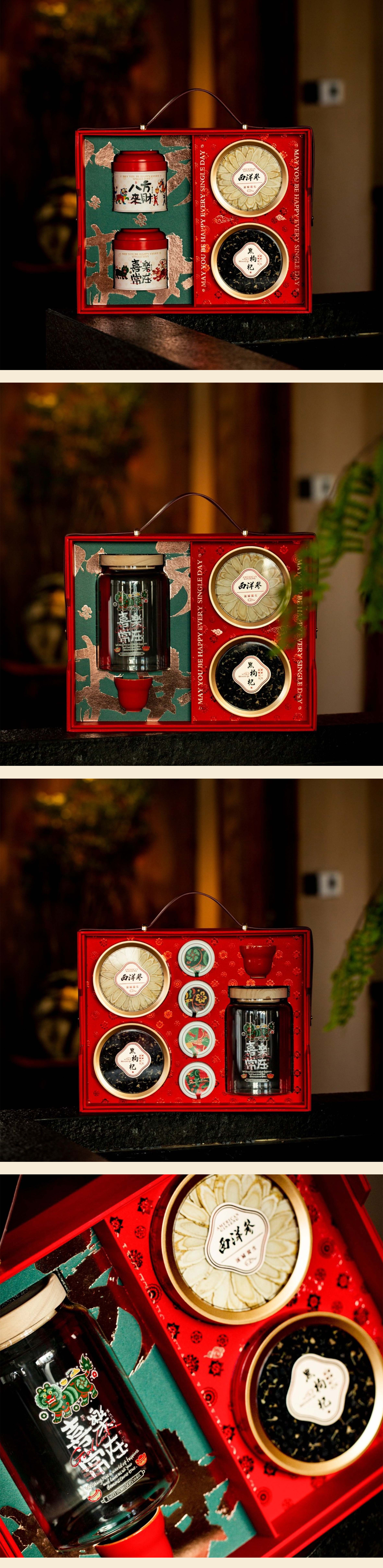 福旺人顺手提2号·滋补系列【单玻璃罐+4小罐+单杯+西洋参+黑枸杞】120元一套/一箱10套