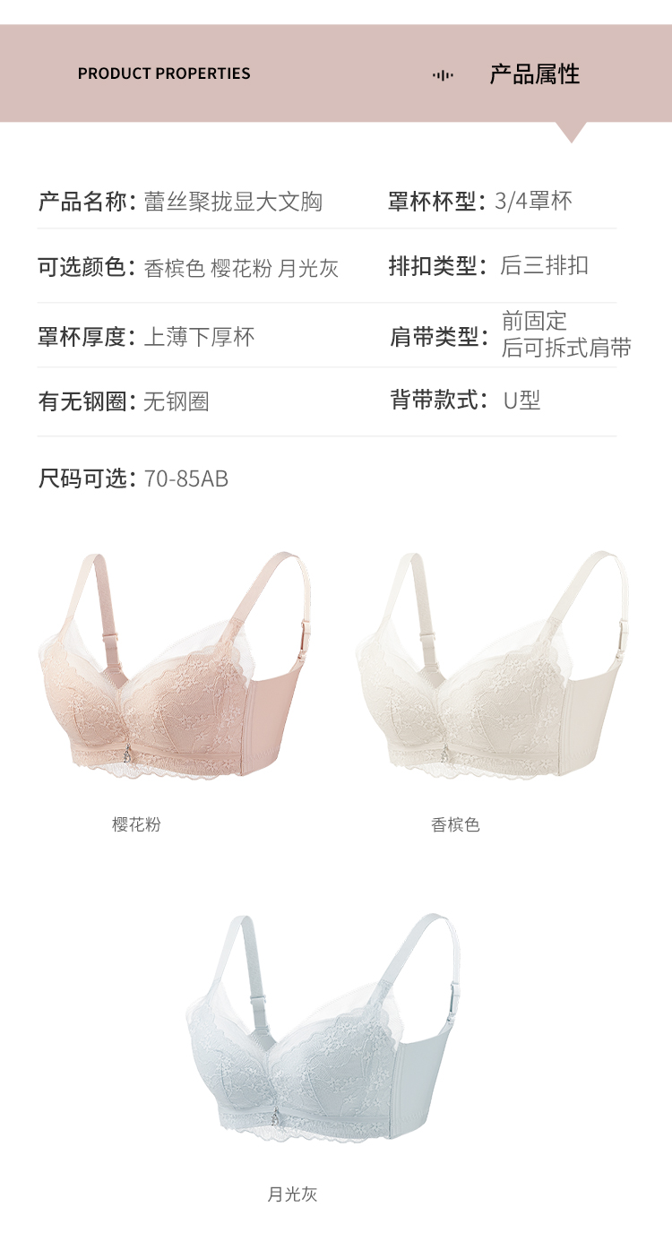 雅黛丽内衣女小胸聚拢显大性感蕾丝文胸无钢圈收副乳调整型胸罩女