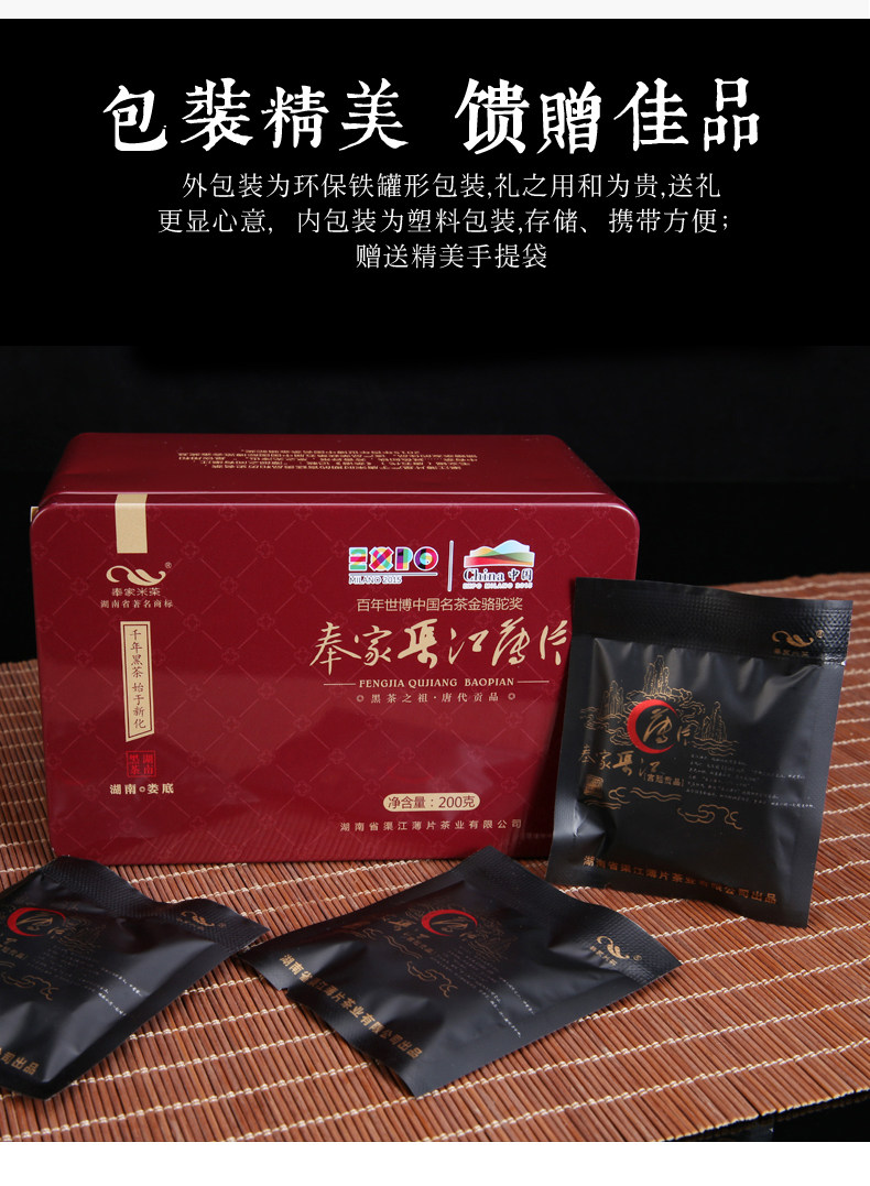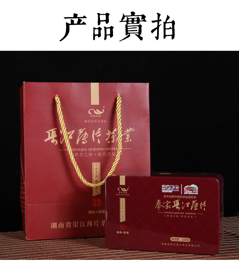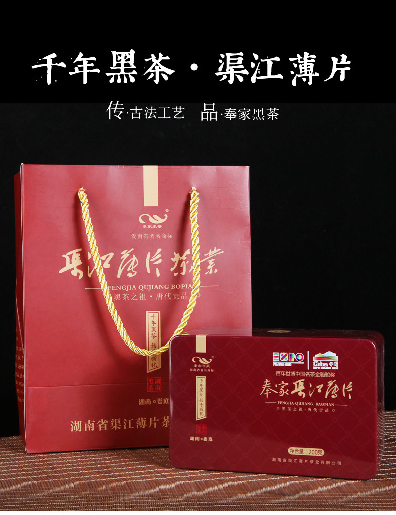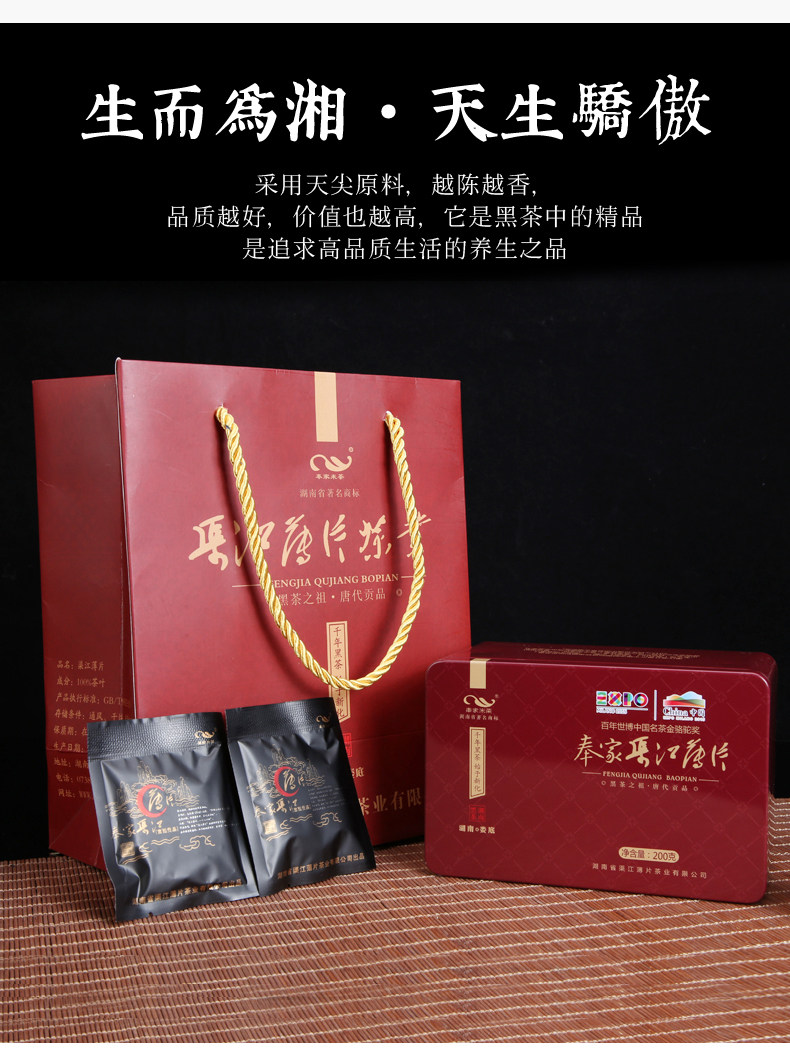 湖南渠江薄片 安化黑茶 新化特产奉家 新化黑茶铁盒礼盒礼品茶叶