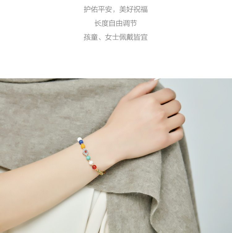 多宝手串‧五彩金刚结手串 本命年手链925足银配天然幸运宝石原创