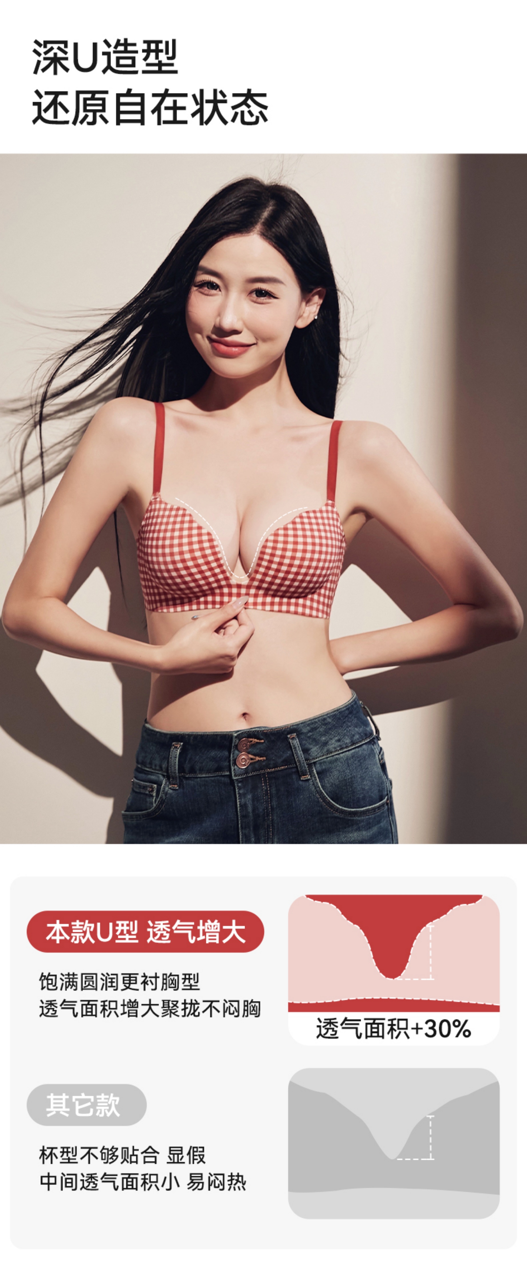 秒变“漫画胸”『撞色の蜜桃聚拢Bra』上托月牙杯 聚拢挺拔显胸大 深U性感更富活力 多巴胺撞色格子 视觉冲击力upup~