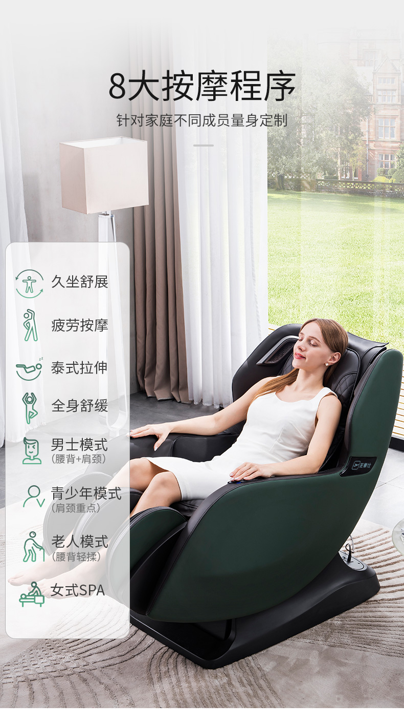 芝华仕CHEERS M2030按摩椅家用型全身 魅影绿