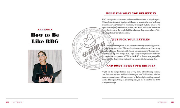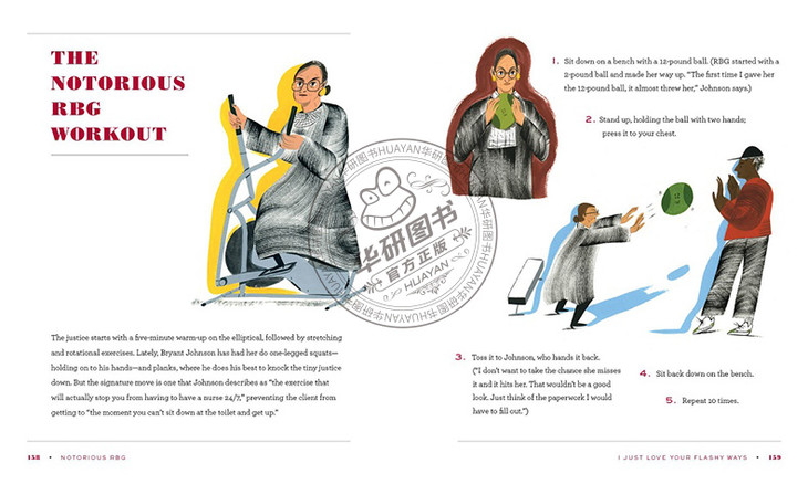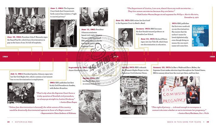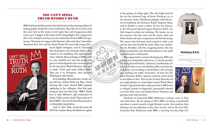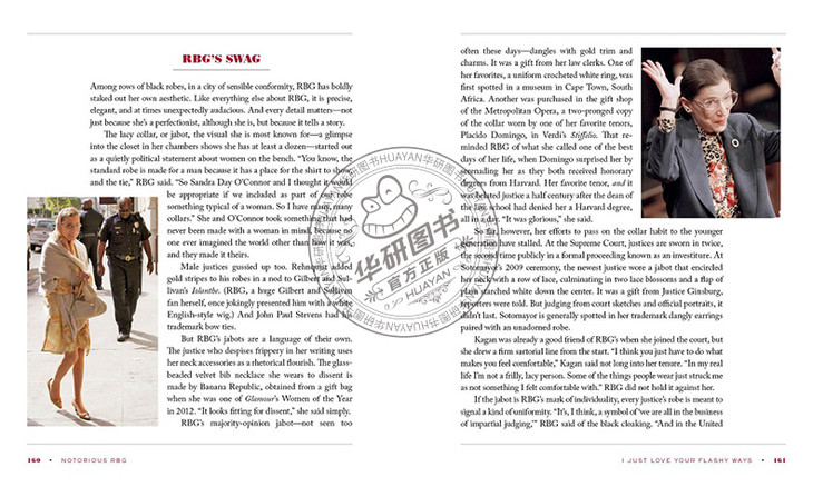 书中内容一部分是传记,一部分是画集,还有一部分是金斯伯格的案件记录。通过穿插采访、插图、网络热词等素材,对金斯伯格的一生进行了精彩回溯。