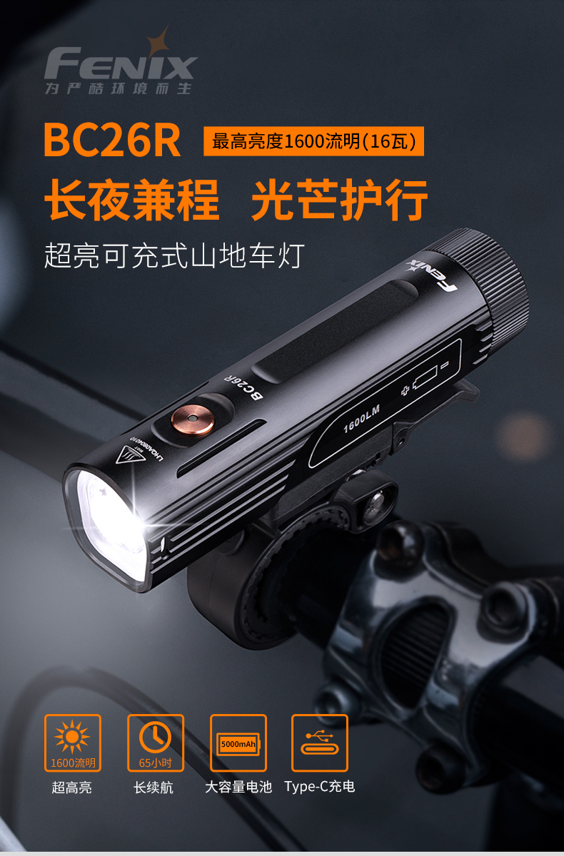 Fenix菲尼克斯BC26R自行车灯强光充电超亮车前骑行灯快拆山地车灯
