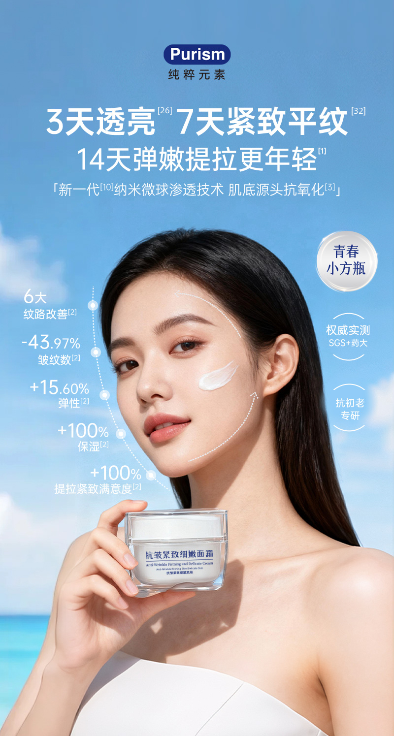 纯粹元素 小方瓶抗皱紧致细嫩面霜【单瓶50g】