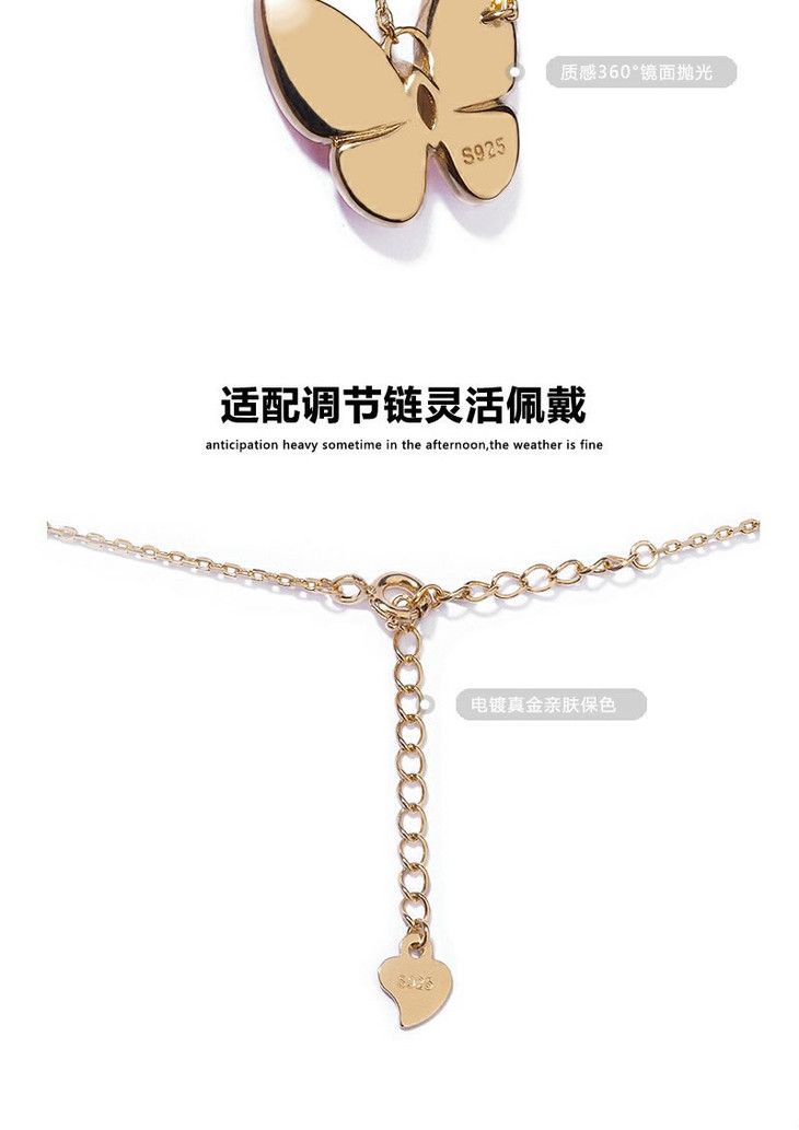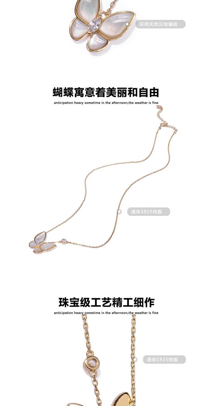 六鑫珠宝 天然贝母蝴蝶项链 s925银