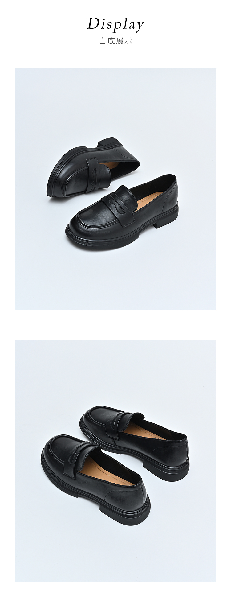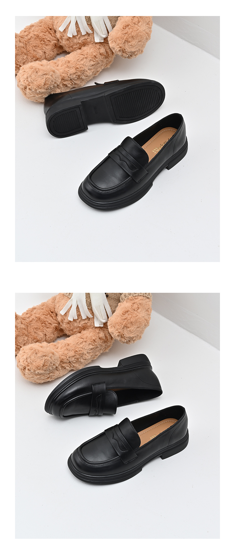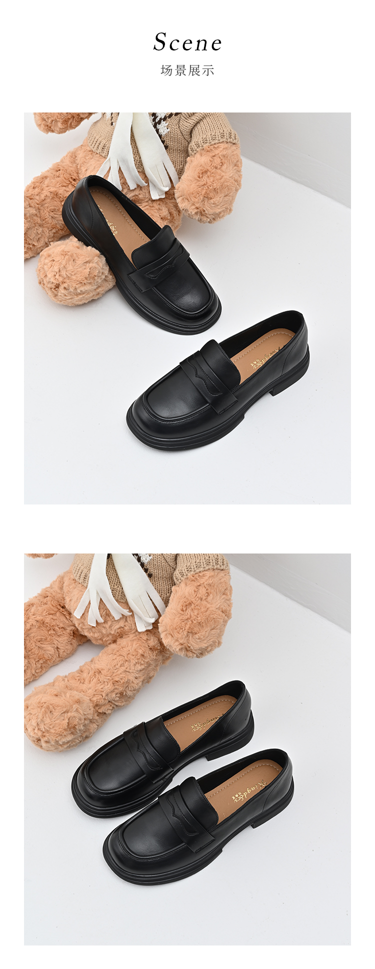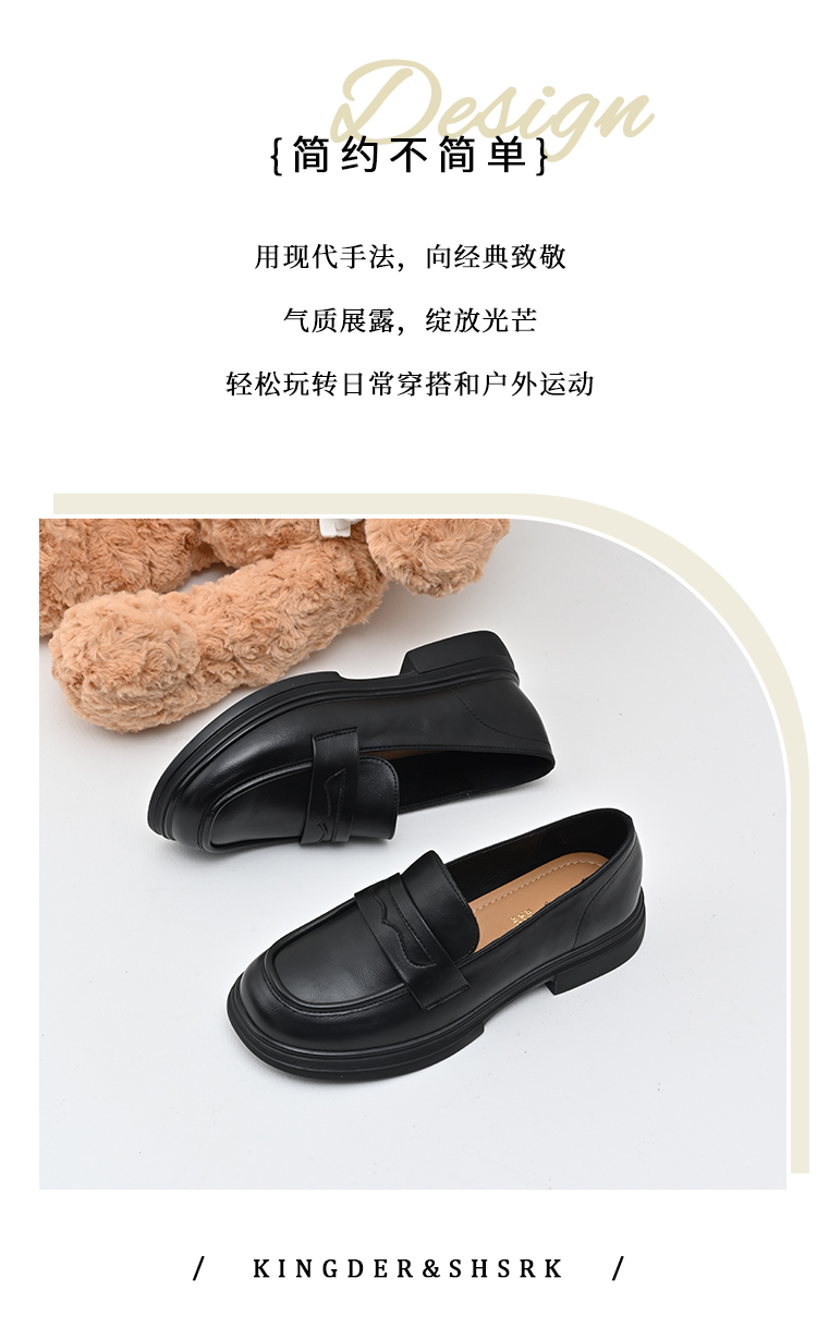 经典鲨2025年春季新款百搭圆头黑色平底一脚蹬通勤乐福鞋女KW87-517011