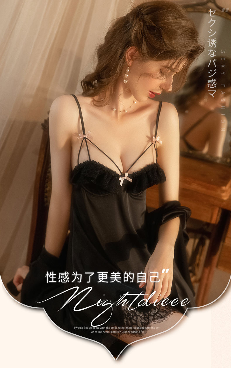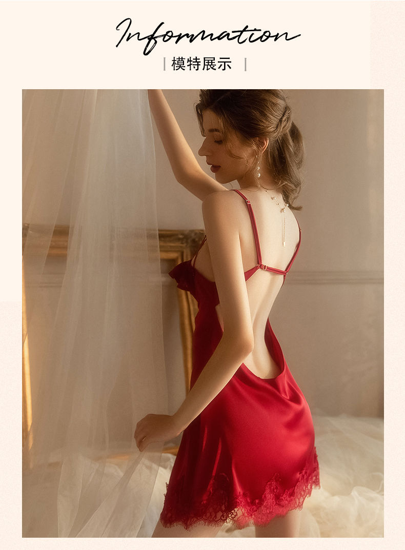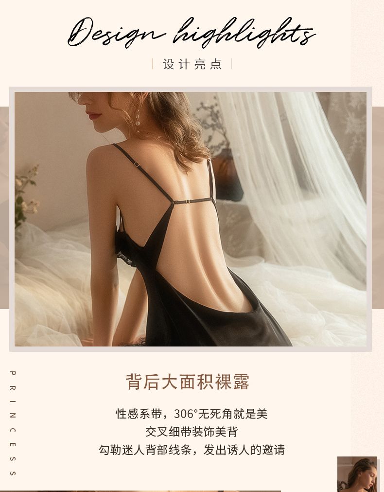 【超好看!仿真丝蕾丝吊带睡裙】舒适到像裸穿,自带胸垫,免穿文胸内衣!花边V领女夏季薄款露背纯欲风睡衣