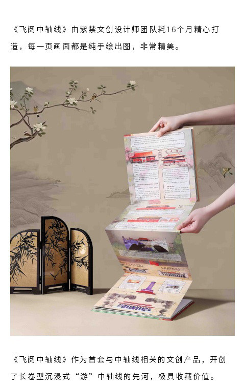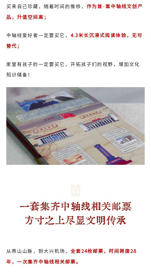 【飞阅中轴线】文创珍藏册,故宫博物院成立100周年版,4.3米超长卷沉浸式逛中轴线,24枚中轴线邮票