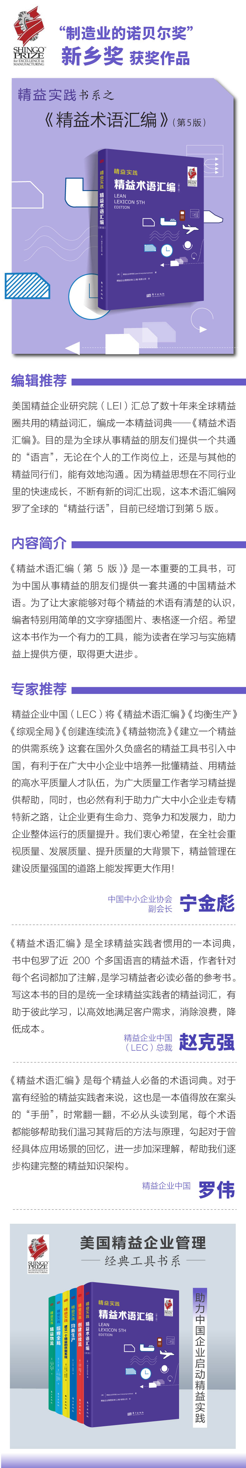 精益企业中国(LEC)将《精益术语汇编》《均衡生产》《综观全局》《创建连续流》《精益物流》《建立一个精益的供需系统》这套在国外久负盛名的精益工具书引入中国,在国内翻译出版。这套书的引进,有利于在广大中小企业中培养一批懂精益、用精益的高水平质量人才队伍,为广大质量工作者学习精益提供帮助,同时,也必然有利于助力广大中小企业走专精特新之路,让企业更有生命力、竞争力和发展力,助力企业整体运行的质量提升。我们衷心希望,在全社会重视质量、发展质量、提升质量的大背景下,精益管理在建设质量强国的道路上能发挥更大作用!