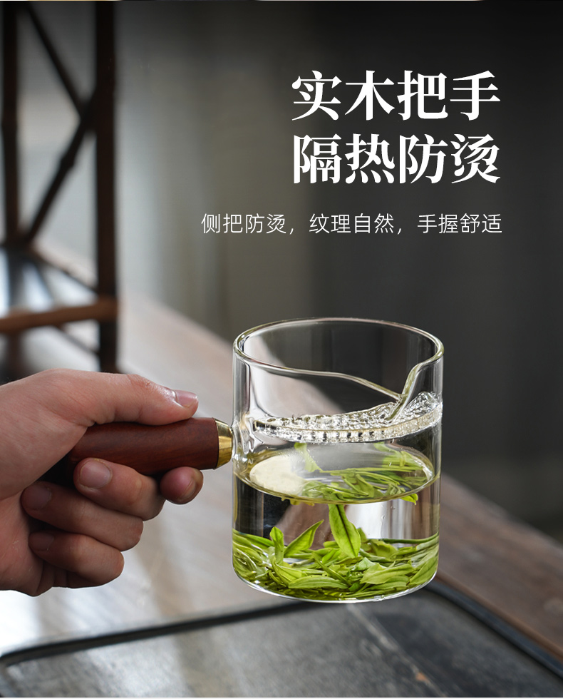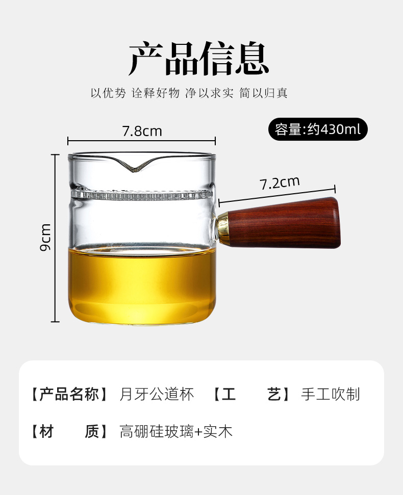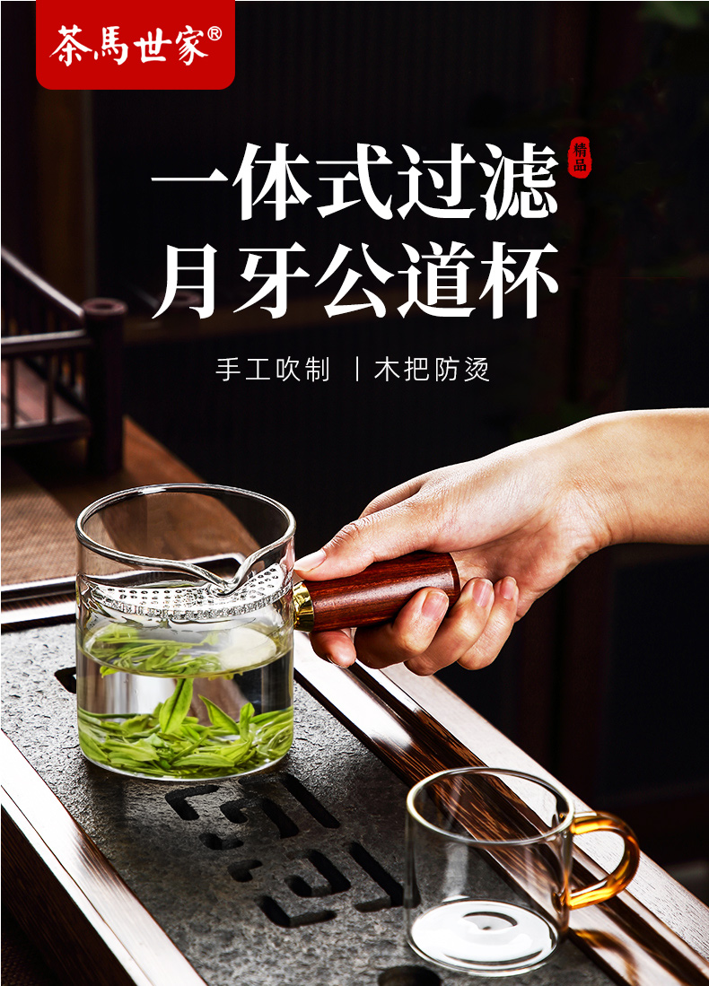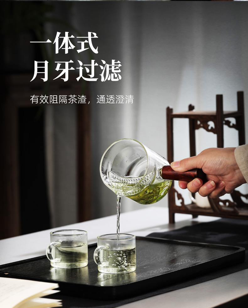 月牙过滤公道杯玻璃杯茶滤一体泡茶器侧把泡茶单壶 CM