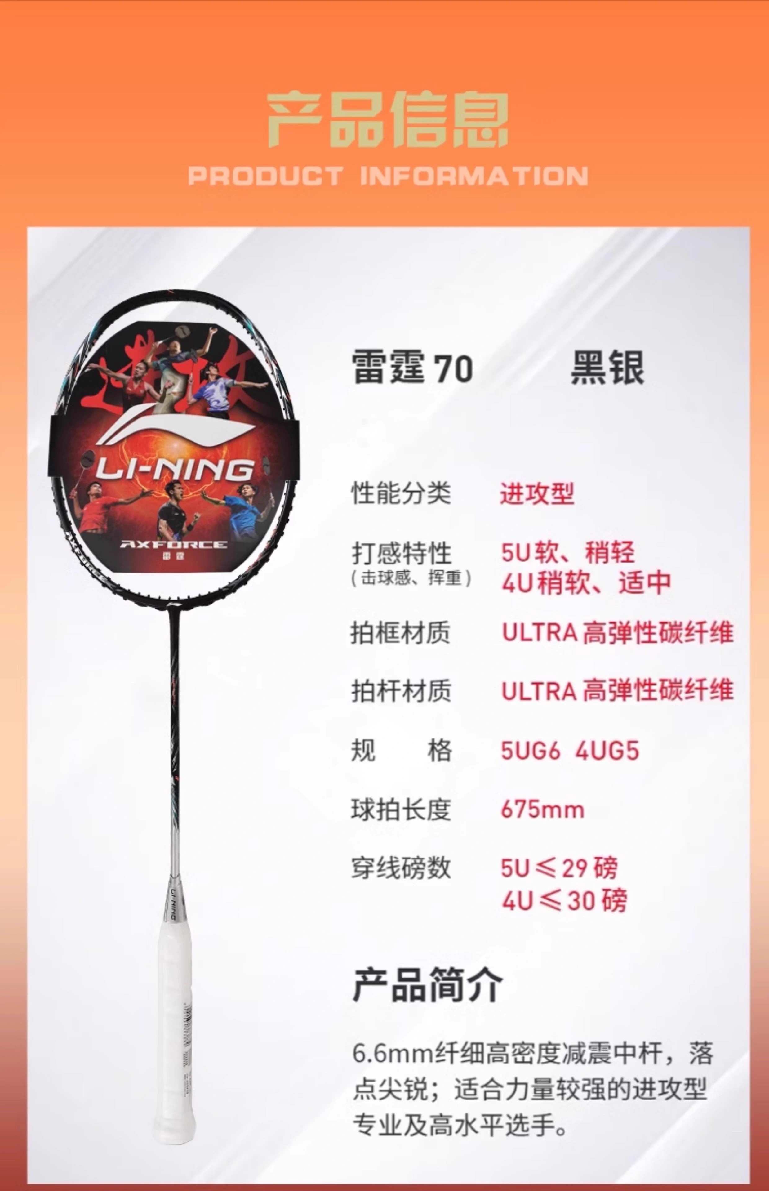 李宁 羽毛球拍 雷霆70