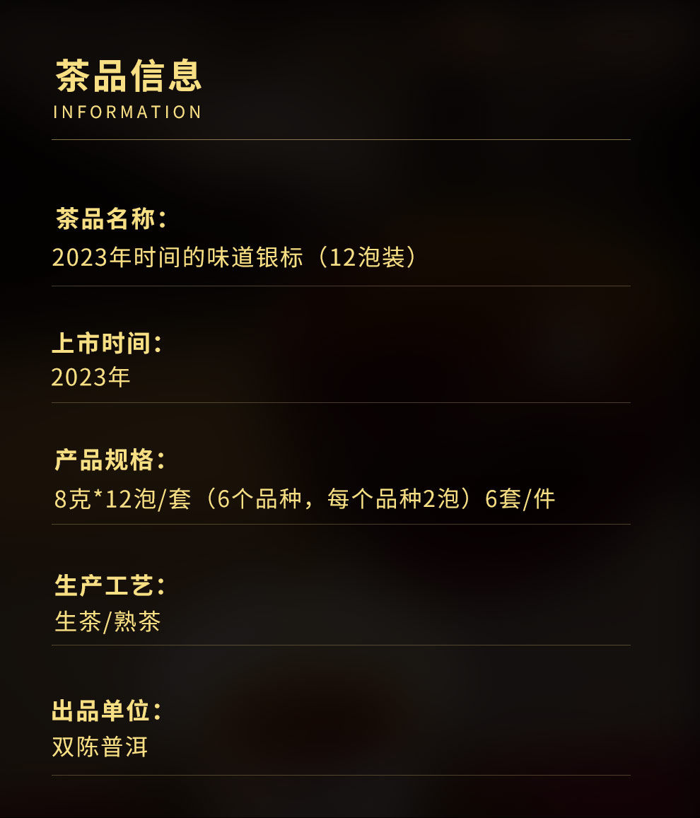 双陈2023年时间的味道12泡年份茶8克*12泡经典好茶送礼有品味