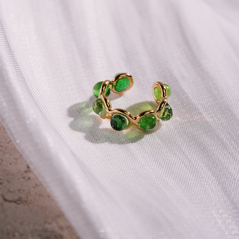 北京仓|Gripoix Paris-Classic-经典绿色渐变 琉璃 耳廓夹[法国设计师]