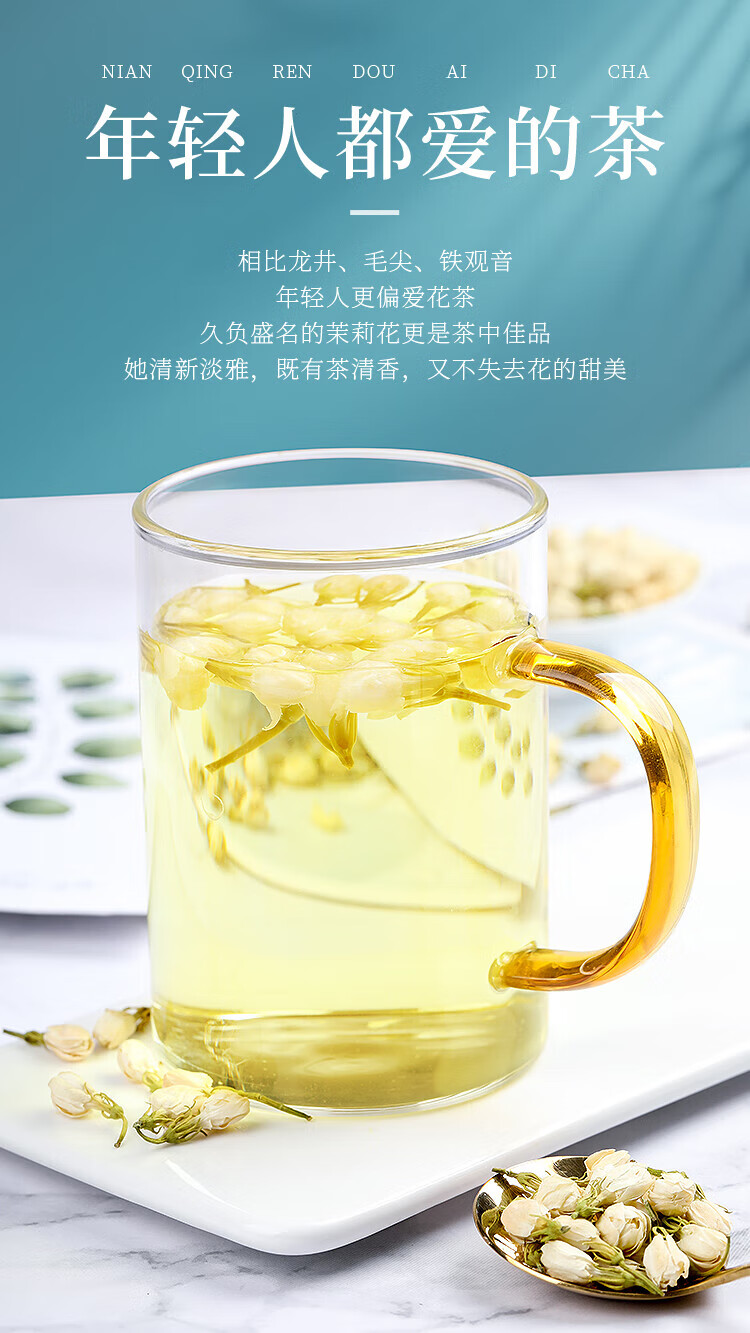 福东海 茉莉花120克 (当季新鲜头采)横县三伏晴天花苞茶叶新花干花蕾不添加香精花草茶泡水喝养生茶饮