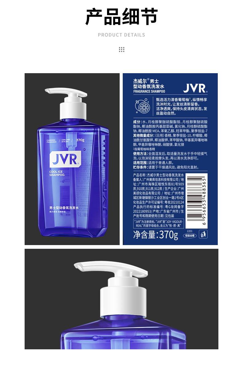 杰威尔男士型动香氛洗发水控油蓬松洗发露洗头液370g