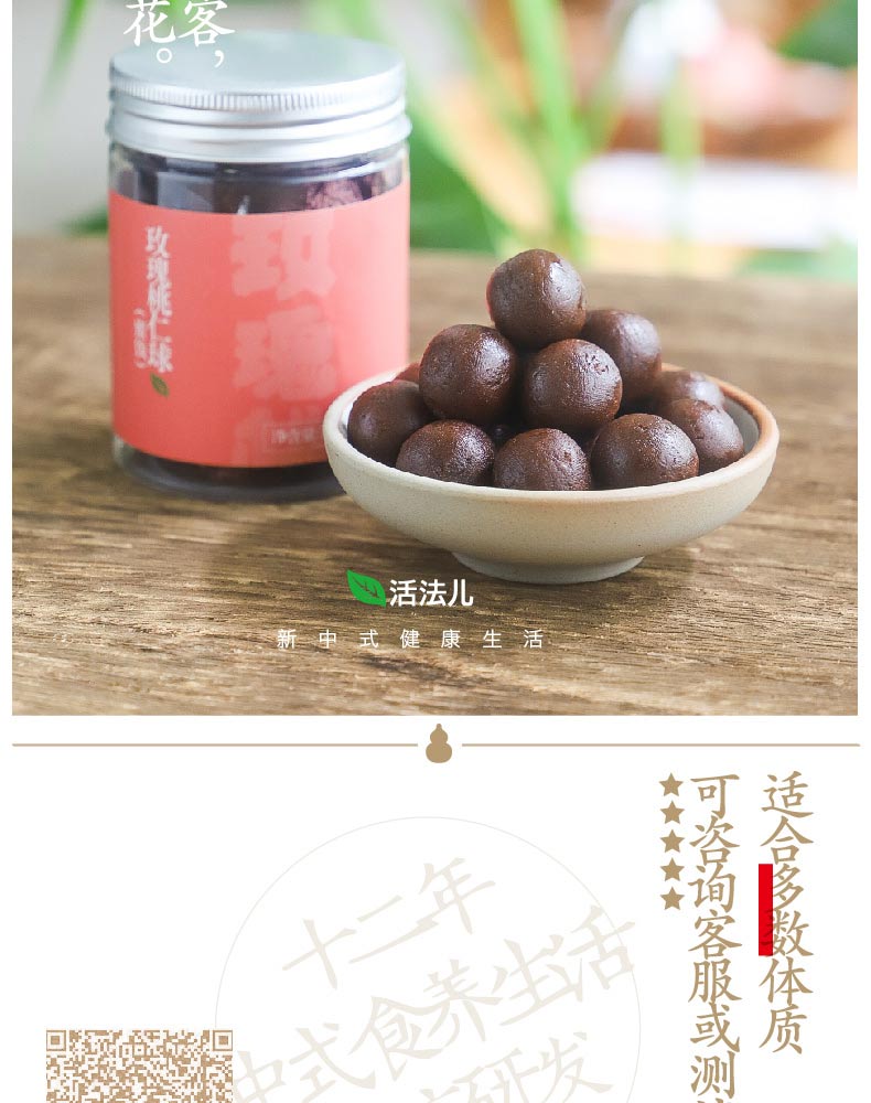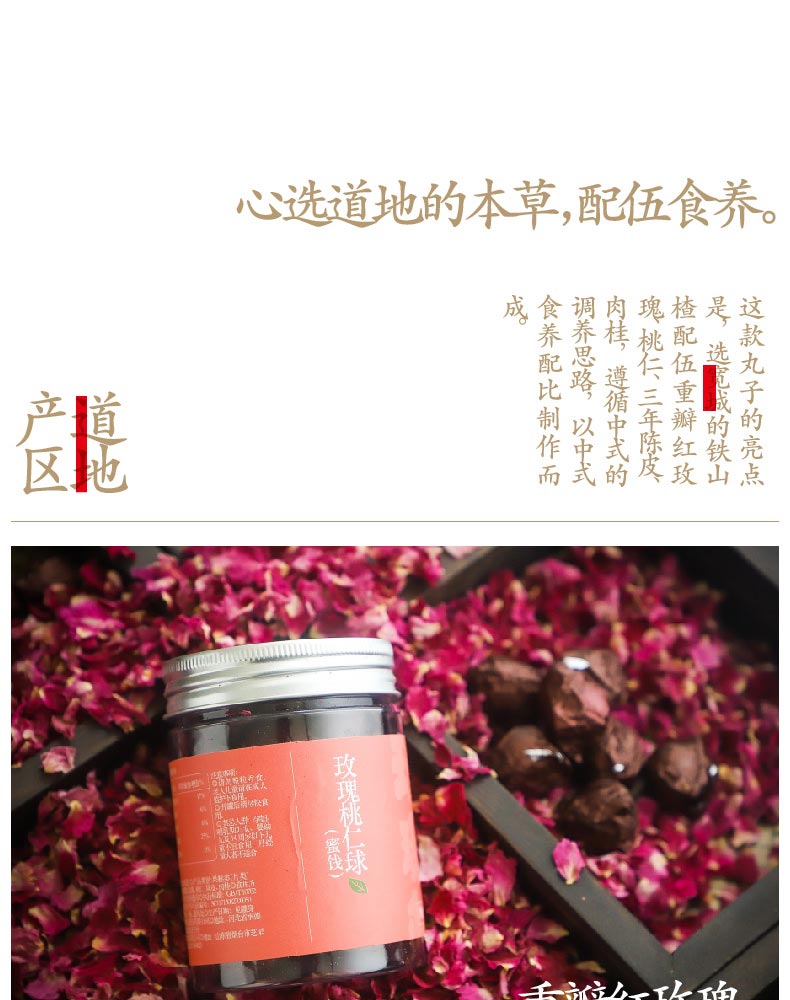 玫瑰桃仁球道地食材。山楂重瓣红玫瑰桃仁陈皮肉桂。玫瑰香