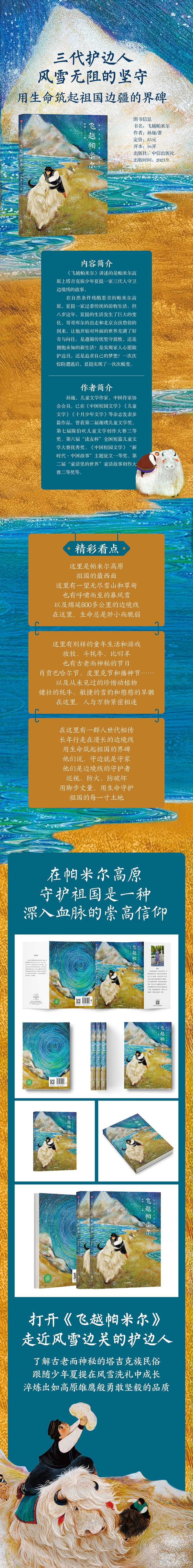《飞越帕米尔》讲述的是帕米尔高原上塔吉克族少年夏提一家三代人守卫边境线的故事。在自然条件残酷恶劣的帕米尔高原,夏提一家遵循着牧民传统的生活方式过着游牧生活。八岁这年,夏提的生活发生了巨大的变化,哥哥库尔的出走和北京女孩詹佳的到来,让他开始对外面的世界充满好奇与向往。是遵循传统坚守草原,还是拥抱未知的新生活?是实现家人心愿做护边员,还是追求自己的梦想?一次次惊险的遭遇,让男孩实现了一次次蜕变。作品将童心岁月与家国情怀相辅相成,贯穿全文,护边员无私奉献、不畏艰辛的爱国精神震撼人心,是给孩子的一堂不可多得的淳朴悠远的生命教育课。