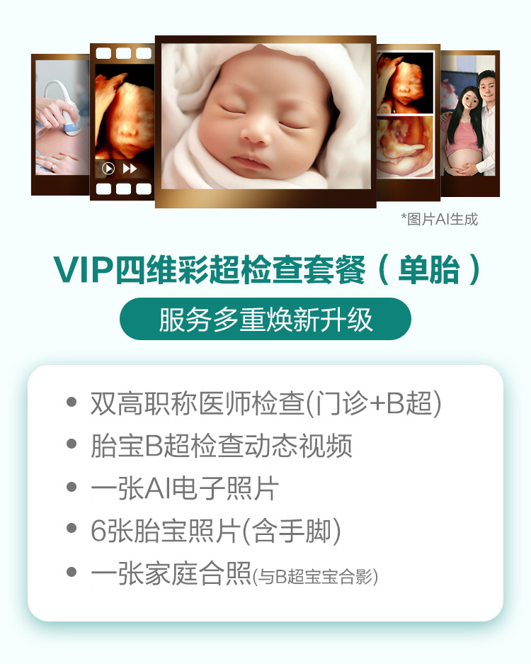【新品速购】VIP四维彩超检查套餐(单胎 22-26周)含挂号费仅限全自费,多重升级 至少提前一天预约-远东罗湖院区-4楼产科