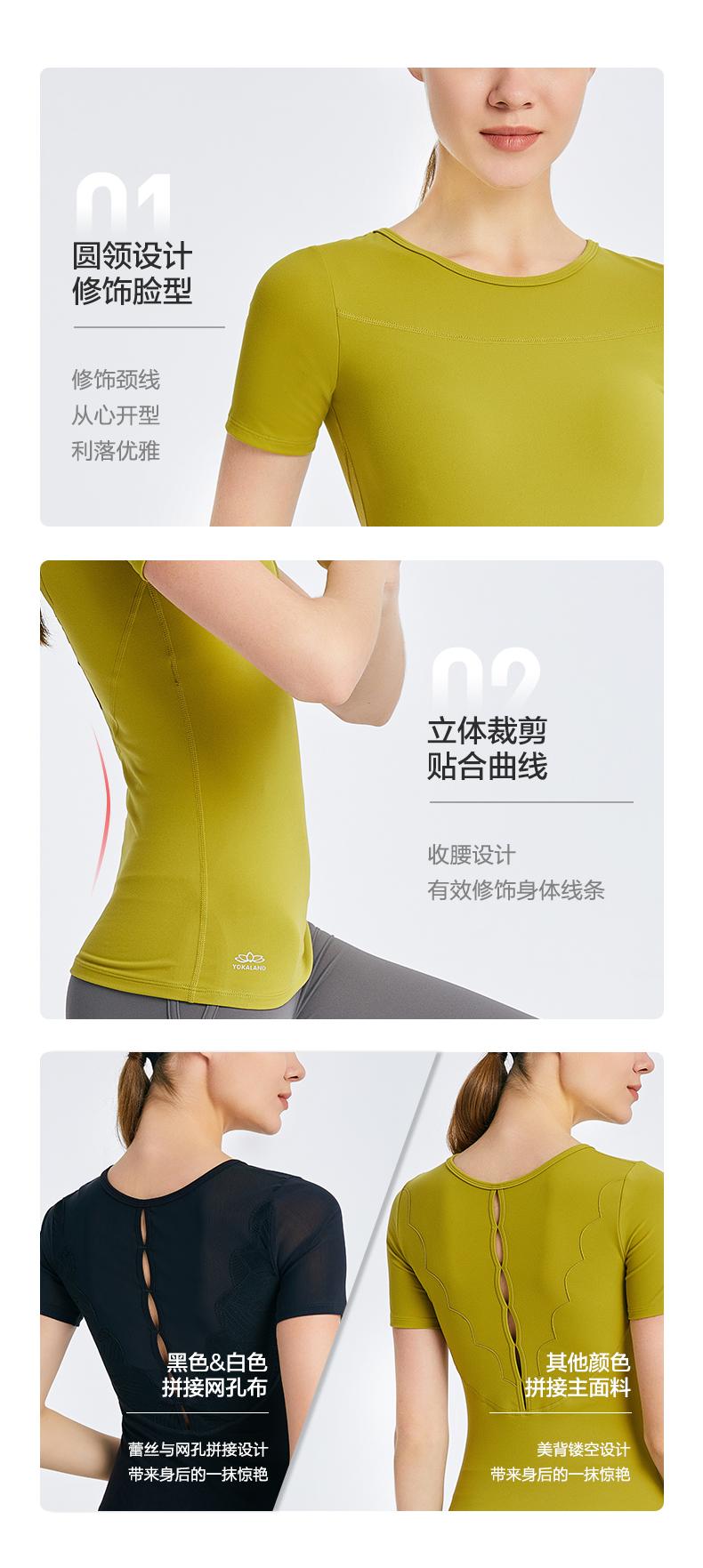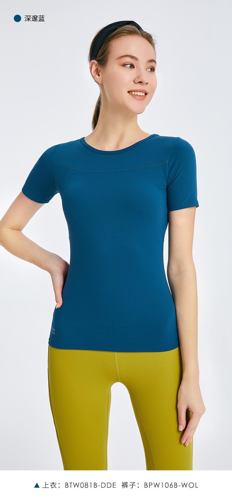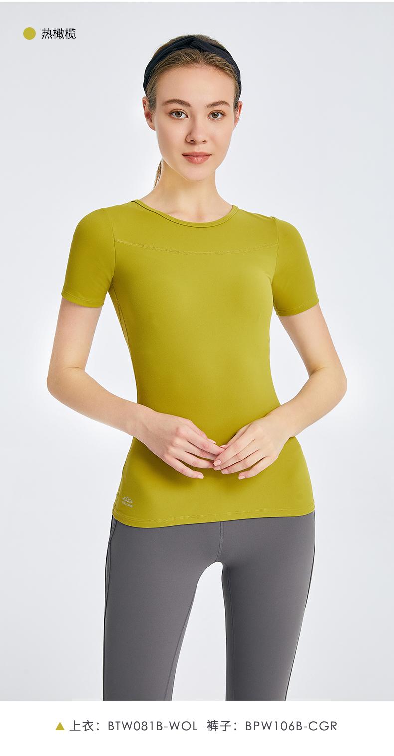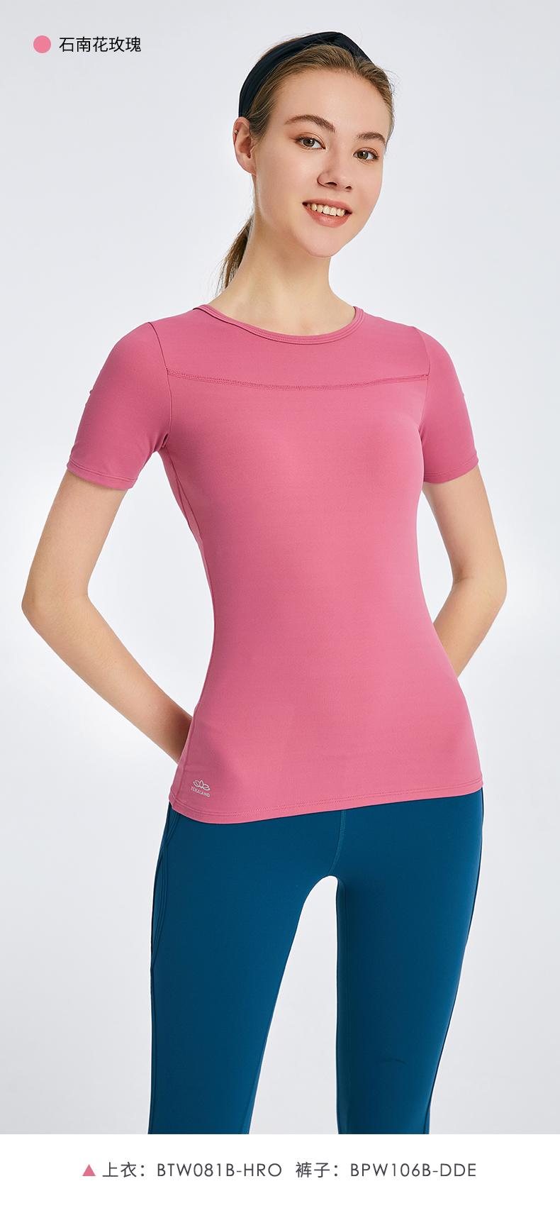 优卡莲春夏BTW081B轻羽优雅显瘦圆领拼纱休闲瑜伽短袖T恤女