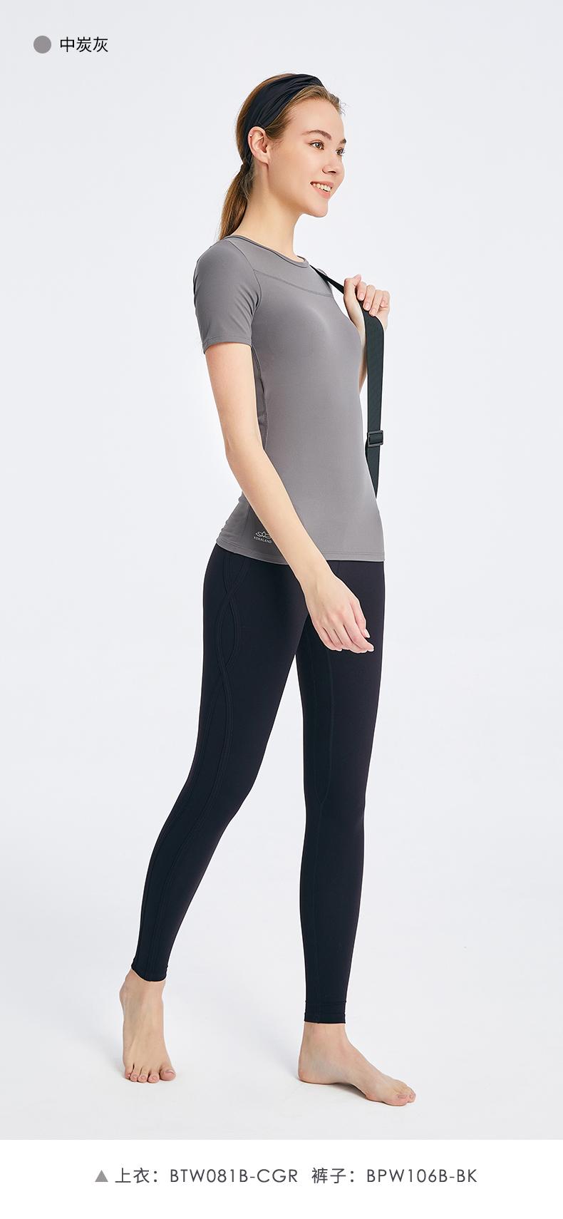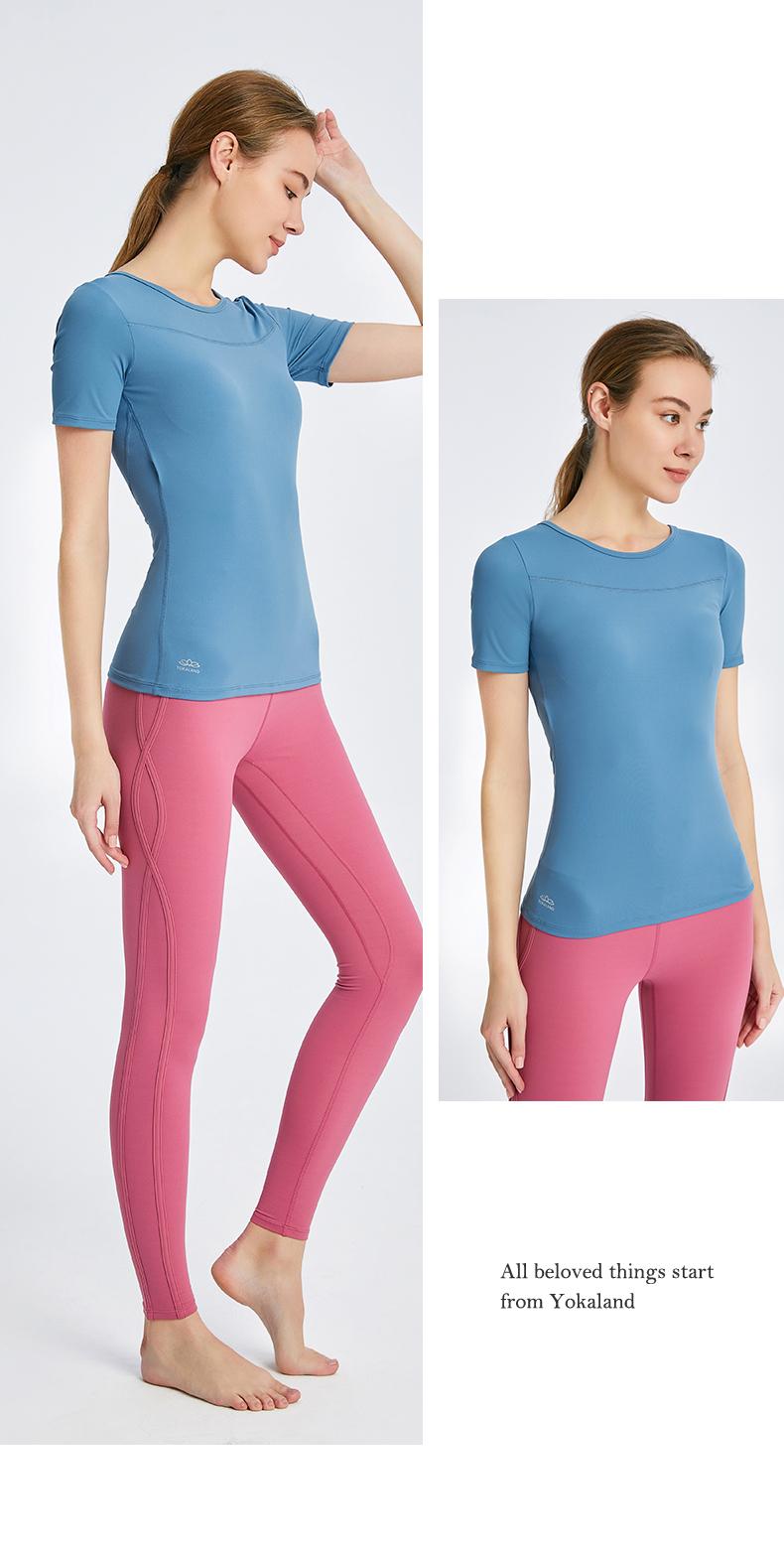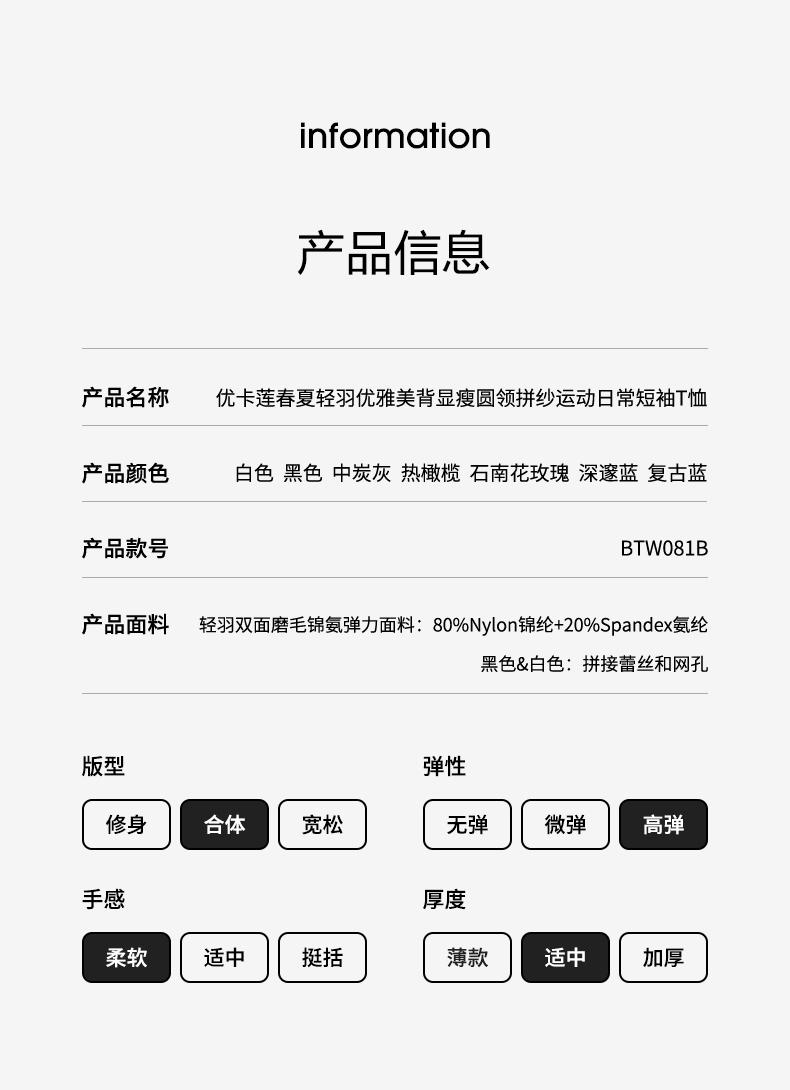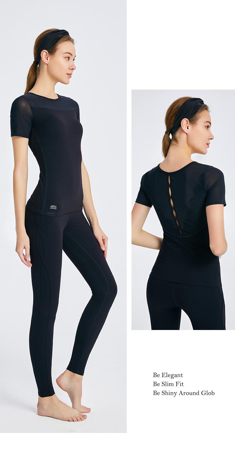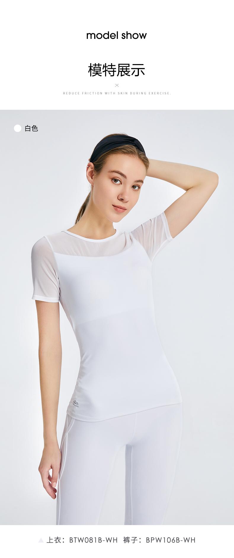 优卡莲春夏BTW081B轻羽优雅显瘦圆领拼纱休闲瑜伽短袖T恤女