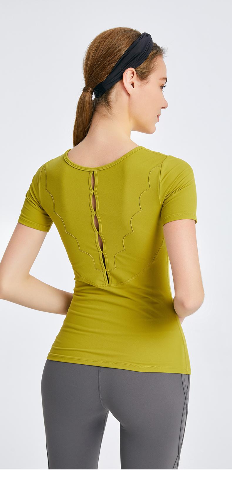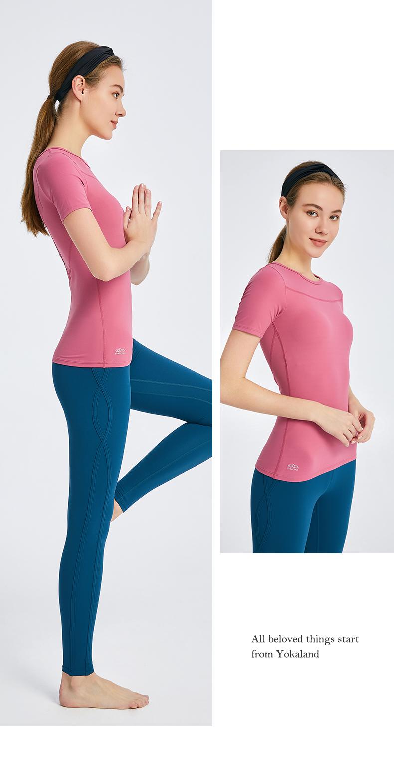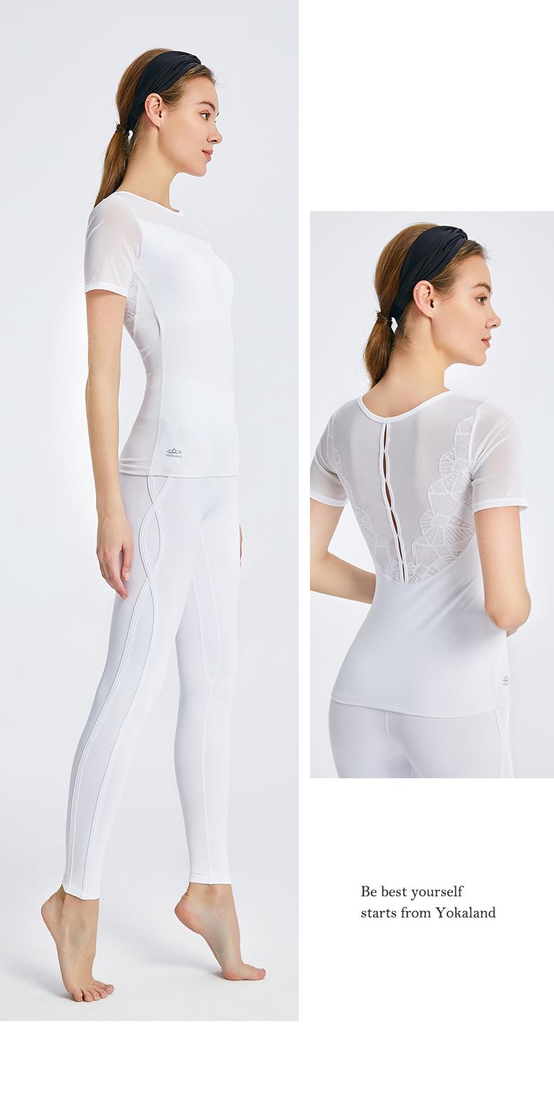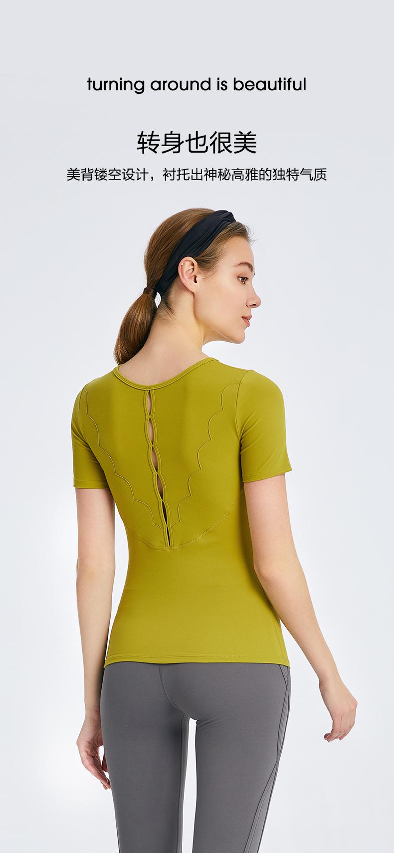优卡莲春夏BTW081B轻羽优雅显瘦圆领拼纱休闲瑜伽短袖T恤女