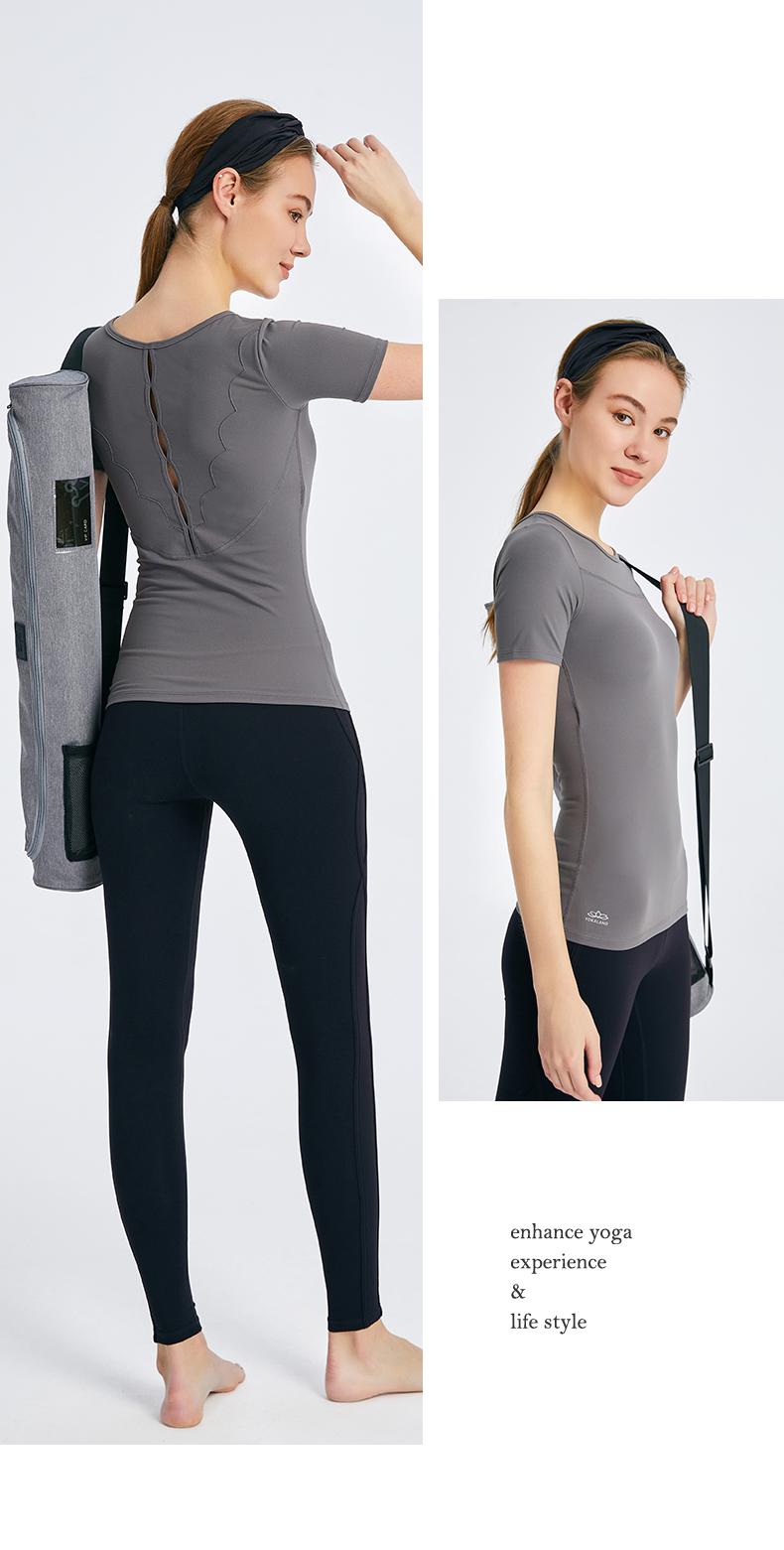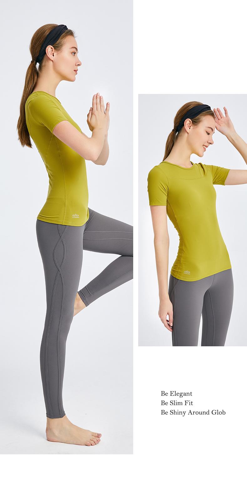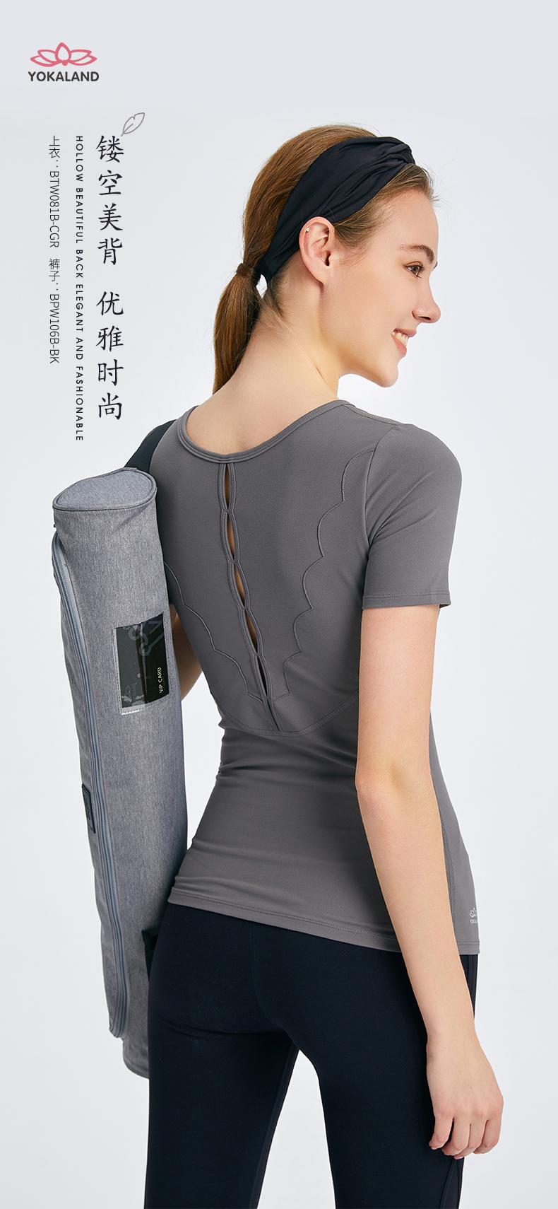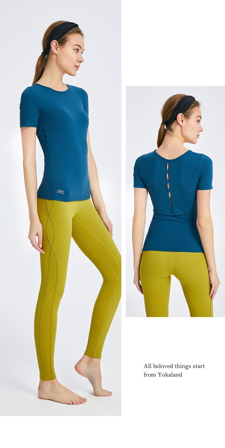 优卡莲春夏BTW081B轻羽优雅显瘦圆领拼纱休闲瑜伽短袖T恤女