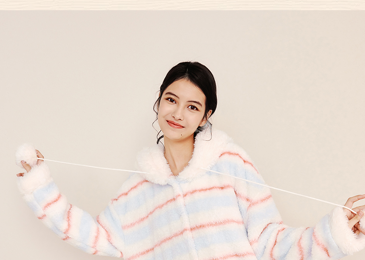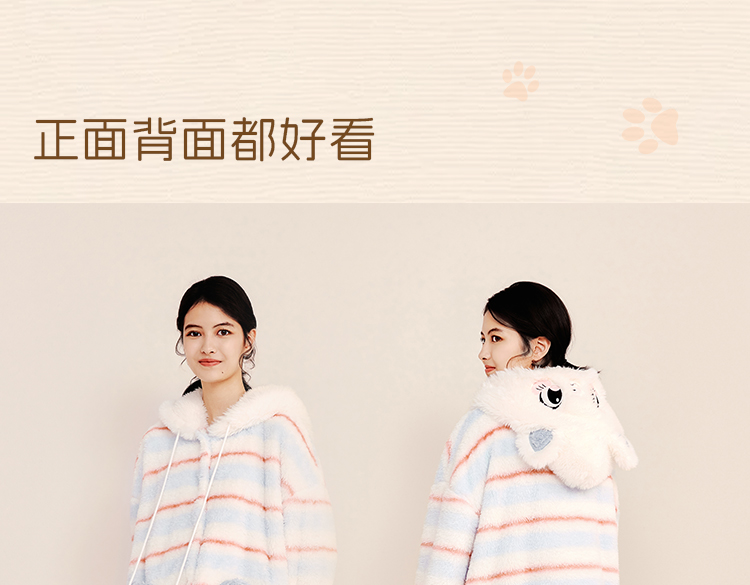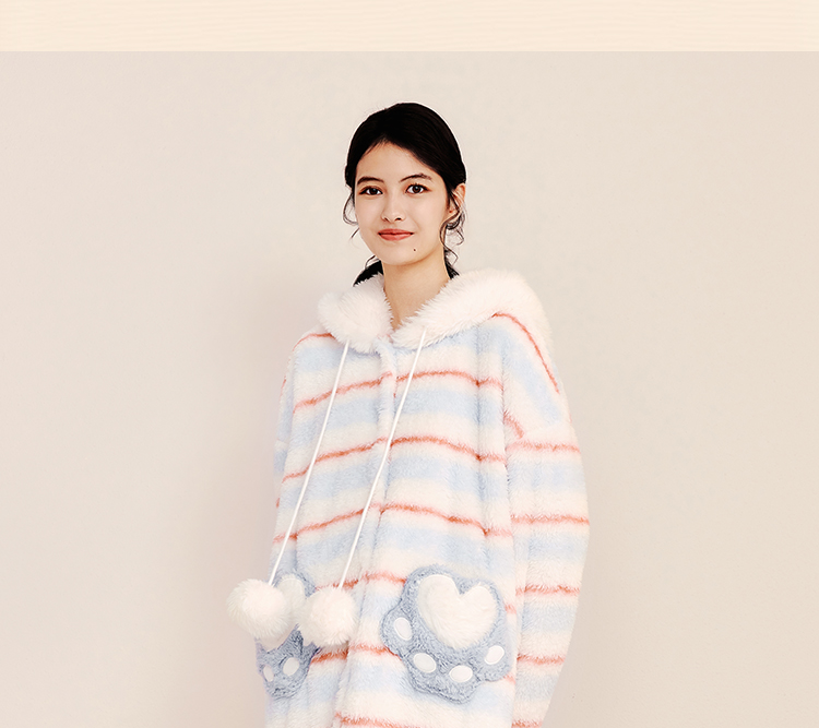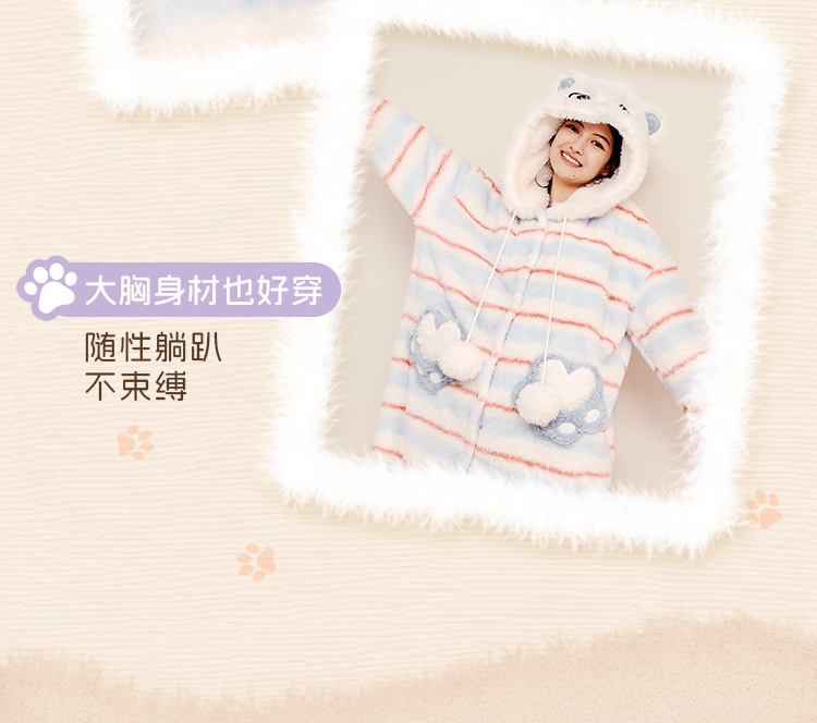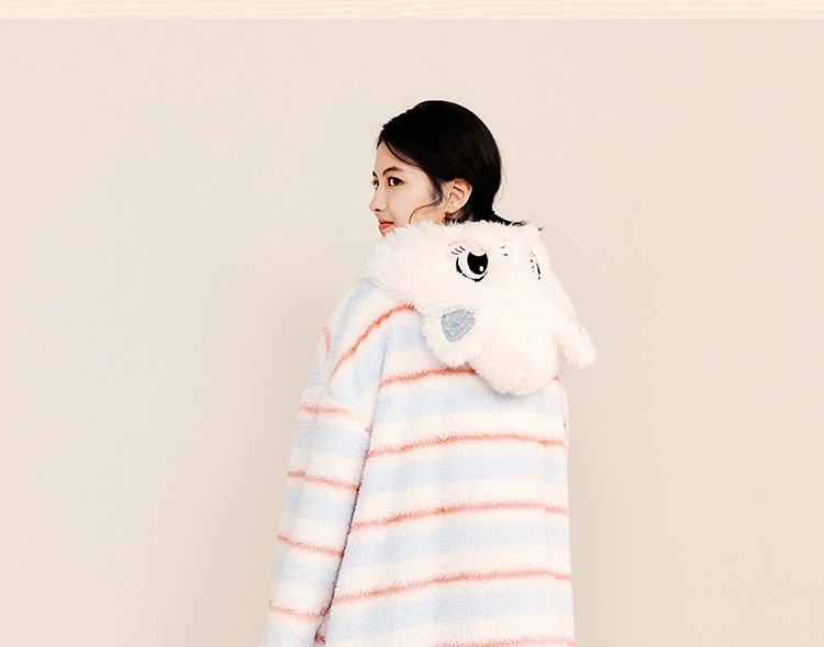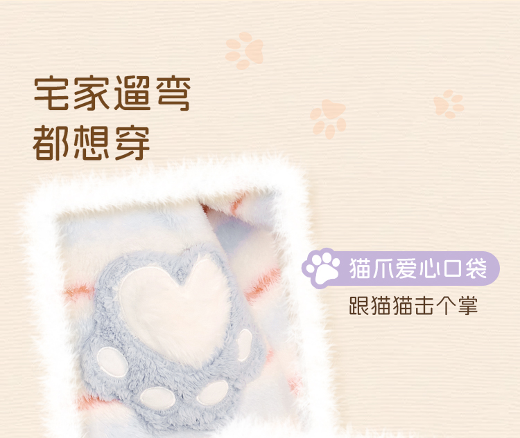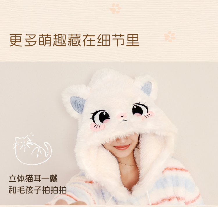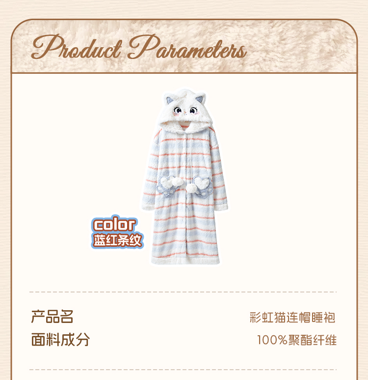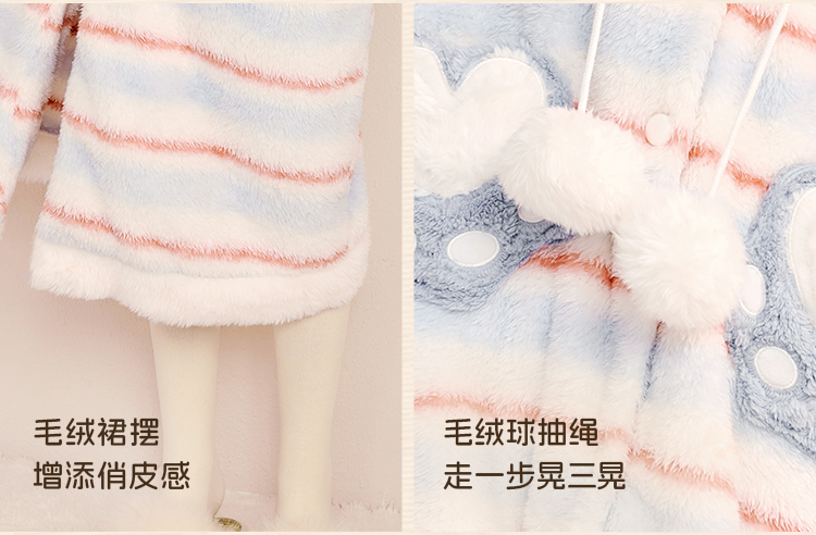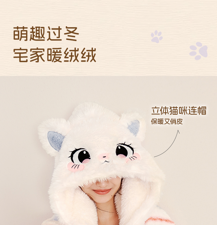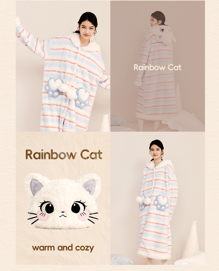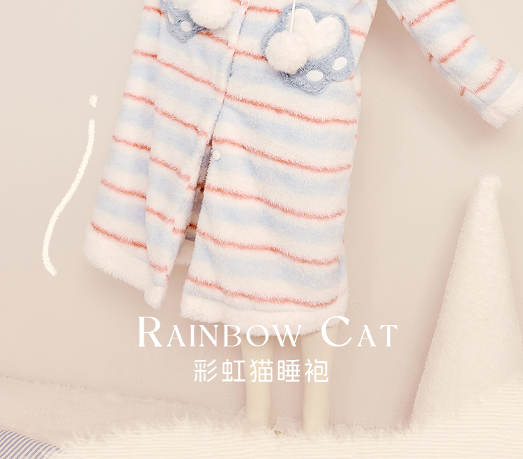 【门店】奶糖派睡袍冬季雪妃绒新款毛绒女保暖家居服彩虹猫开襟斗篷睡袍