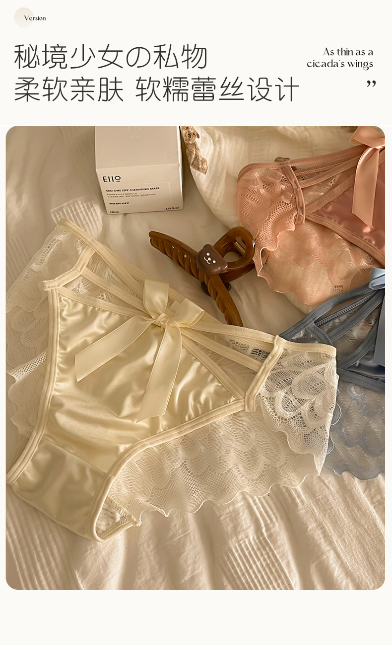 【5条更值❗️巨舒适的‘裸感’内裤】纯欲风性感镂空蕾丝,穿着0束缚,防夹臀身材包容度高,交叉绑带中腰纯棉女士三角裤QQ